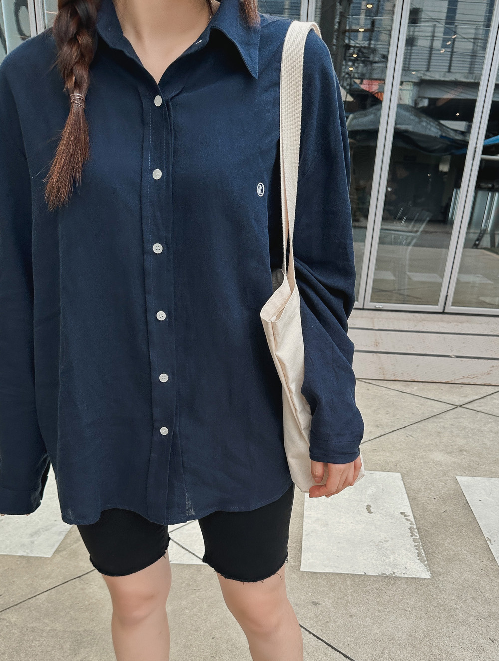#내꺼할래 자수 오버핏셔츠