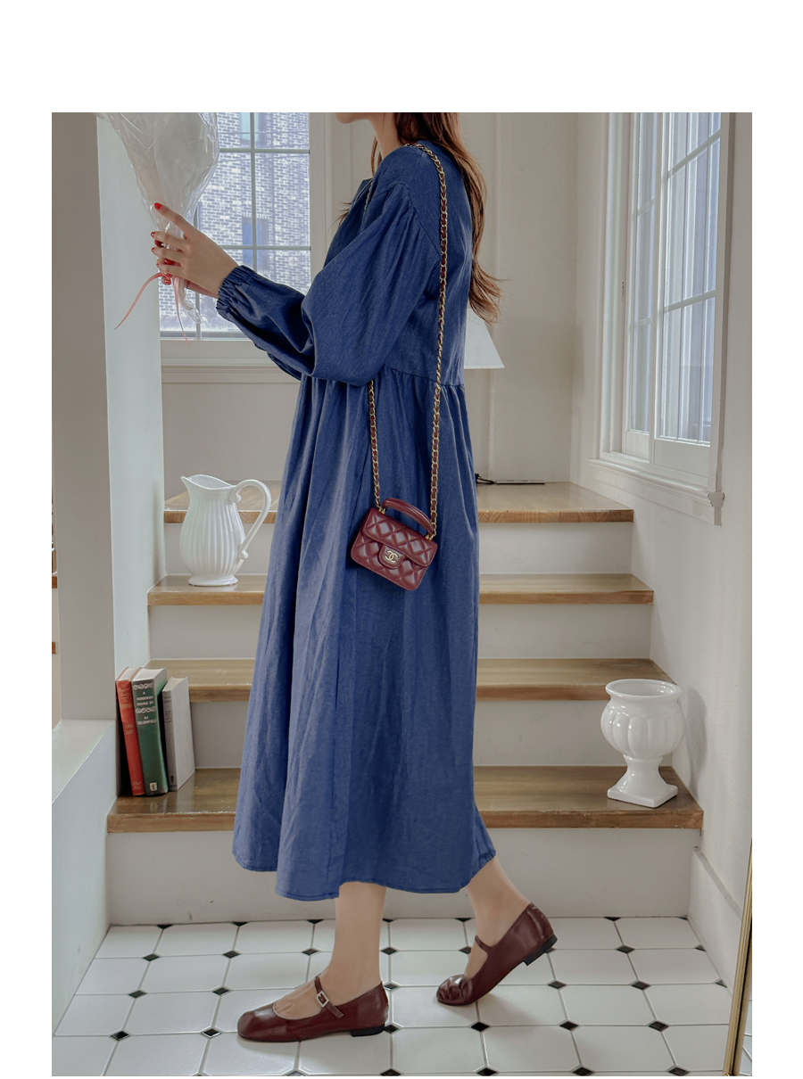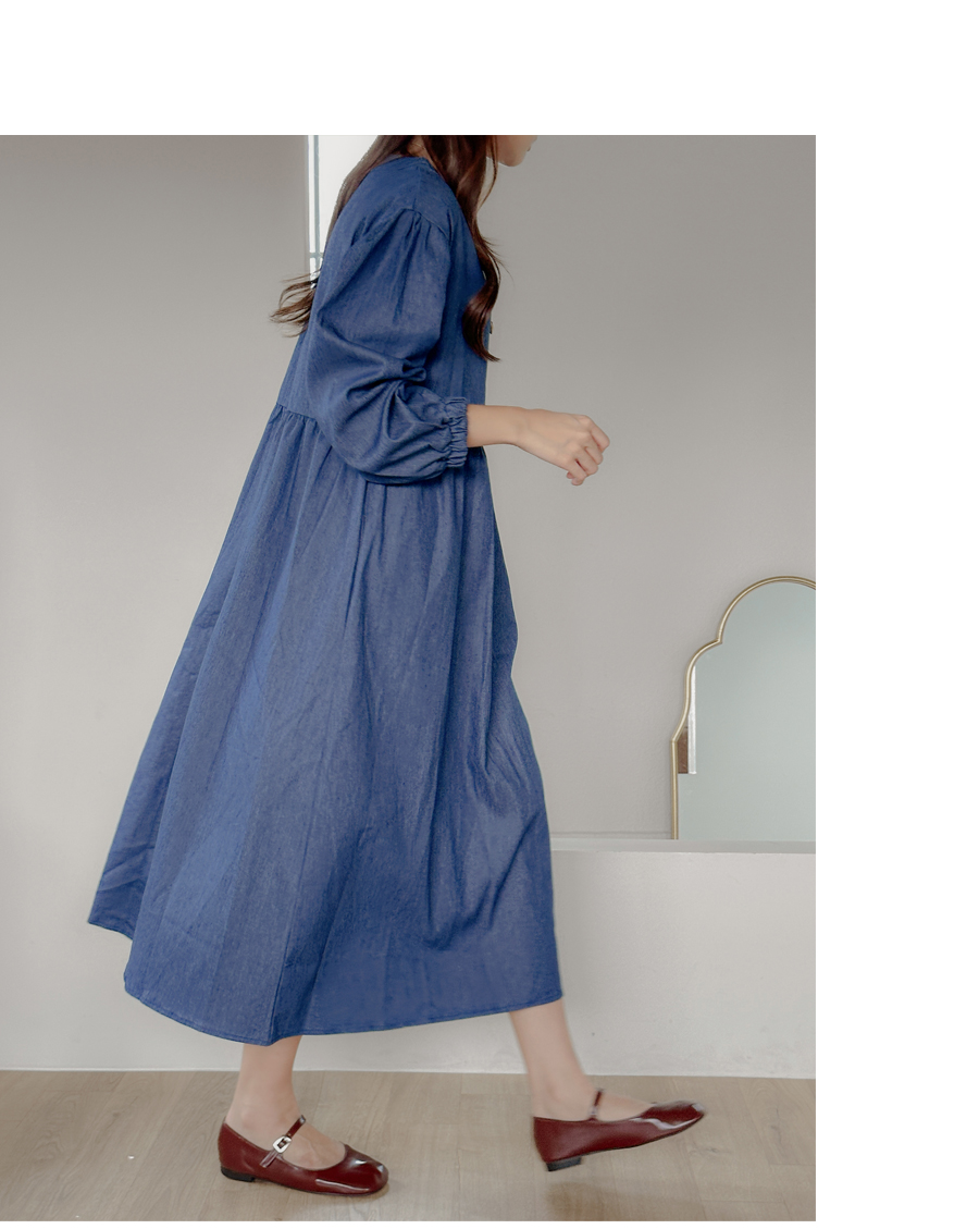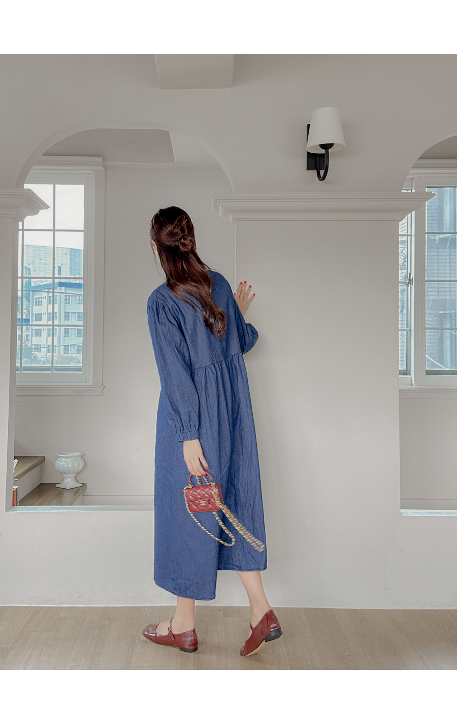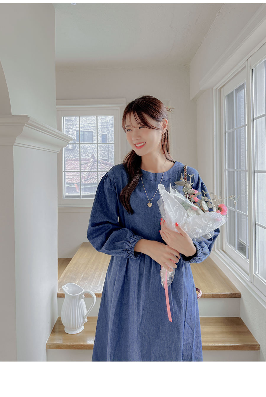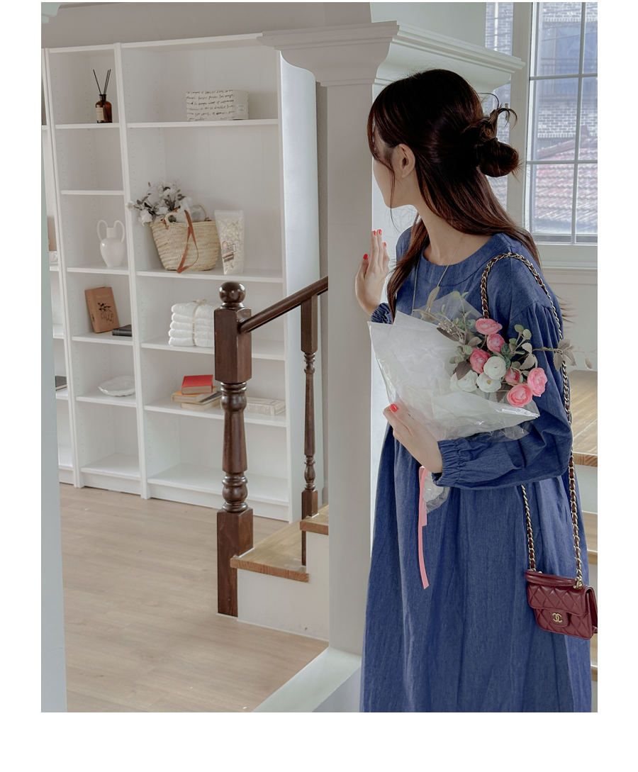 사랑스럽게 기분내기 딱! 좋은 데님 원피스에요.