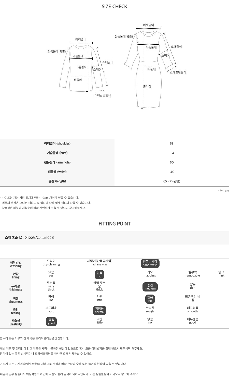 개인 체형에 따라 핏이나 기장이 달라질 수 있으니,