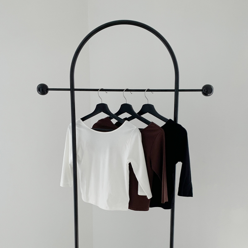 깊게 파인 라운드 넥 라인으로 쇄골과 넥 라인이 드러나