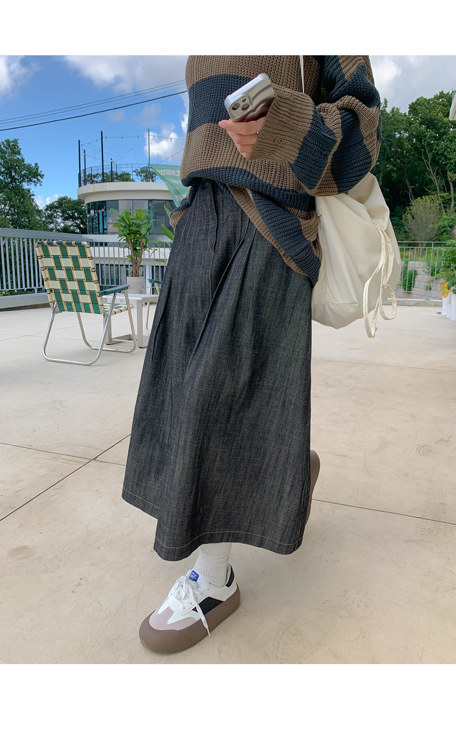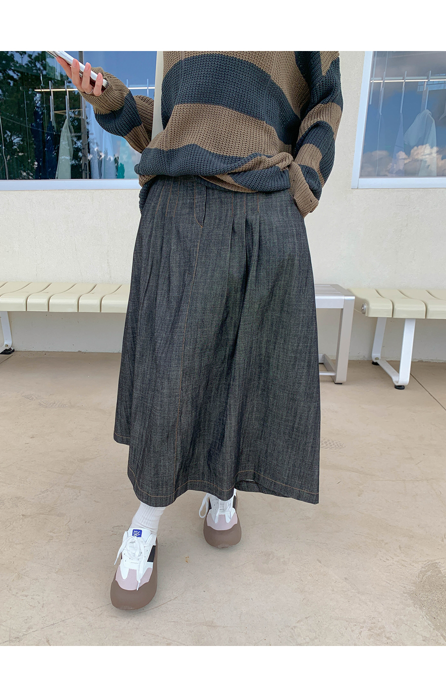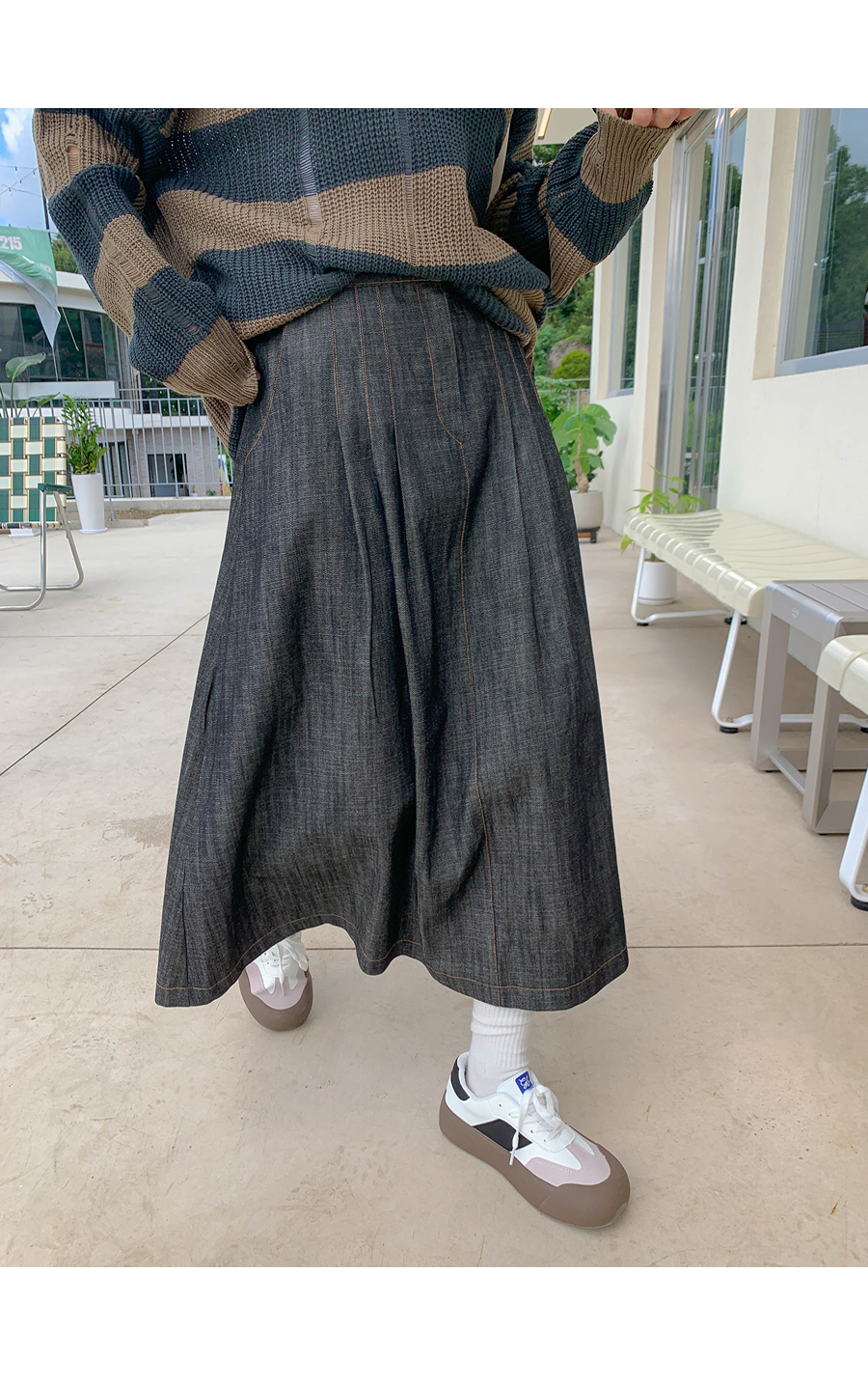 Maze banding A-line long skirt