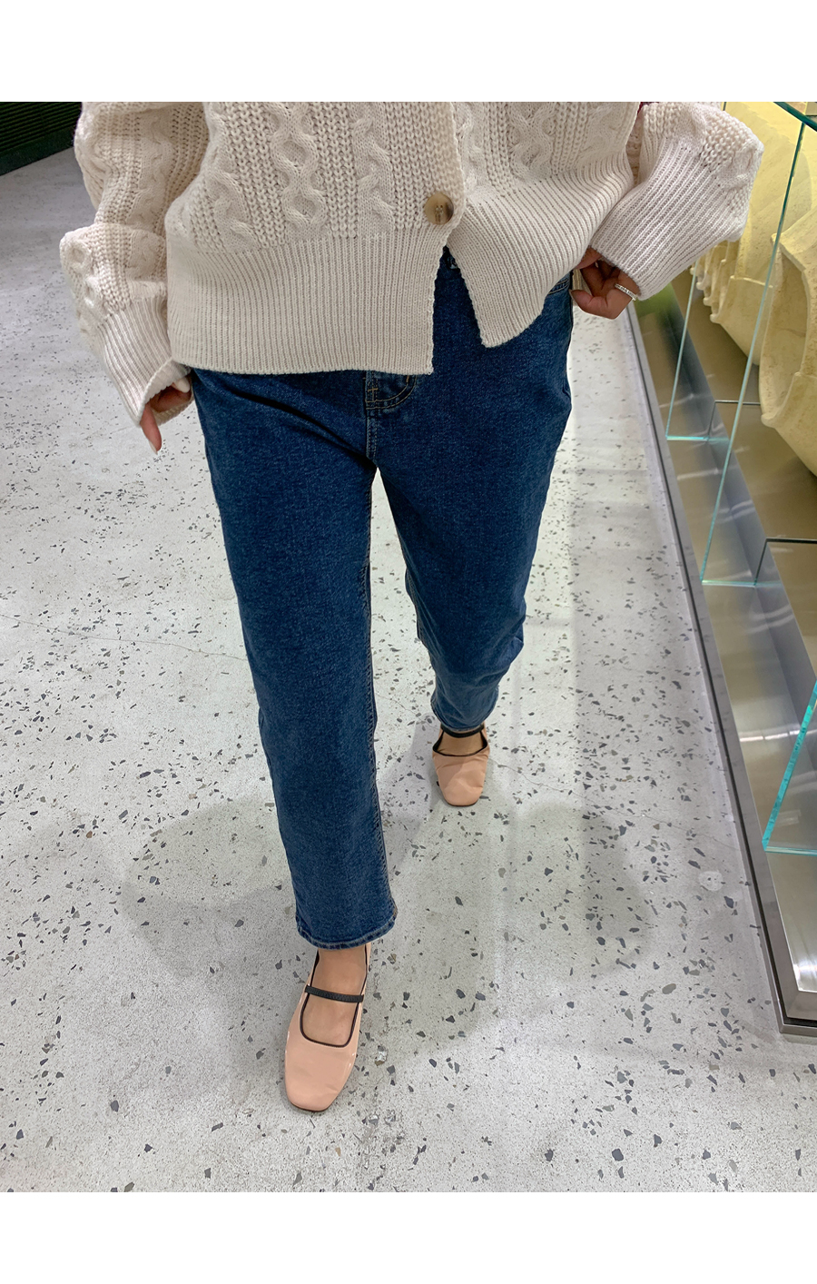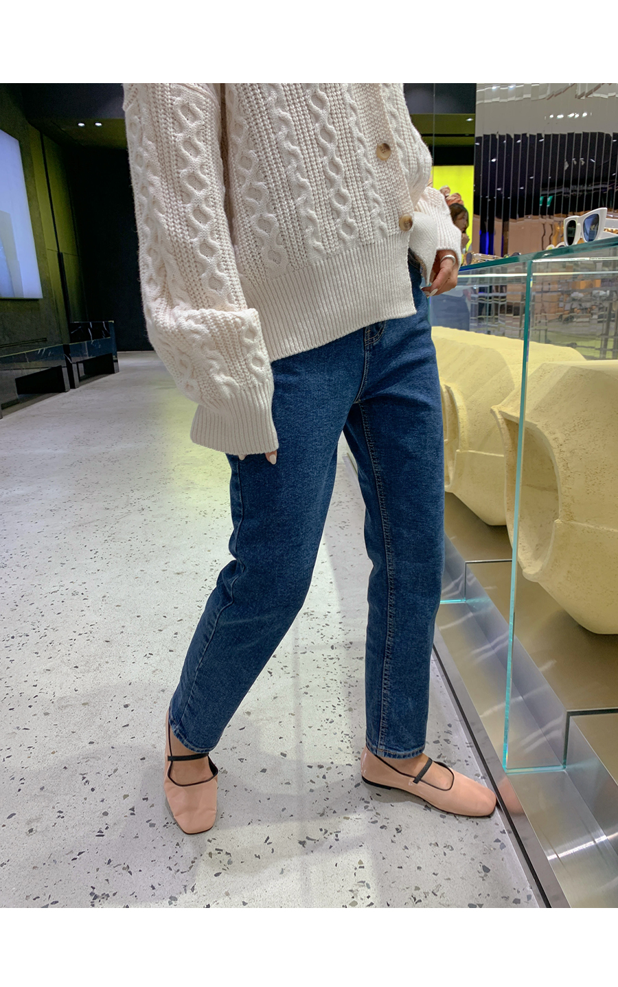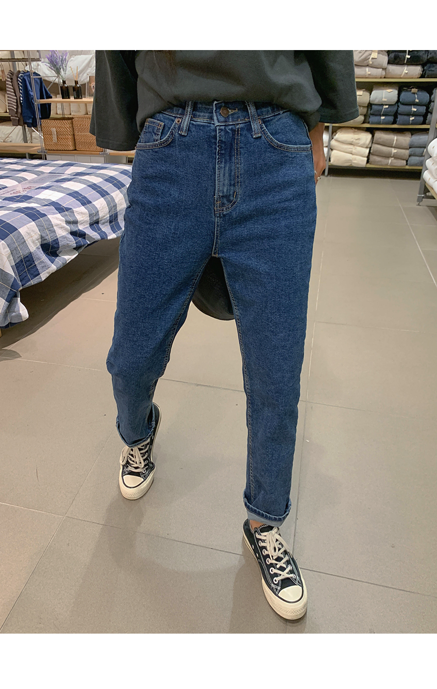 Lead banding semi-boy fit denim pants