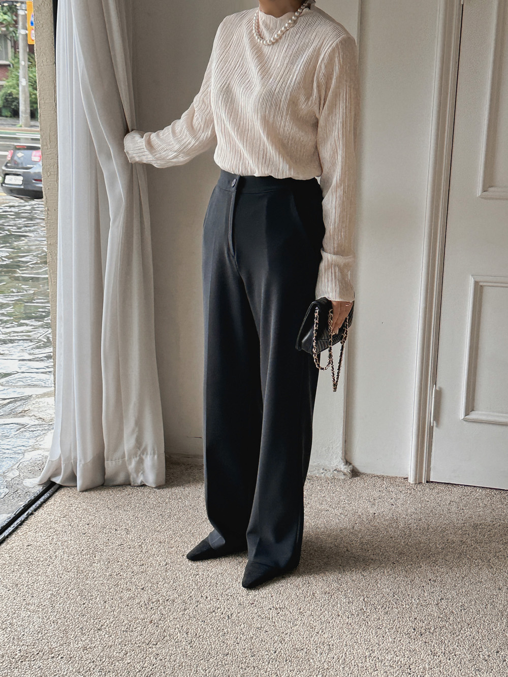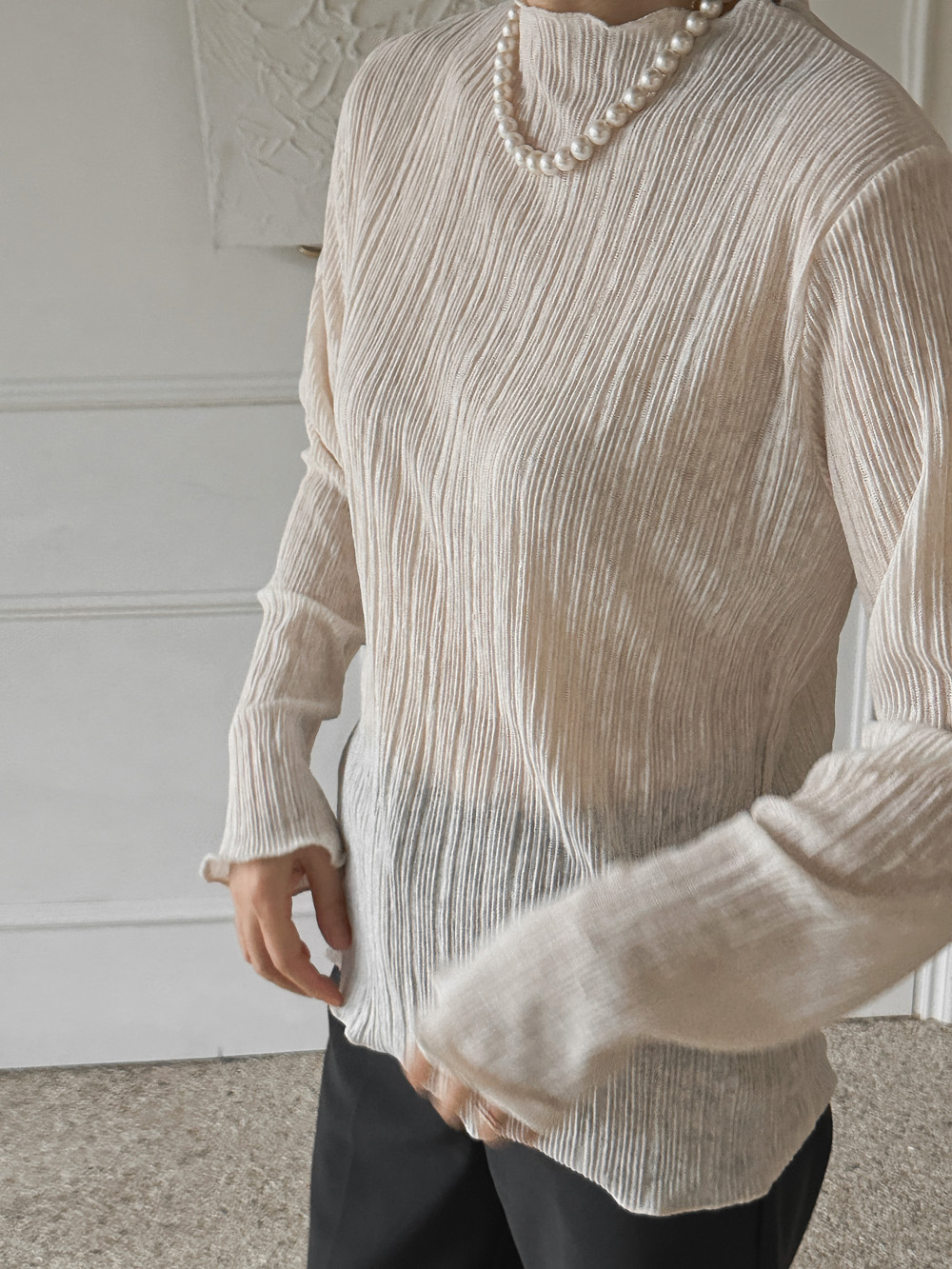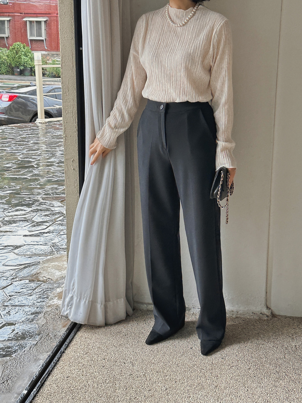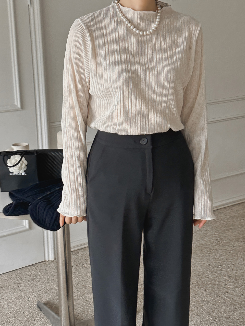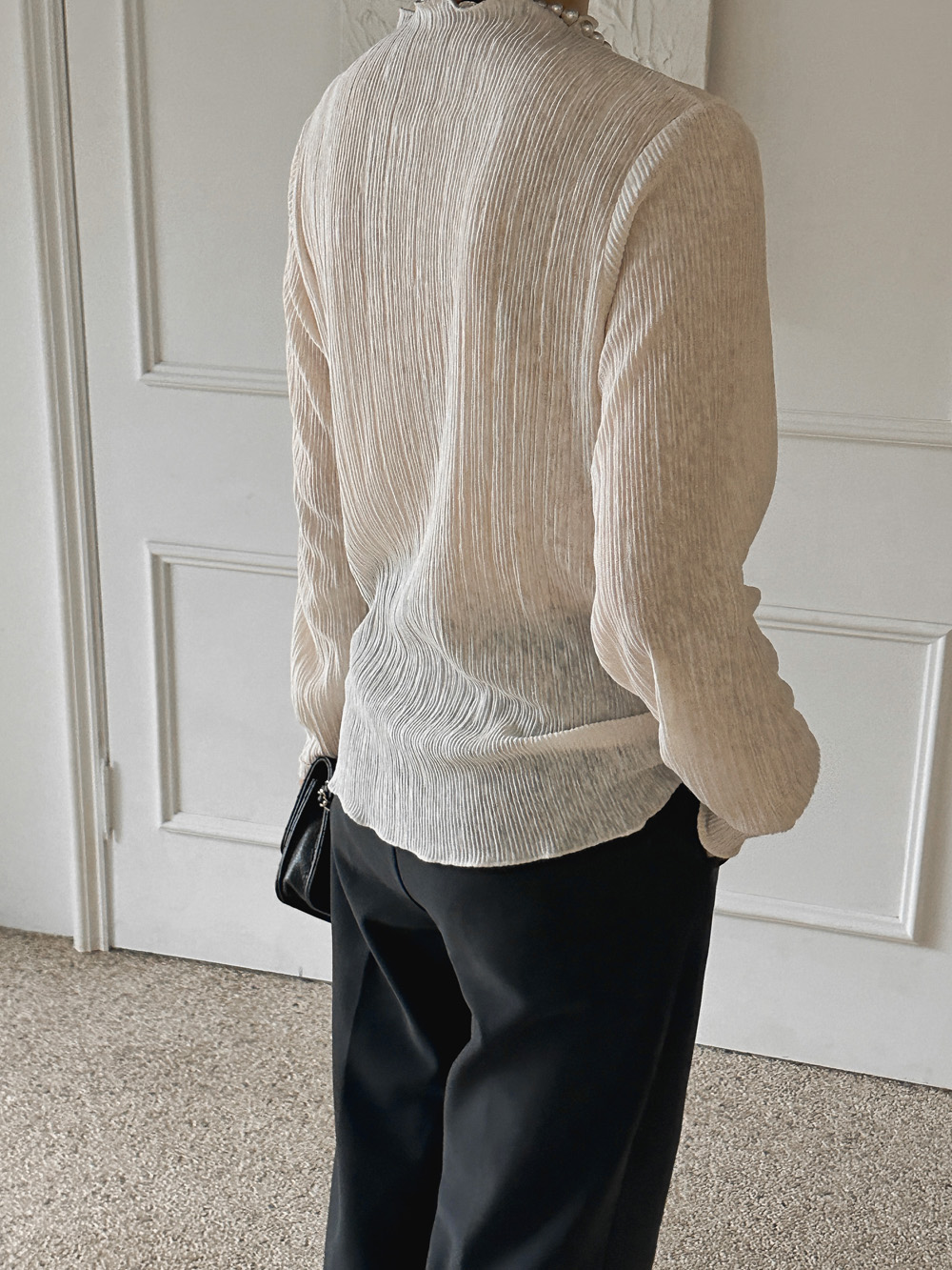 잔잔한 세로 주름의 플리츠 디테일로