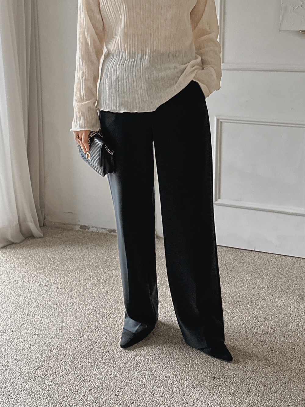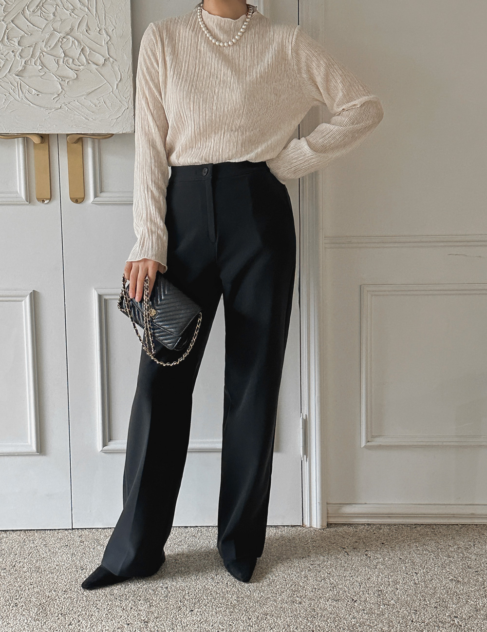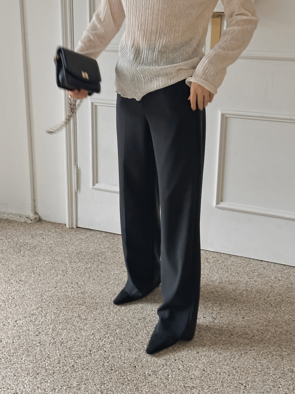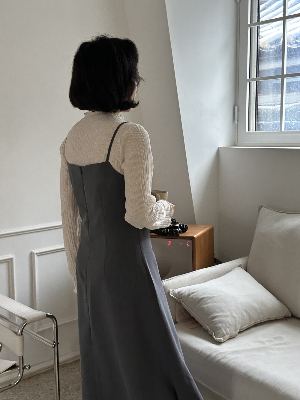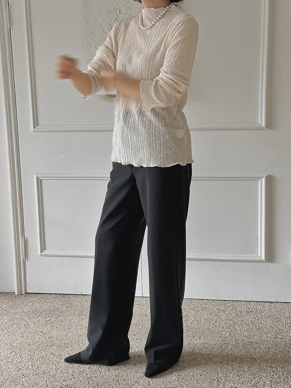 잔잔한 세로 주름의 플리츠 디테일로