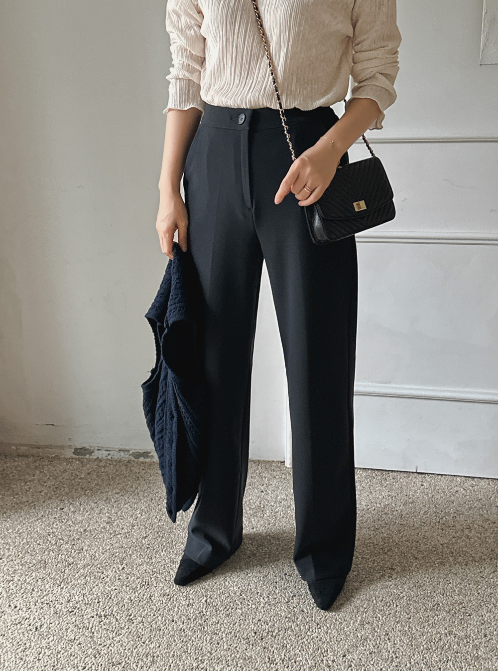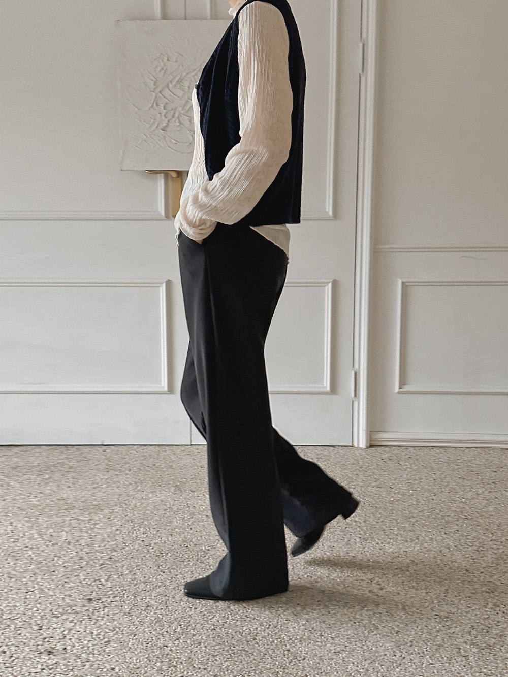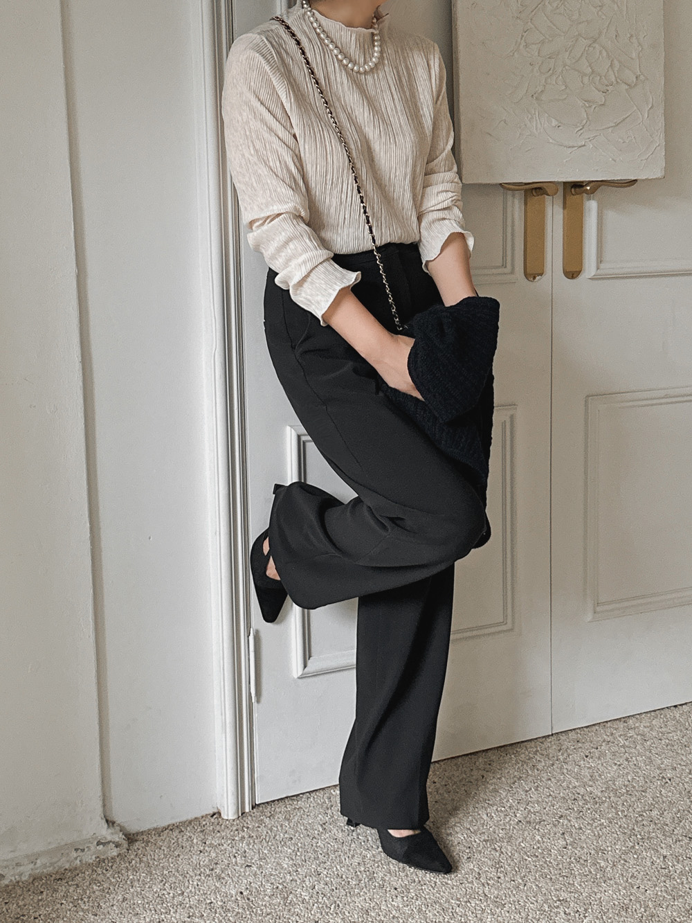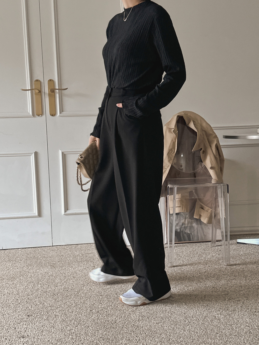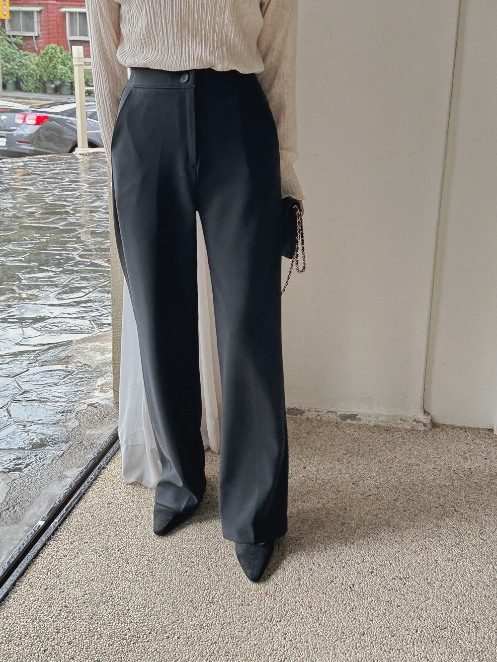 잔잔한 세로 주름의 플리츠 디테일로