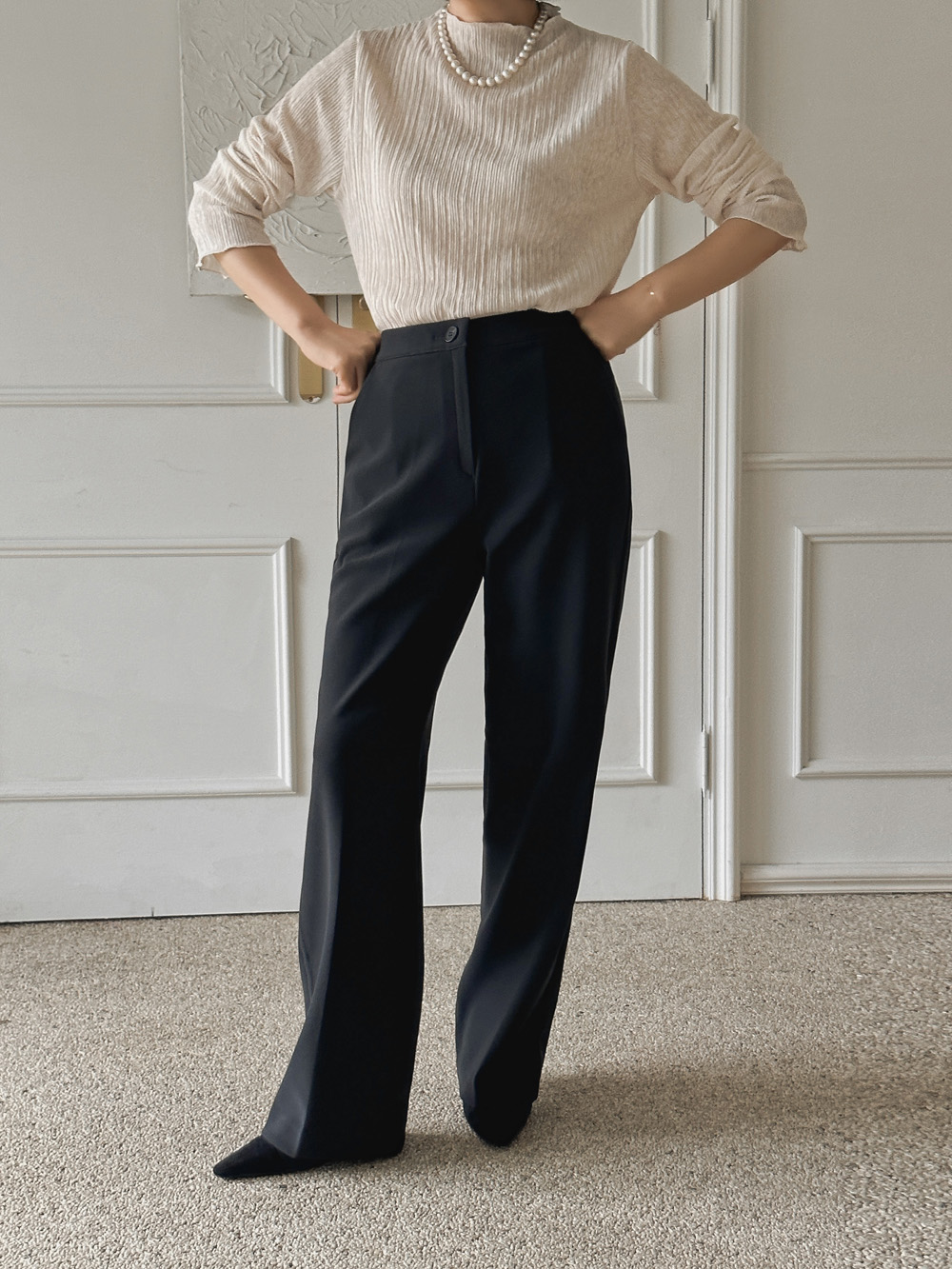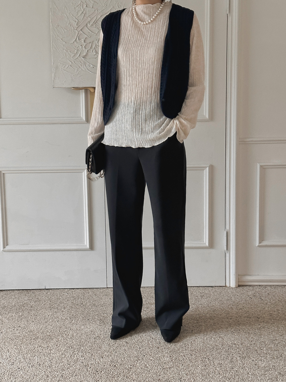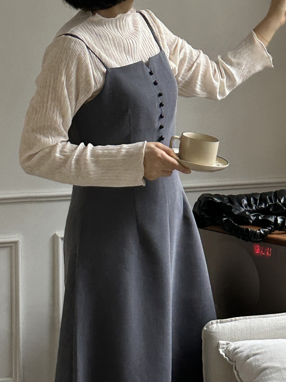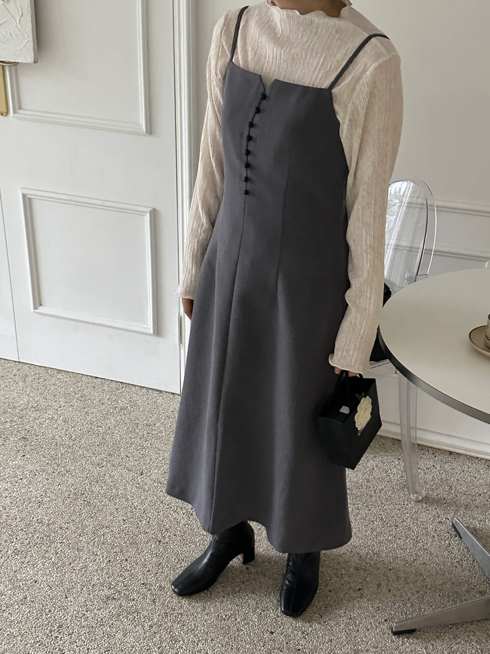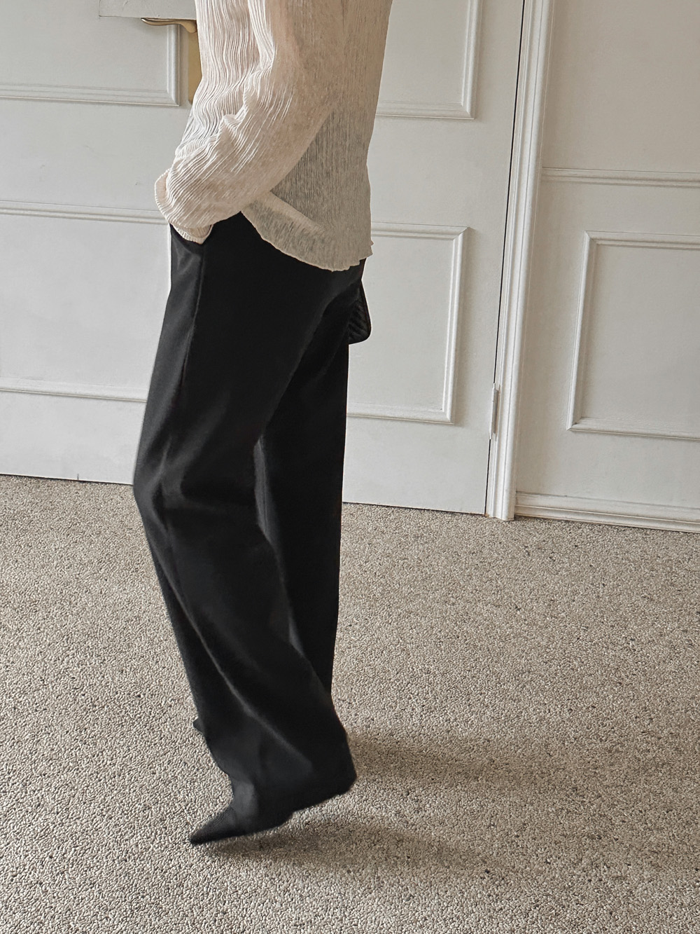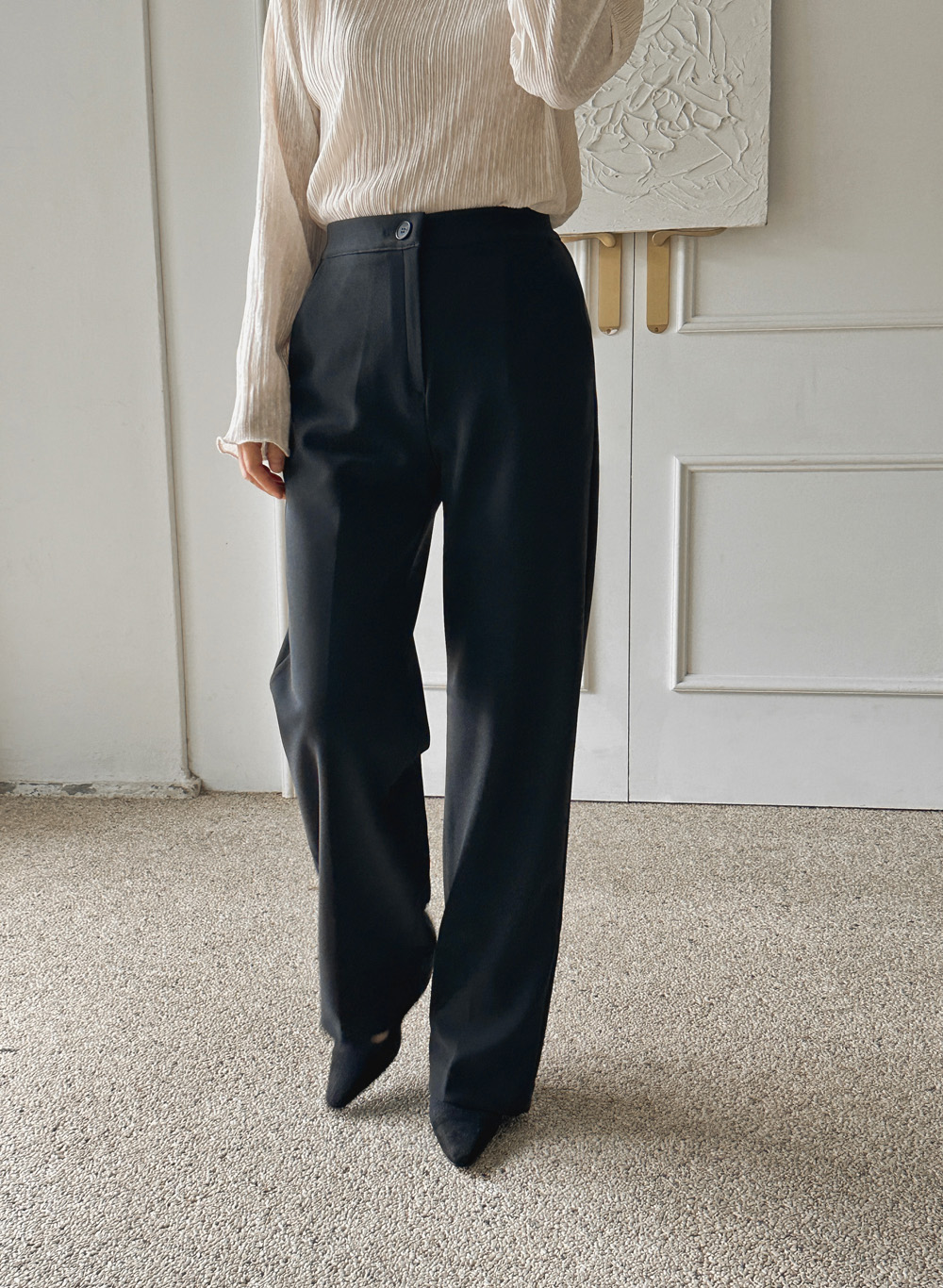 잔잔한 세로 주름의 플리츠 디테일로