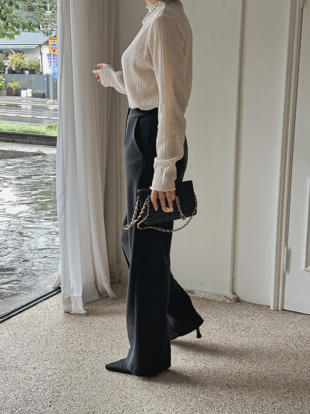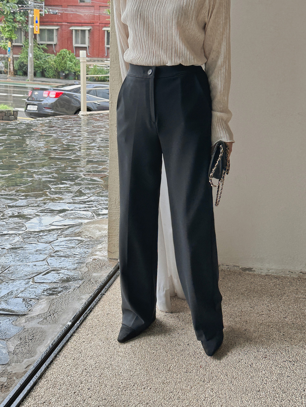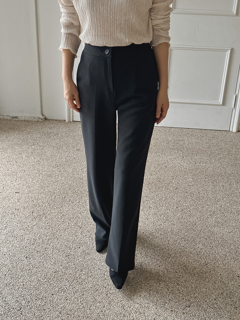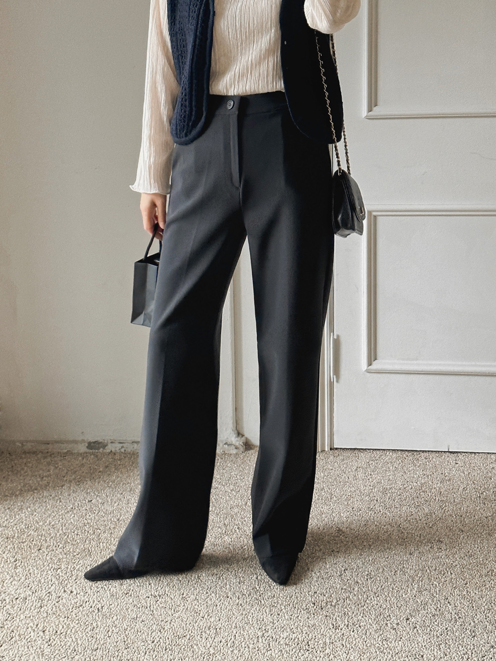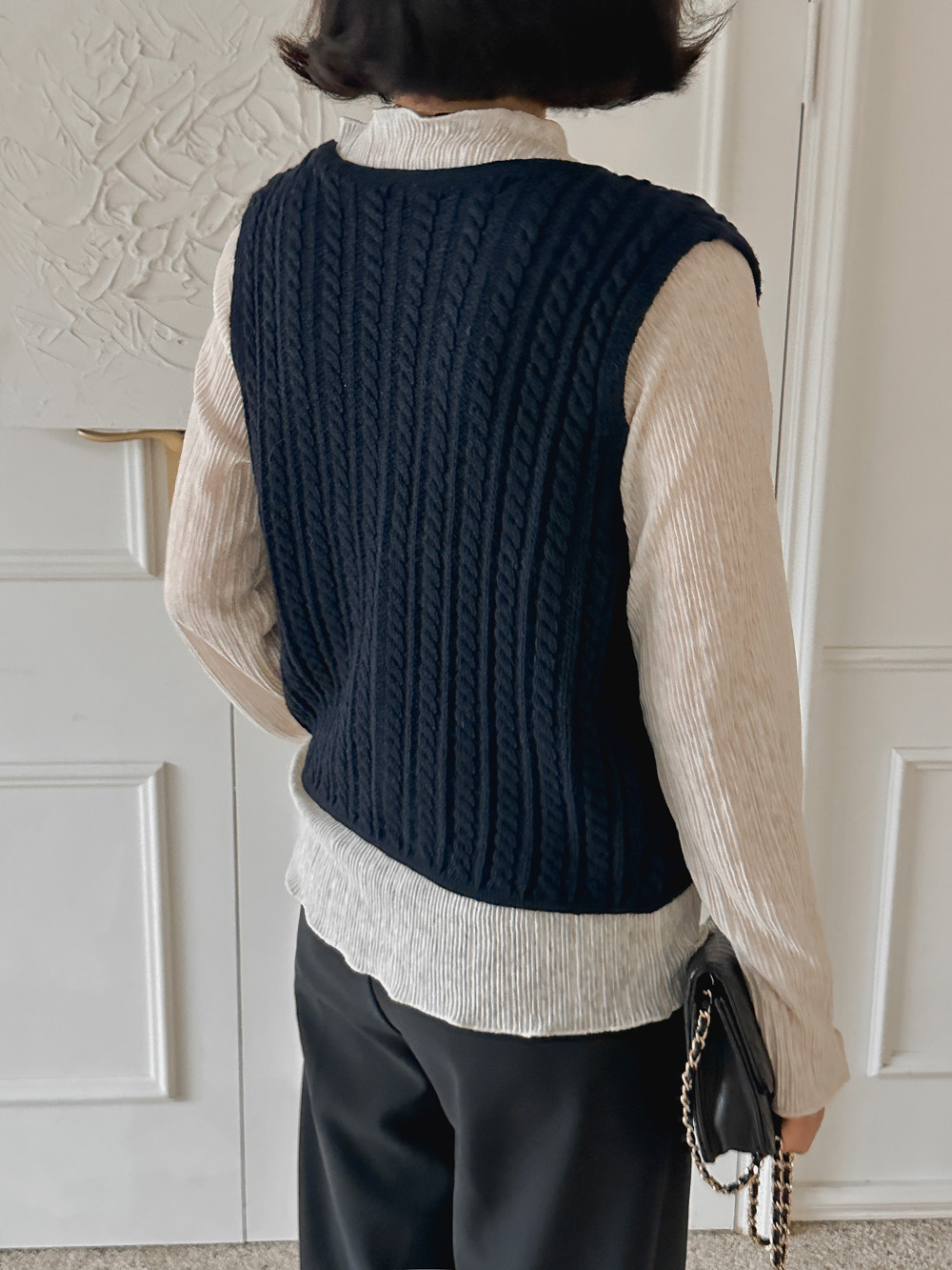 잔잔한 세로 주름의 플리츠 디테일로