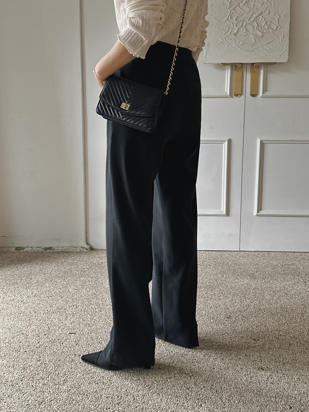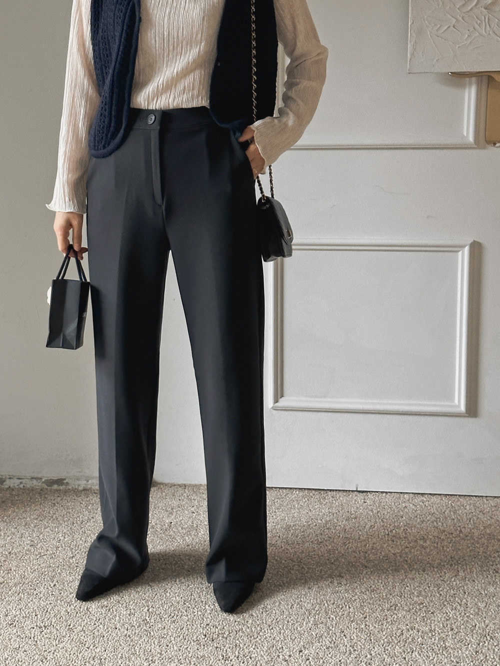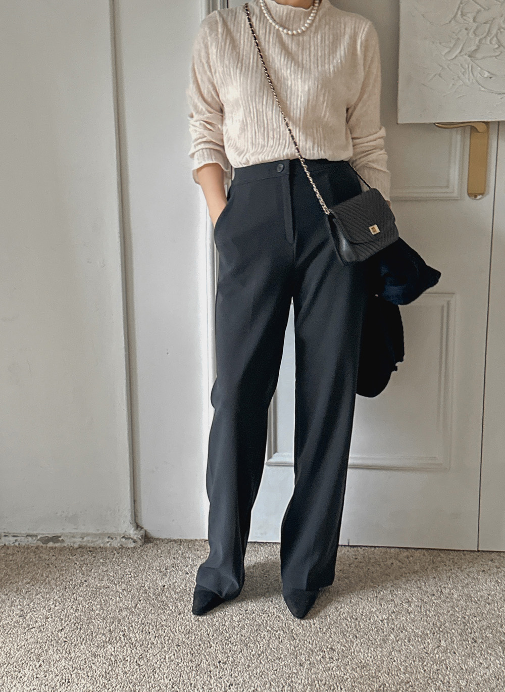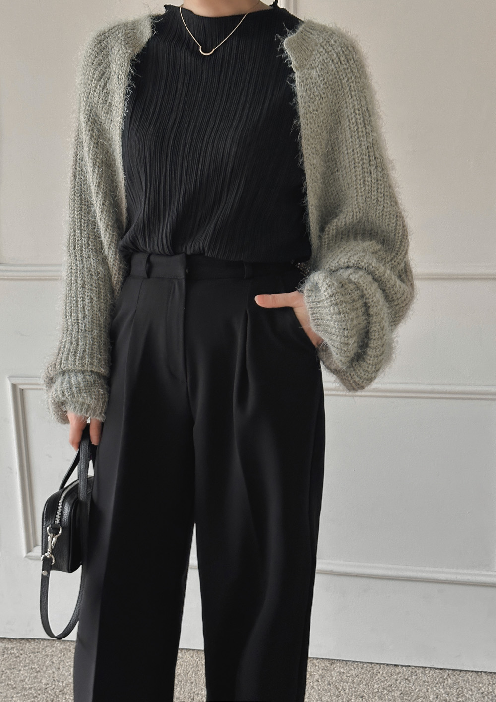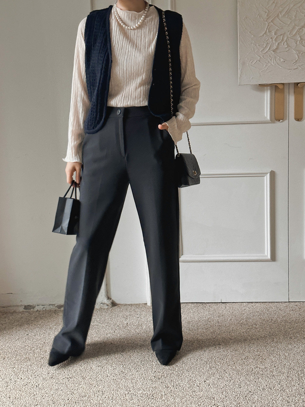 잔잔한 세로 주름의 플리츠 디테일로