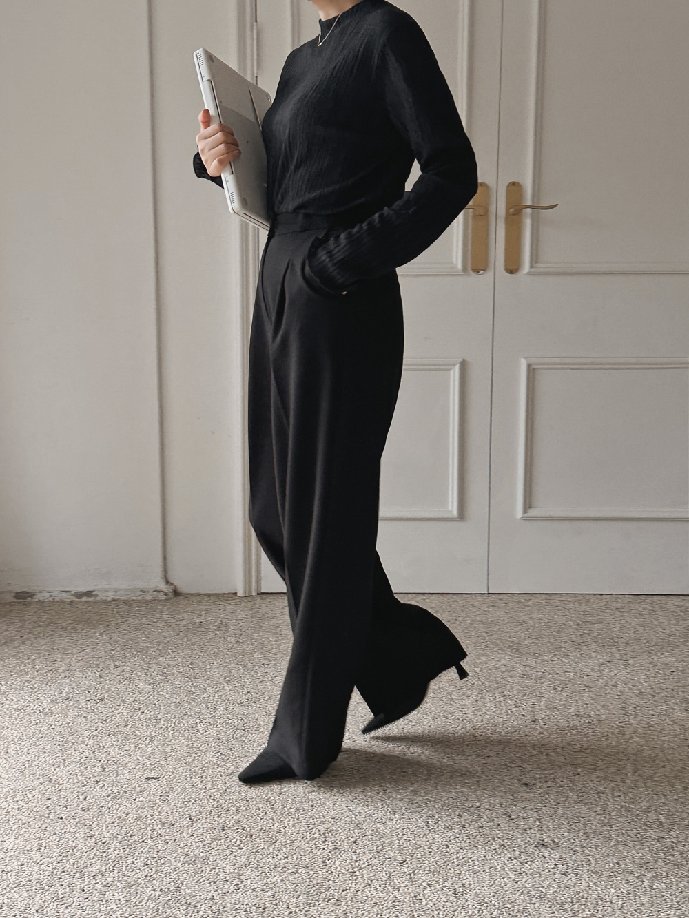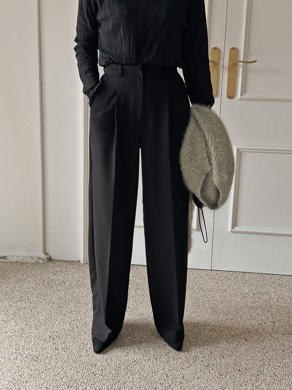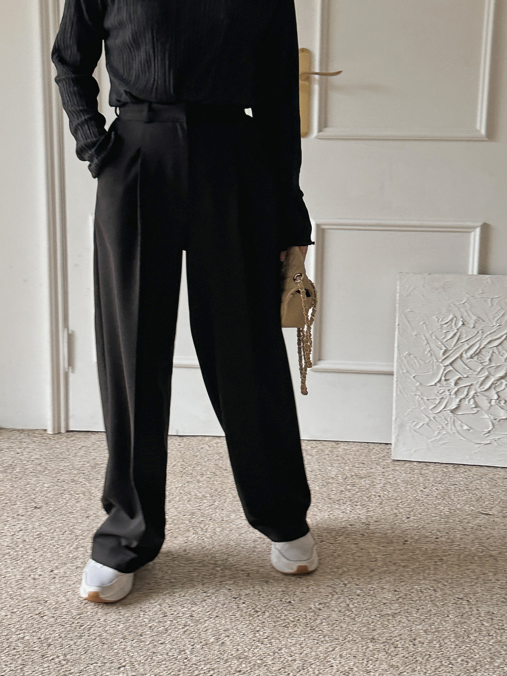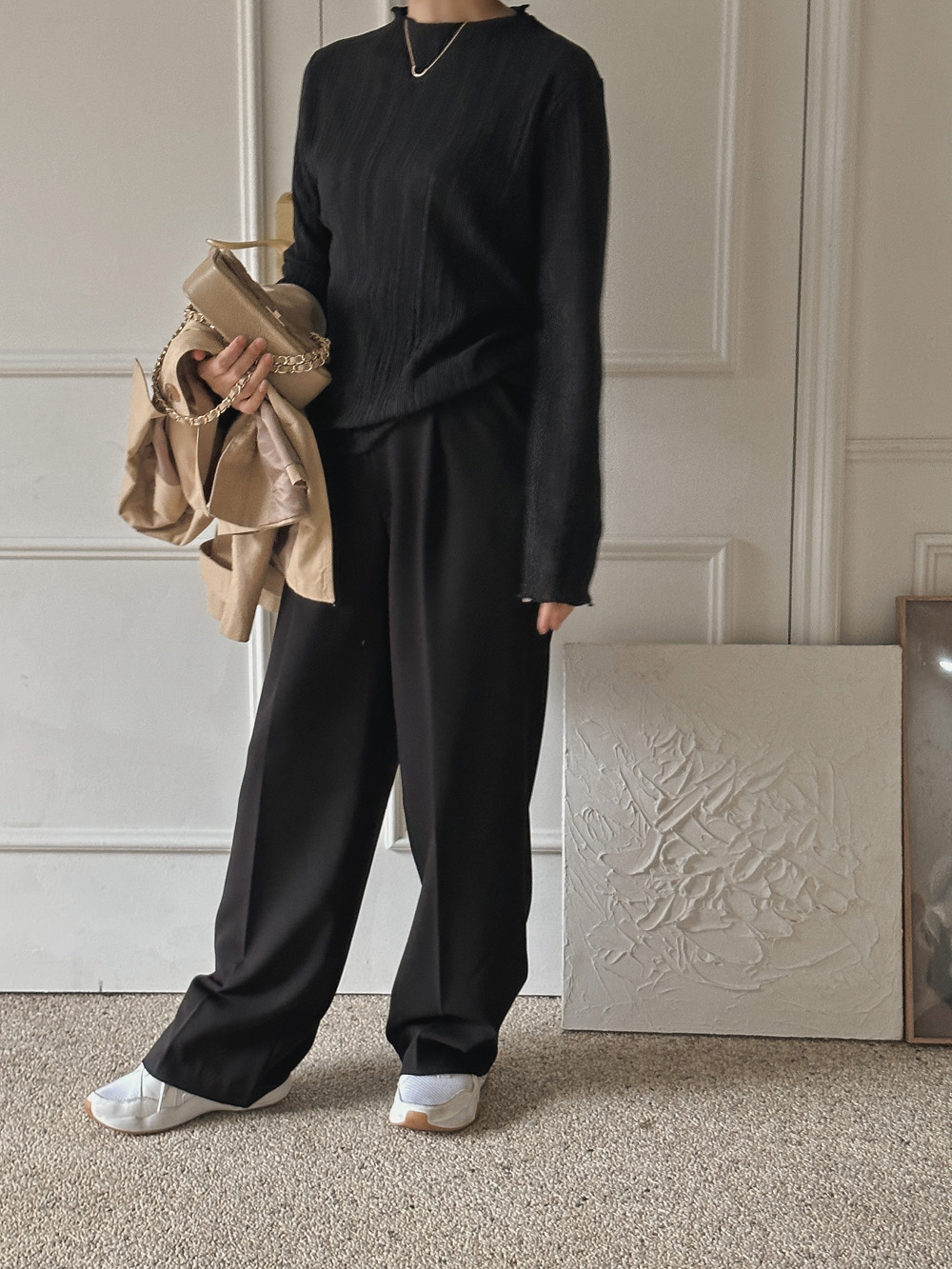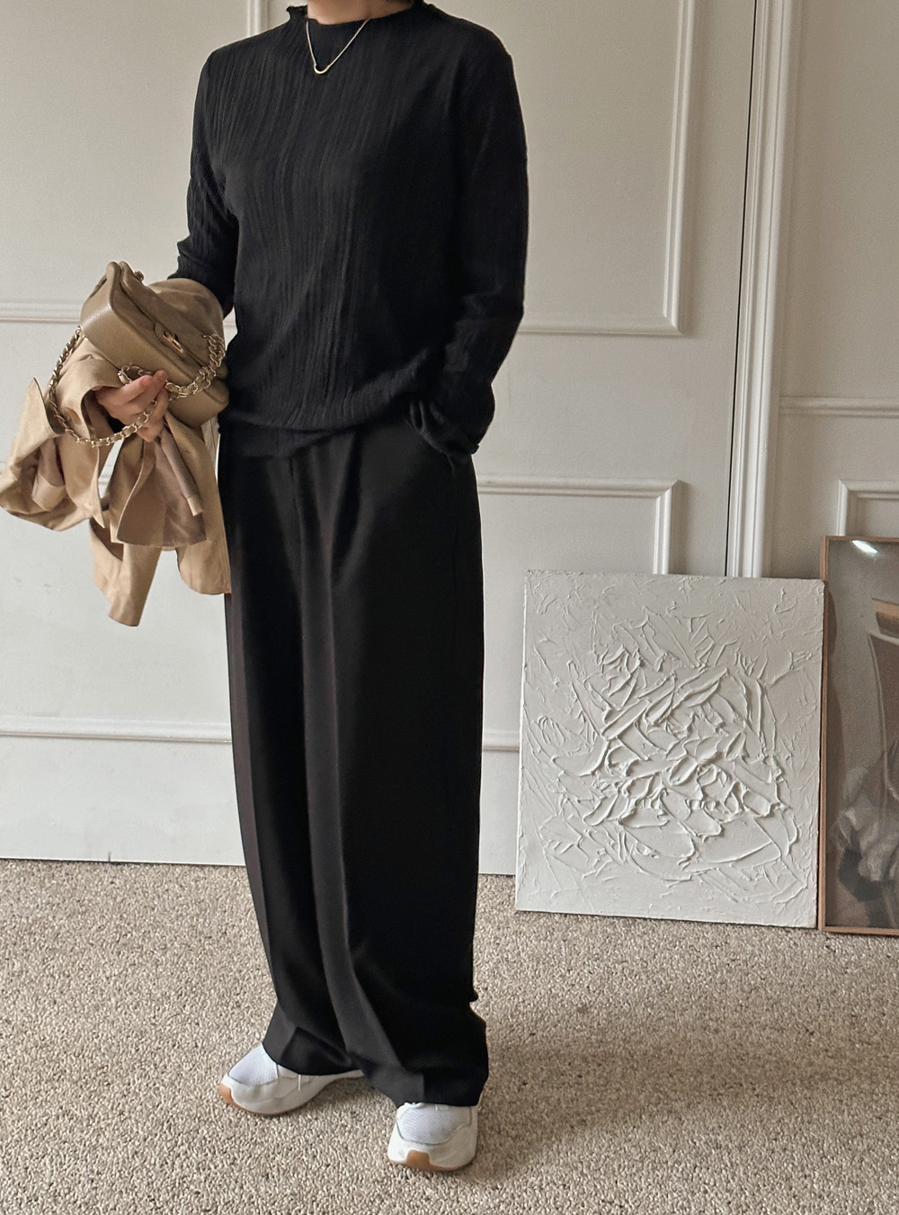 잔잔한 세로 주름의 플리츠 디테일로
