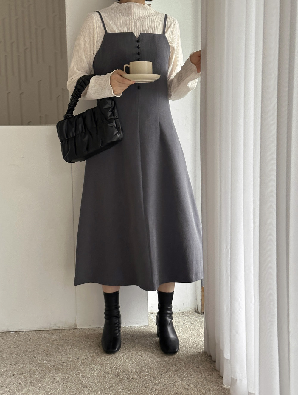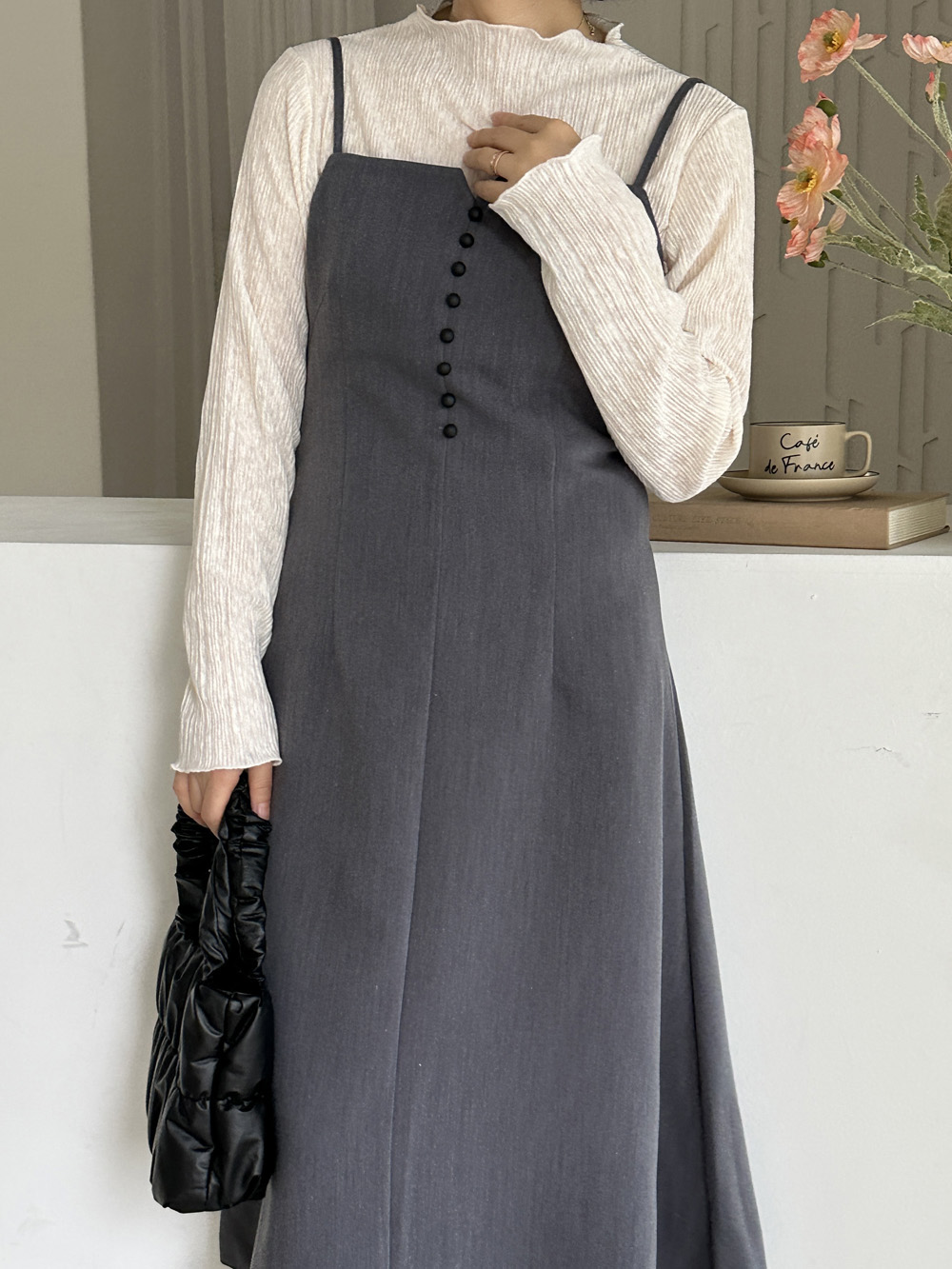 목 위로 살짝 올라오는 러플 디자인으로 러블리하게~