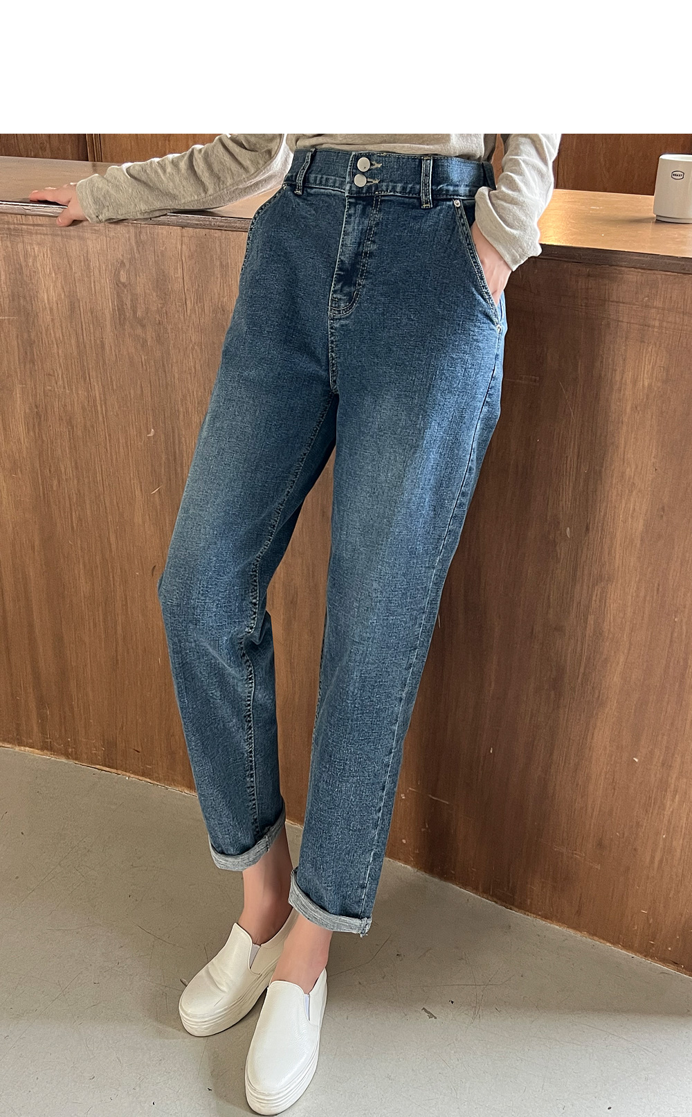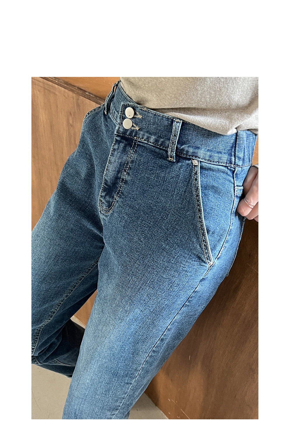 반밴드 투버튼 절개 배기진 #710120