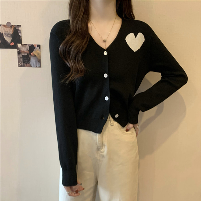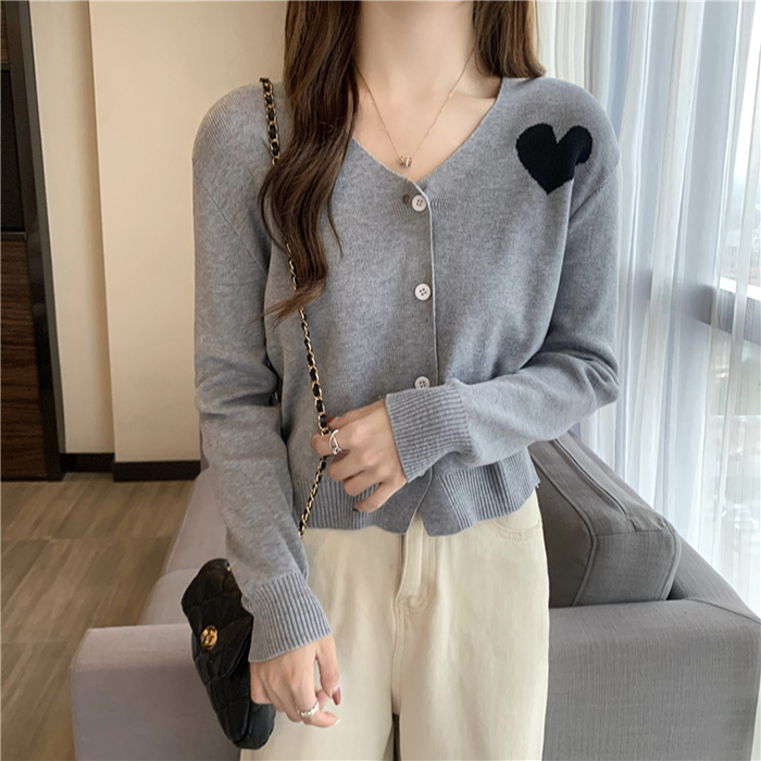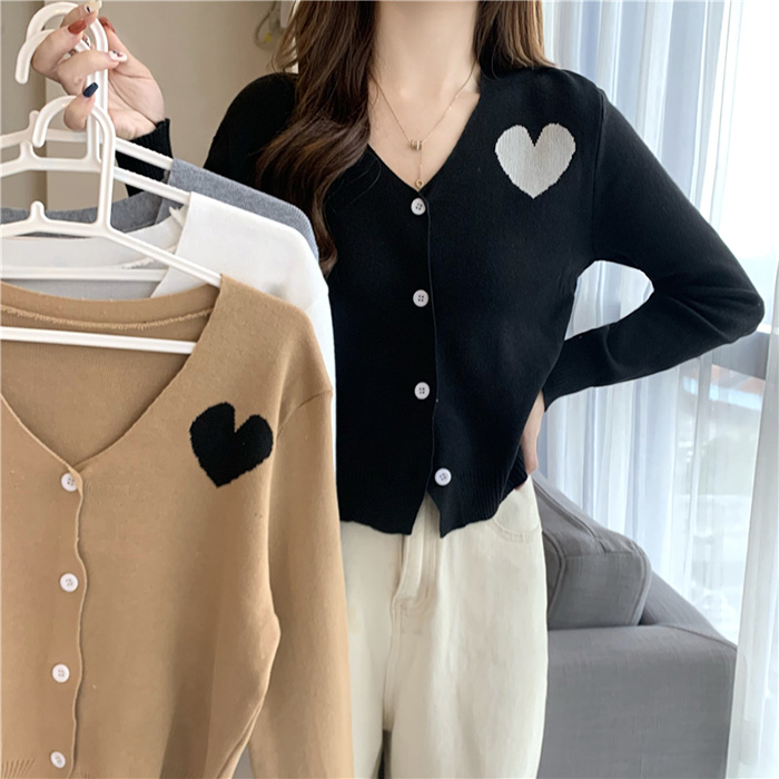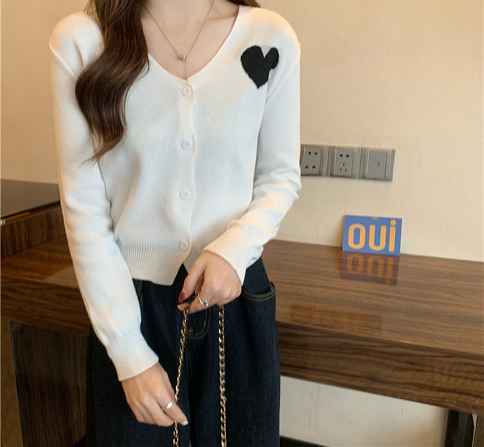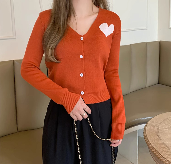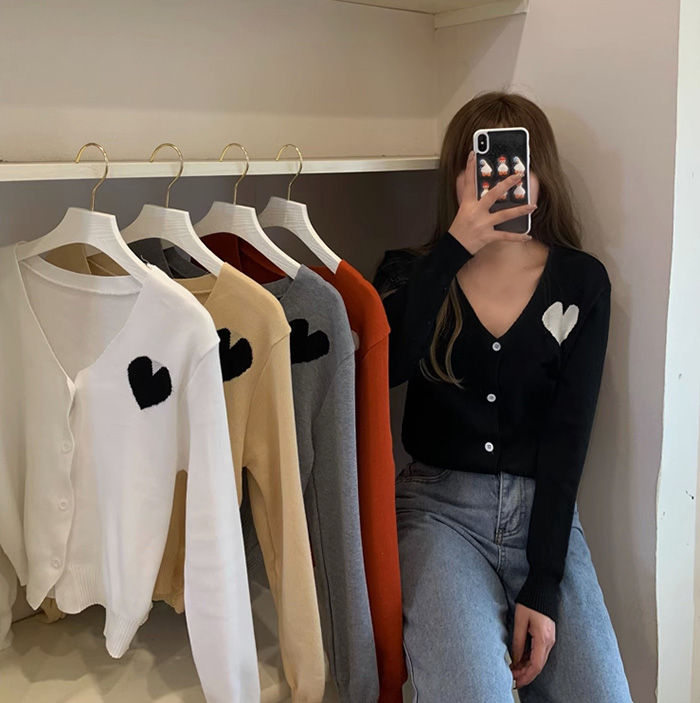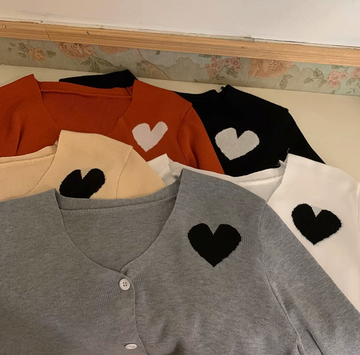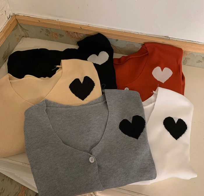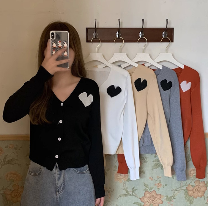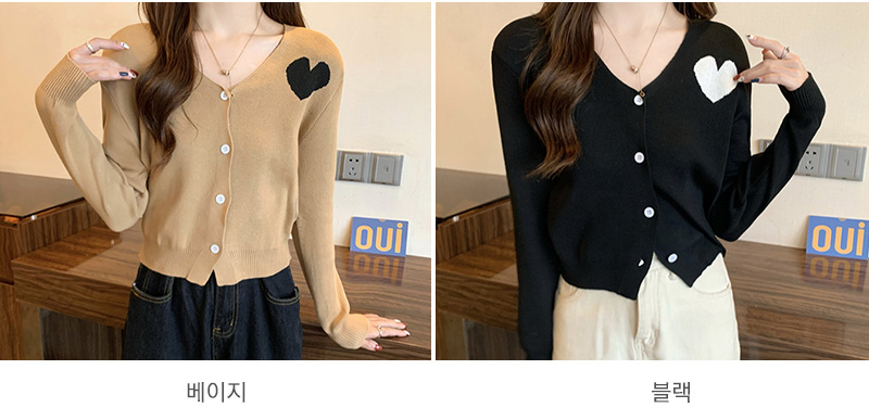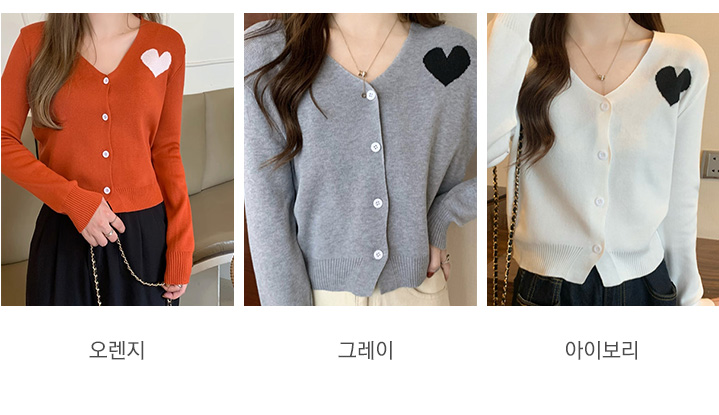 엘렌 가슴에하트 브이넥 니트 가디건 - 5컬러