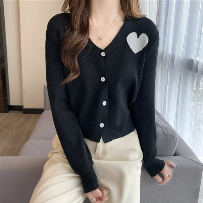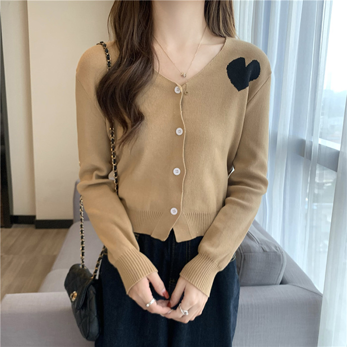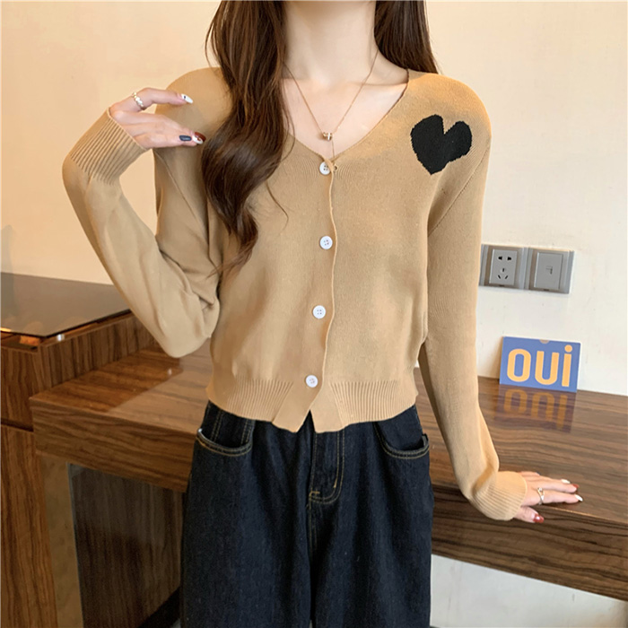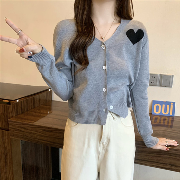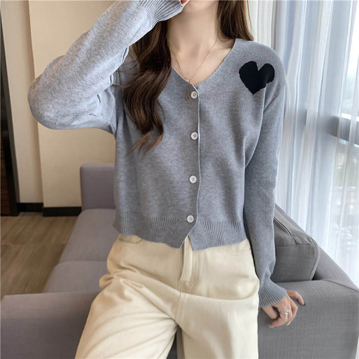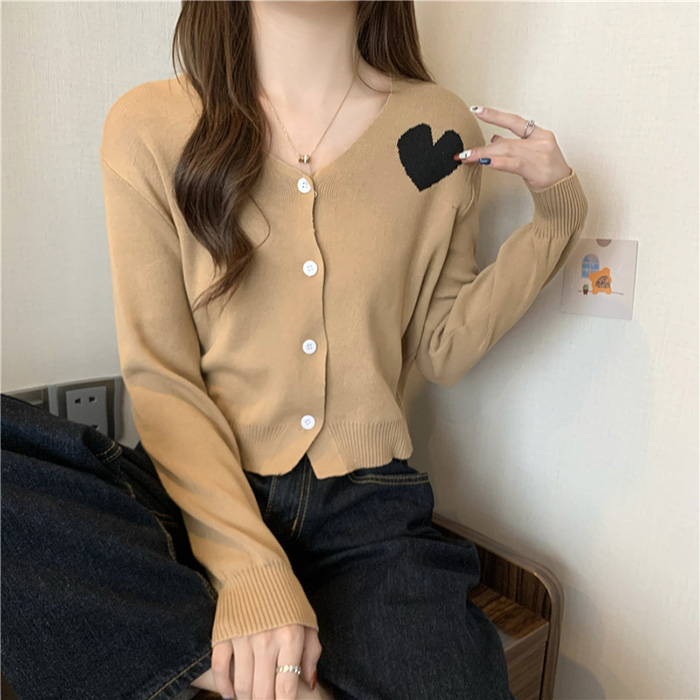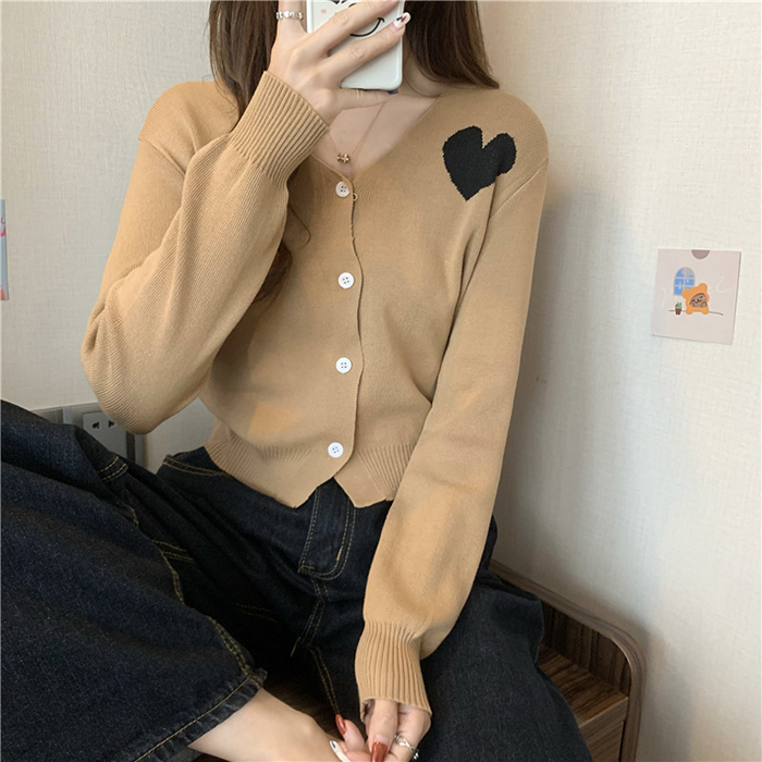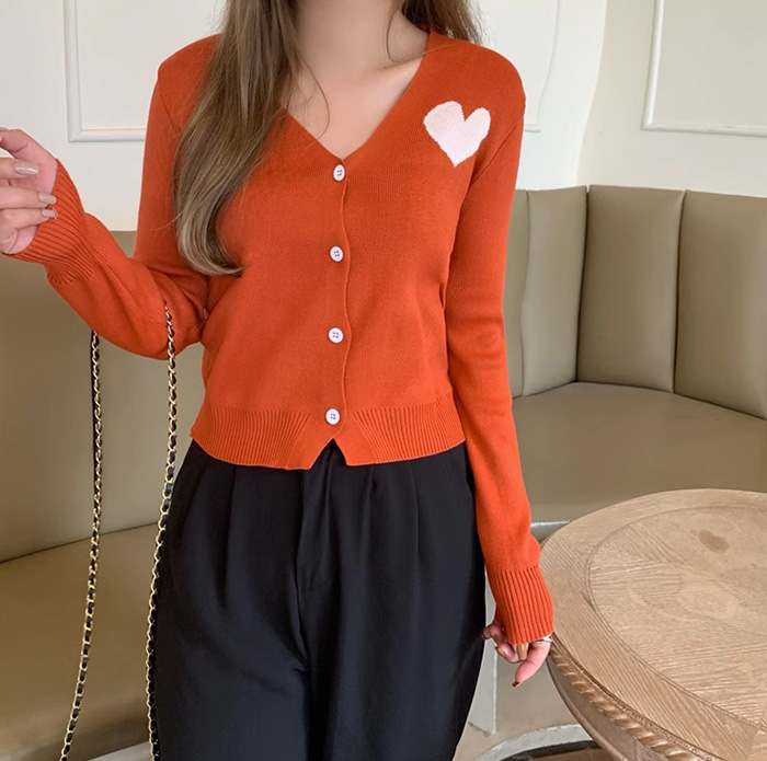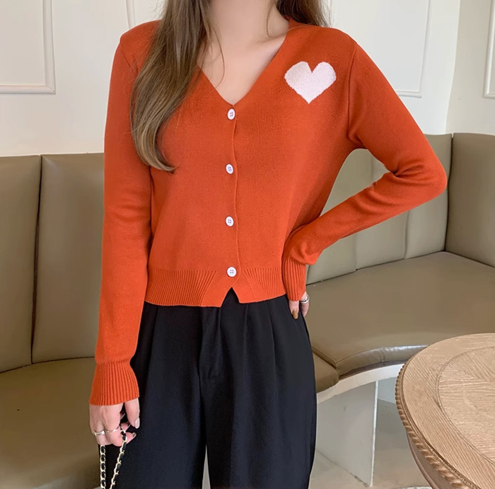 엘렌 가슴에하트 브이넥 니트 가디건 - 5컬러