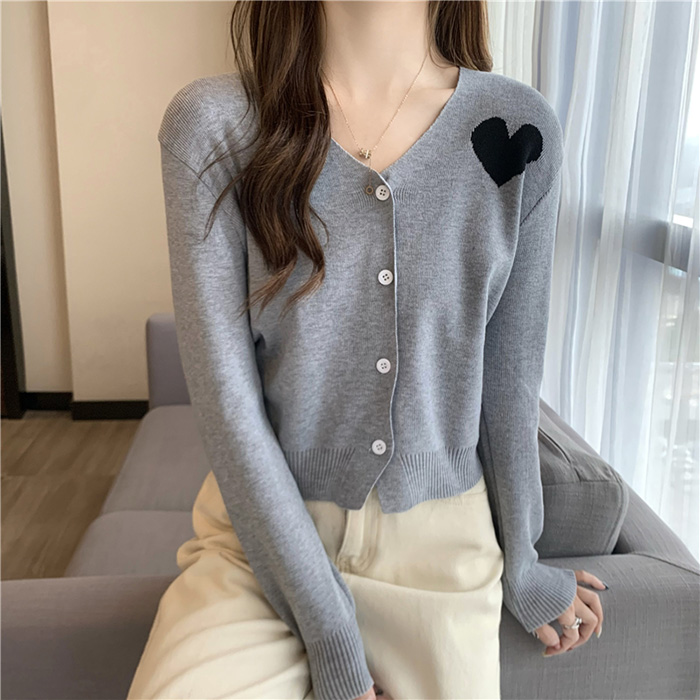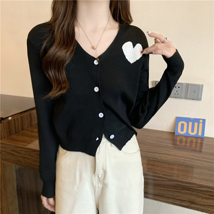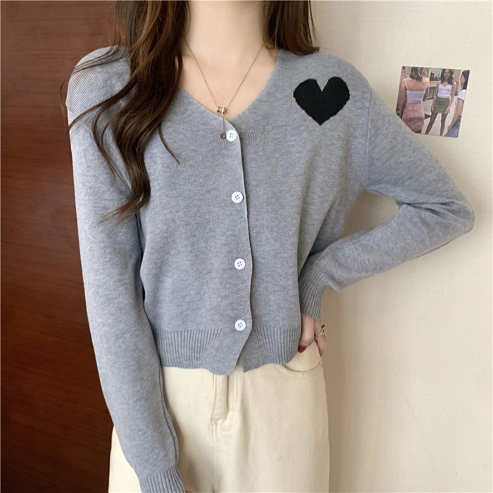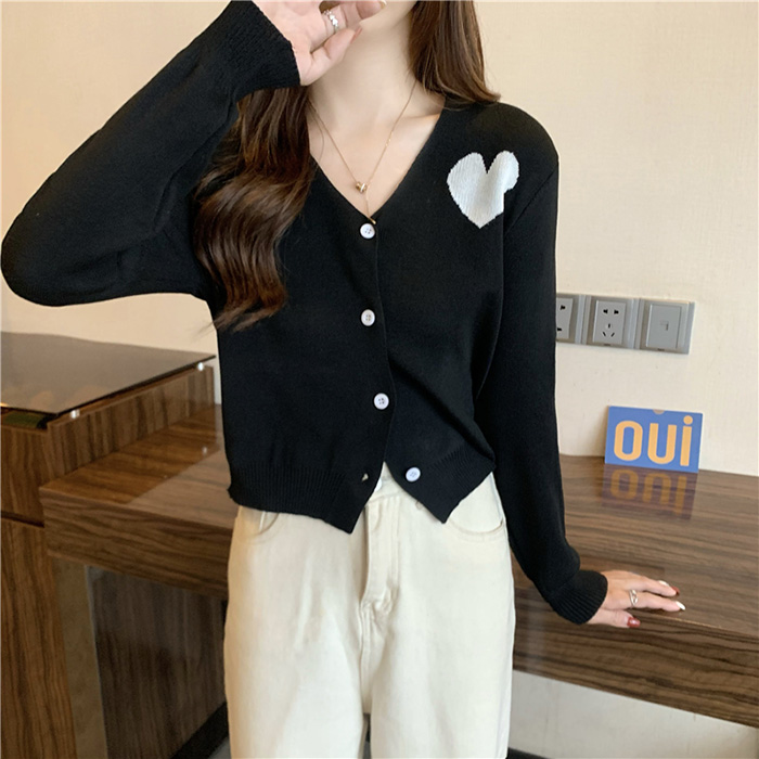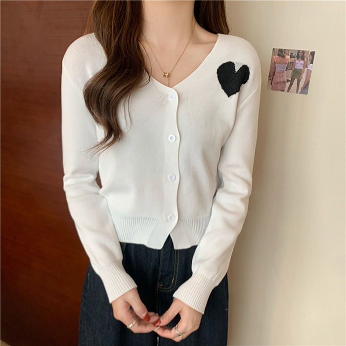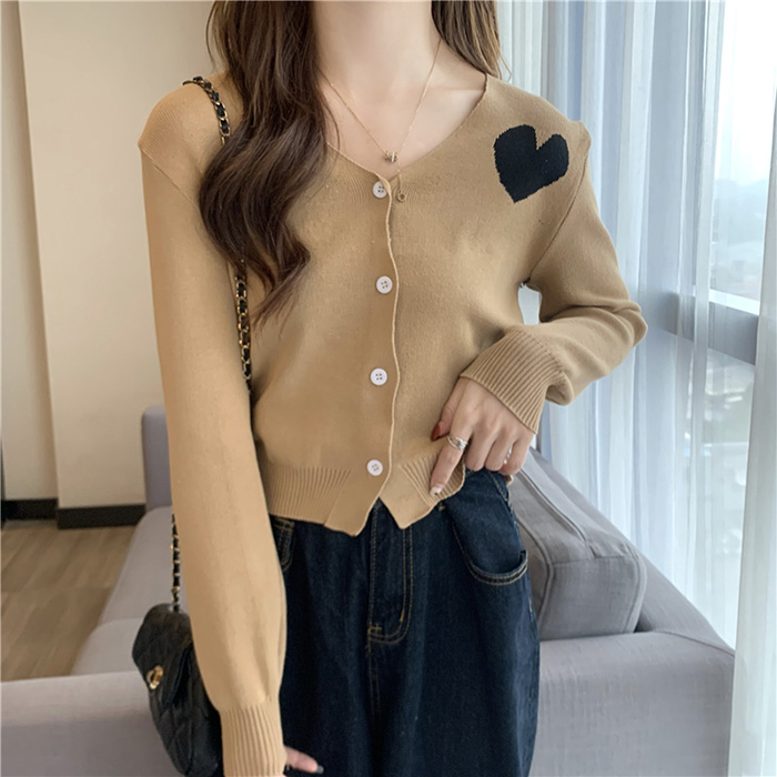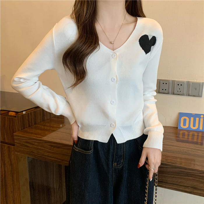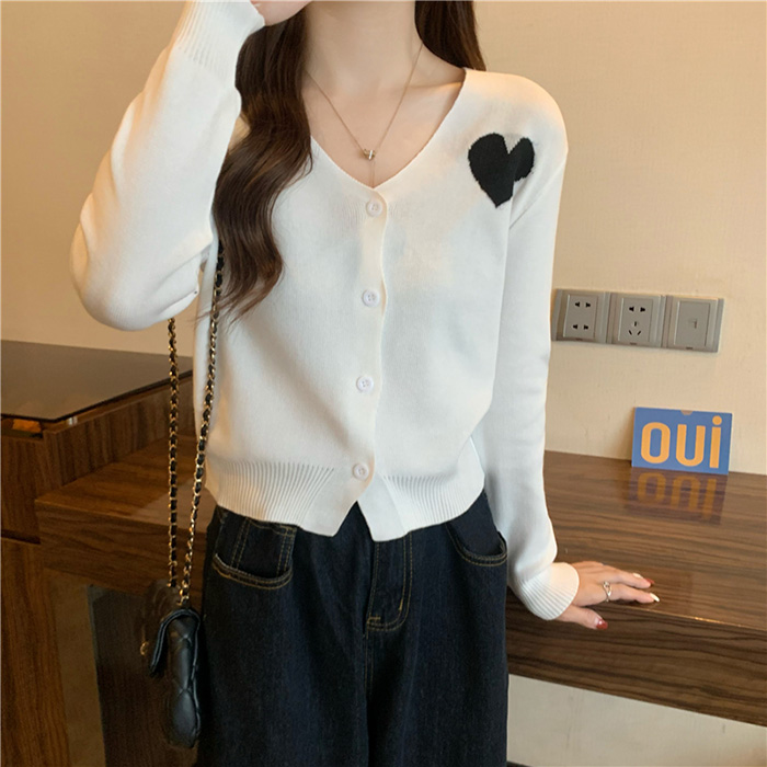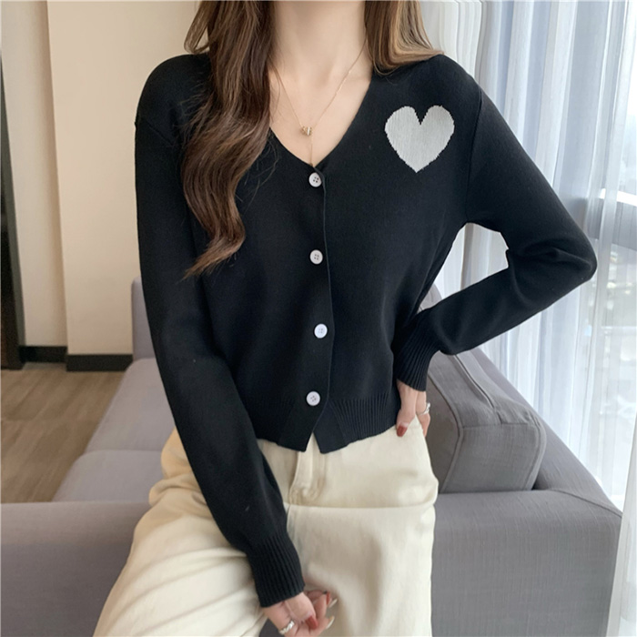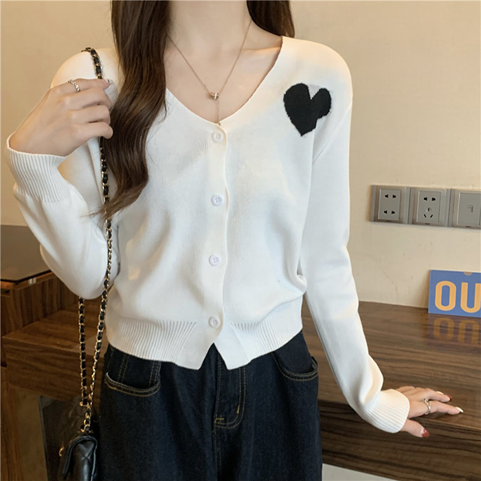 엘렌 가슴에하트 브이넥 니트 가디건 - 5컬러