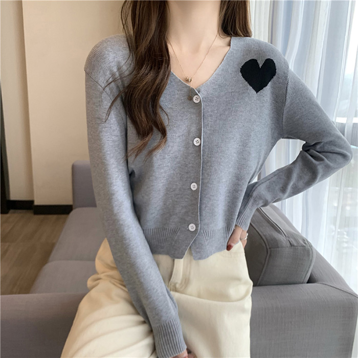 Ellen Chest Heart V-Neck Knit Cardigan - 5 Colors