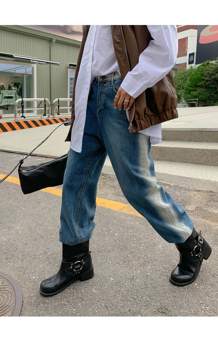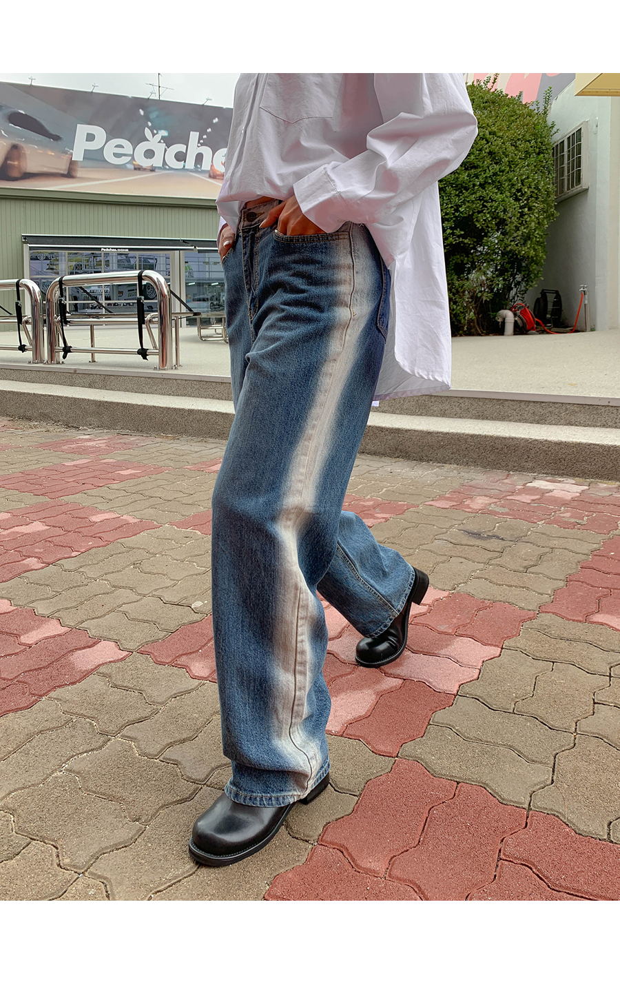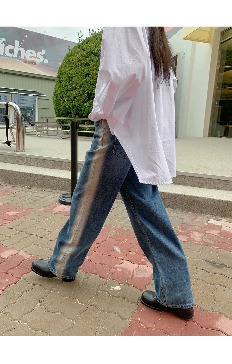 Light washing banding wide pants