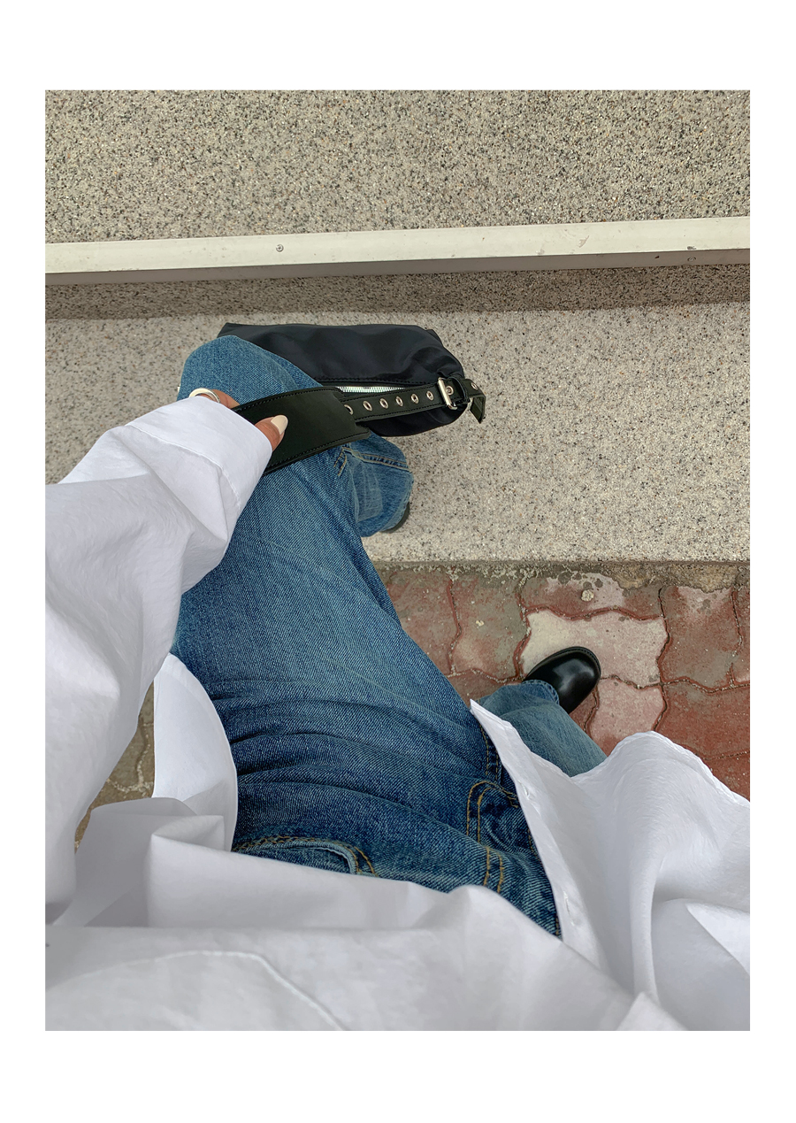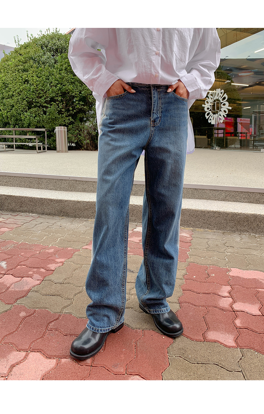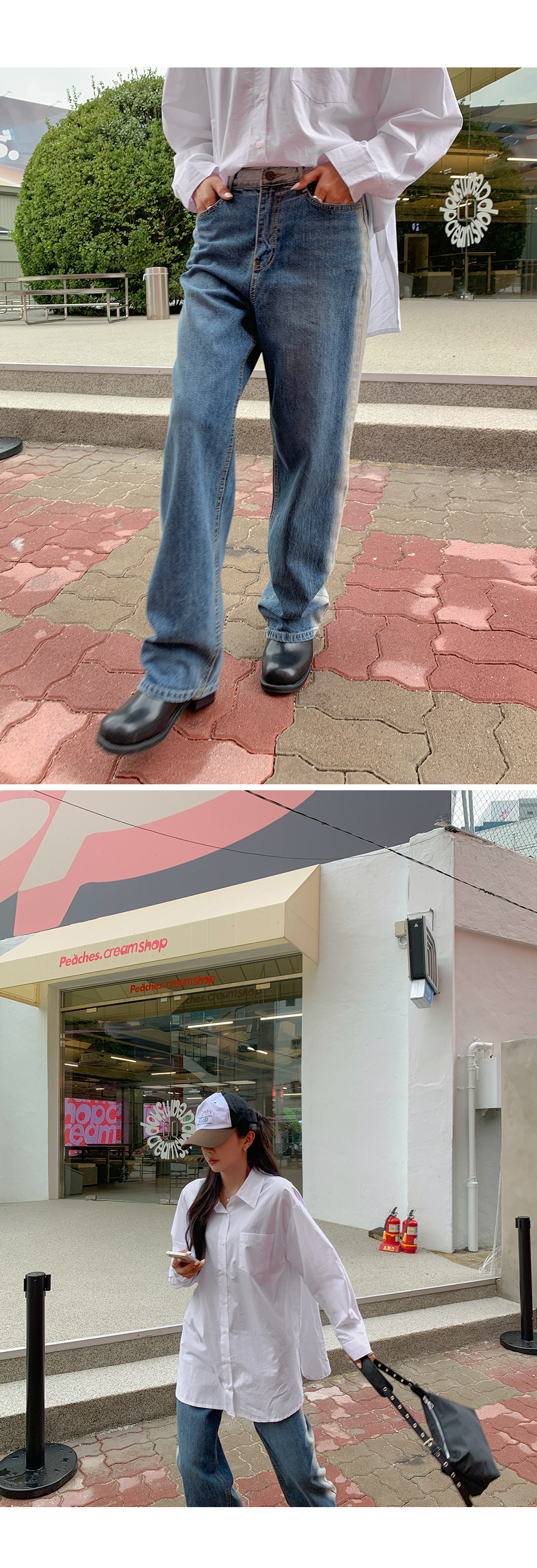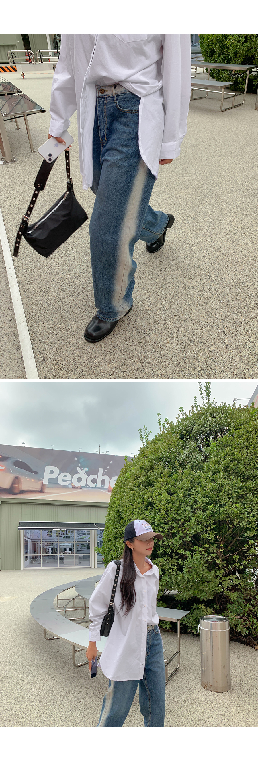 Light washing banding wide pants