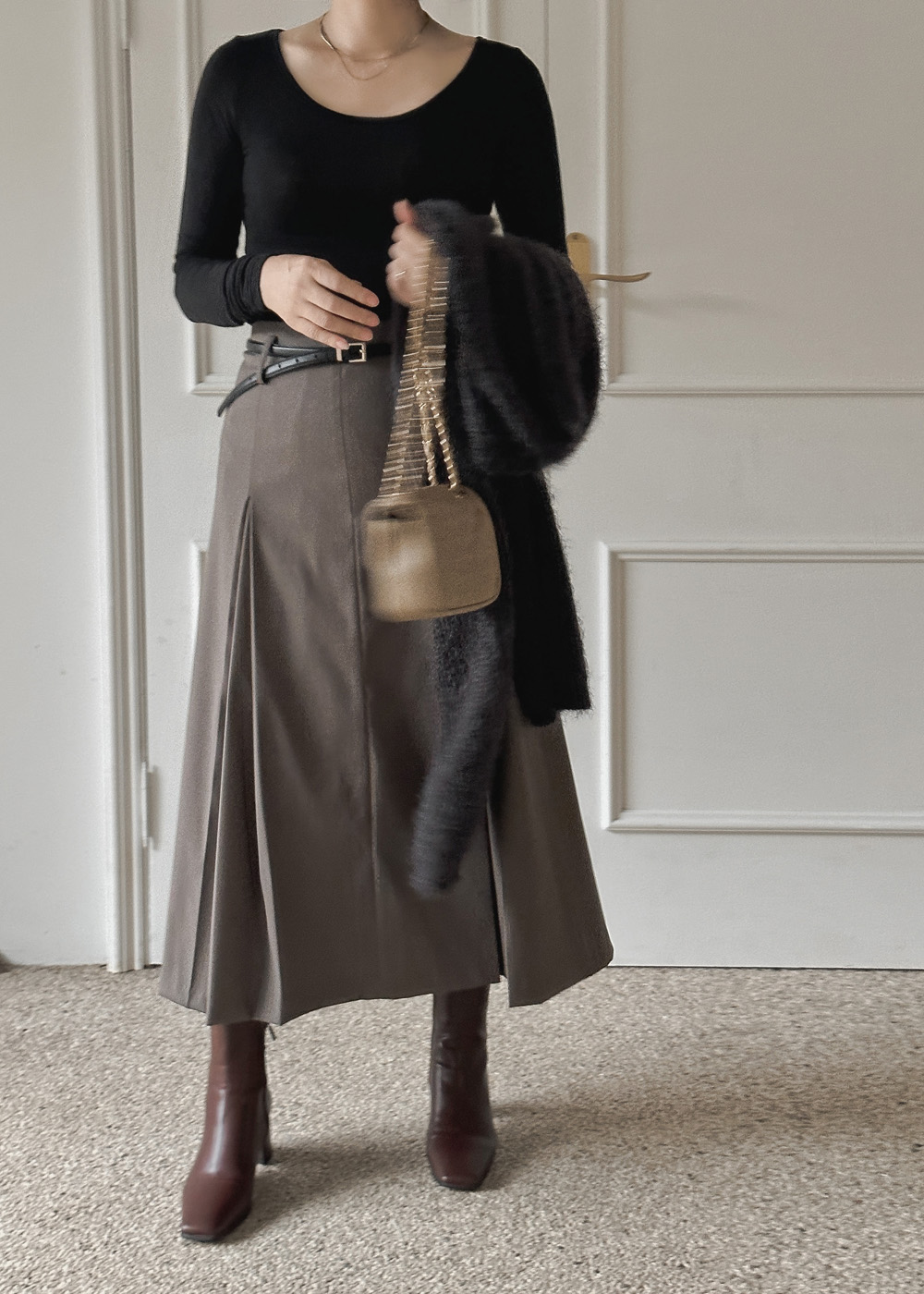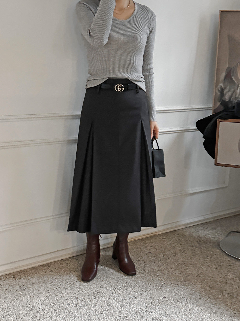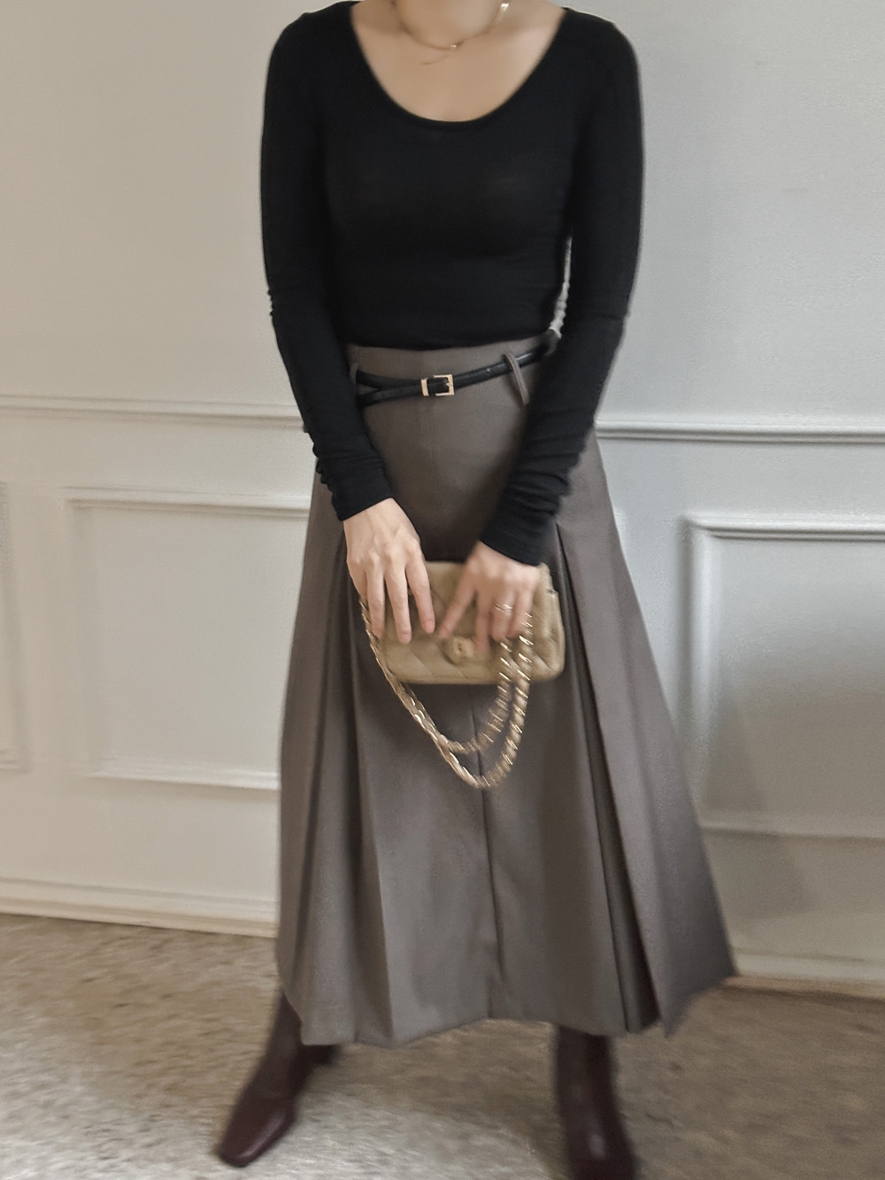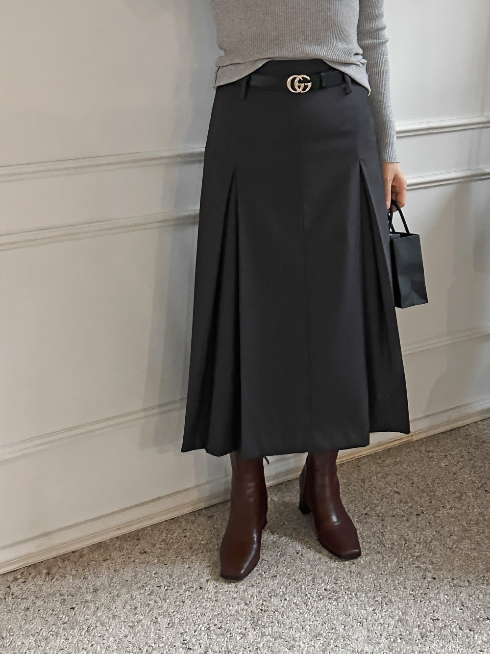 Marianne pleated long skirt_S, M-3color - Style T Bar