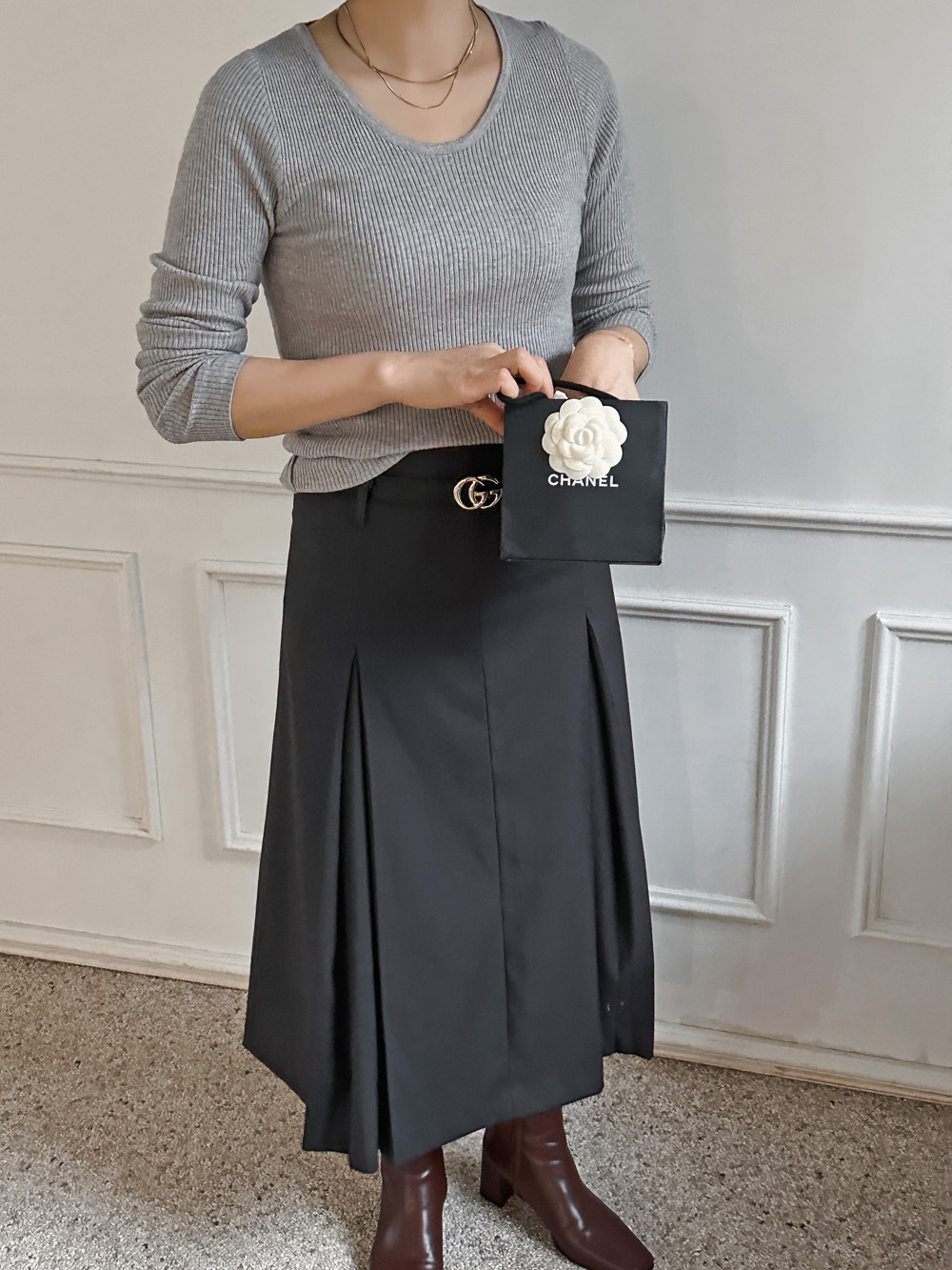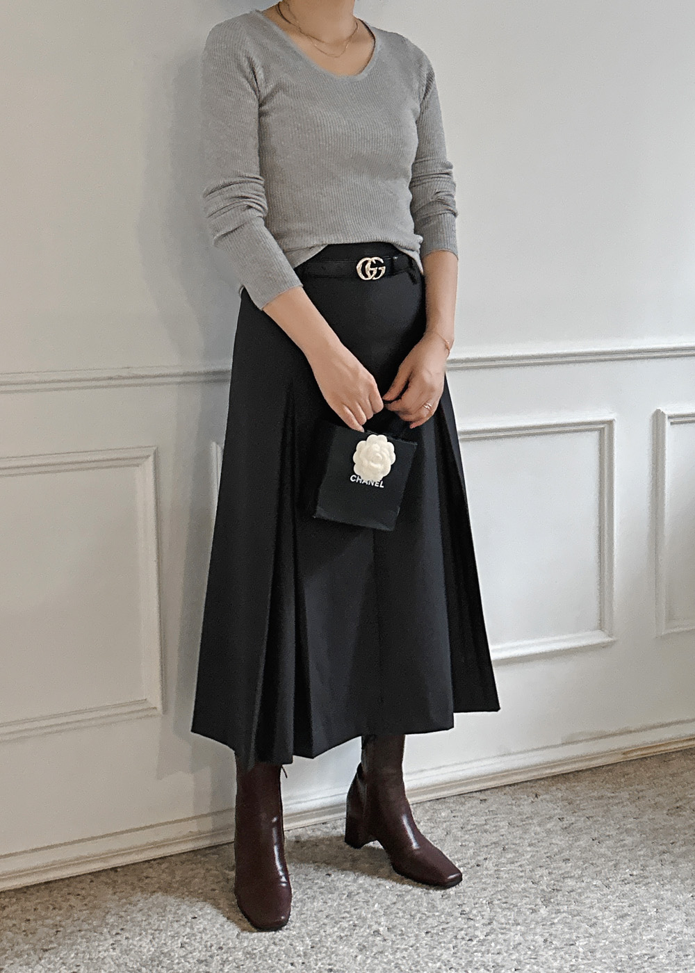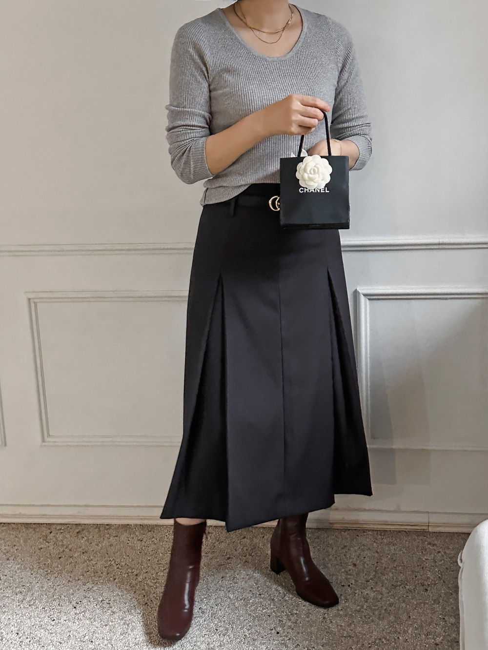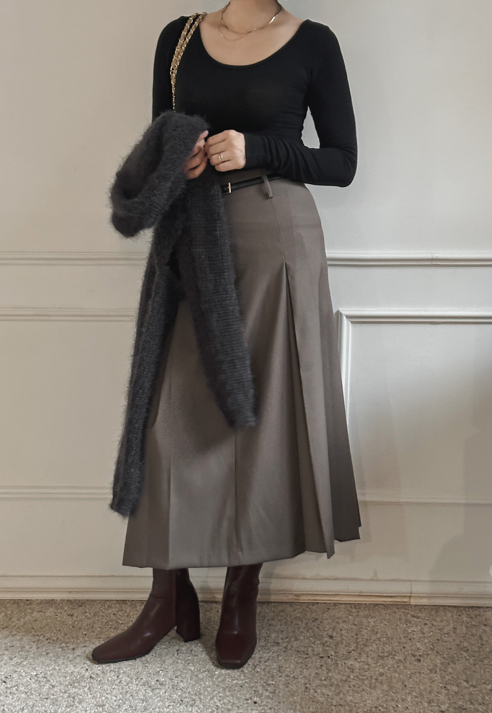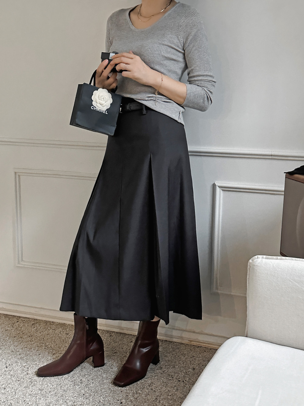 Marianne pleated long skirt_S, M-3color - Style T Bar