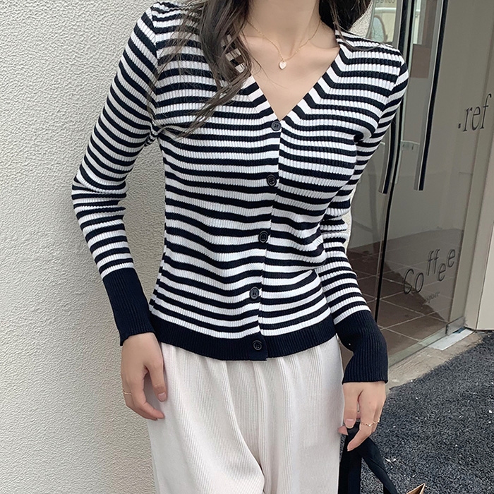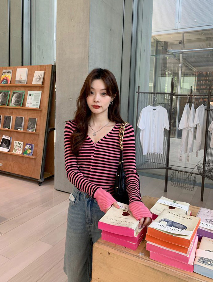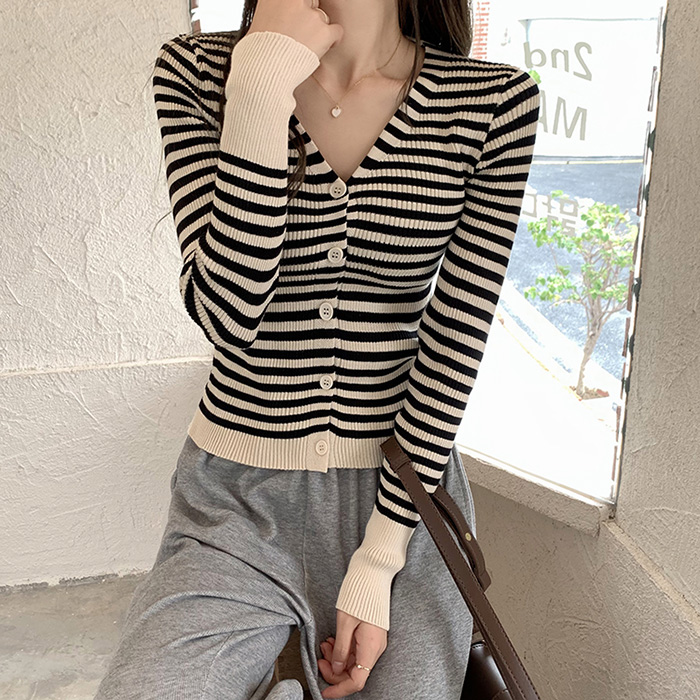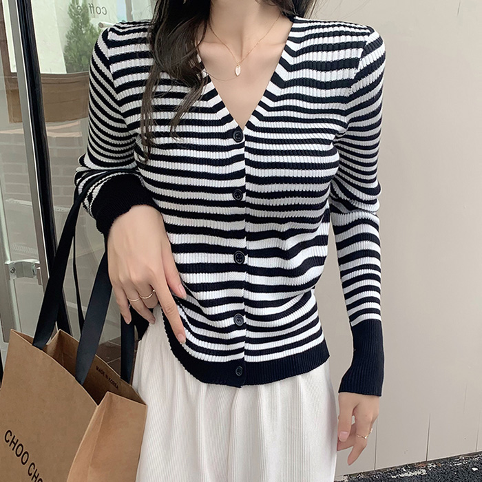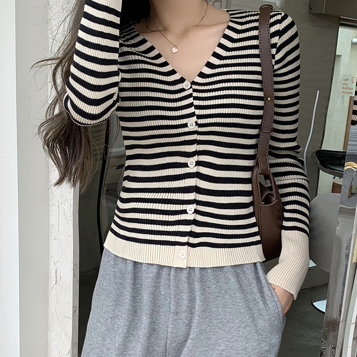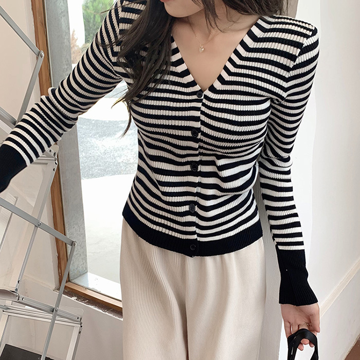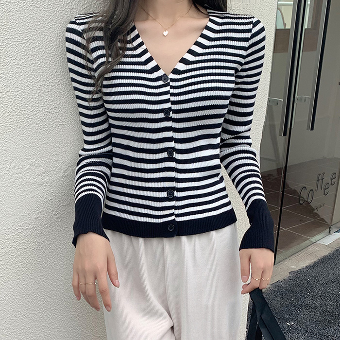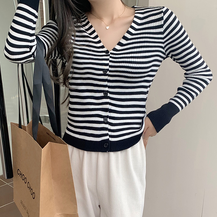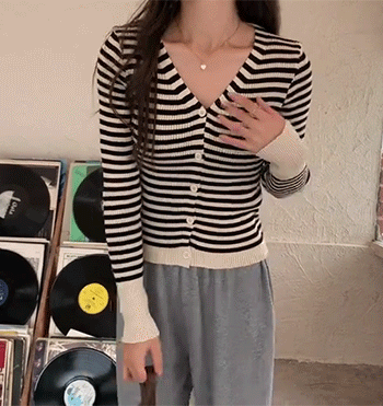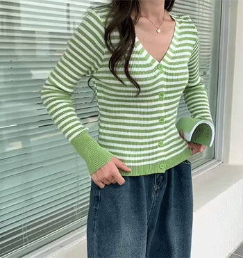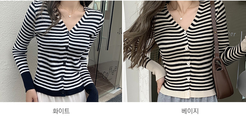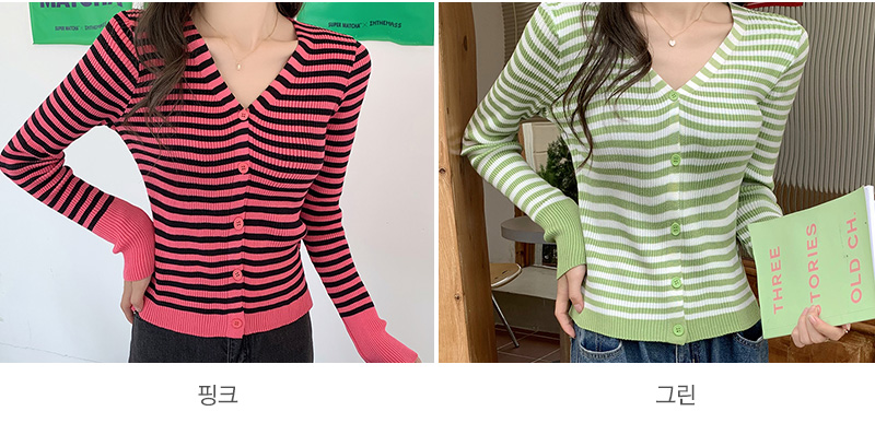소앤 스트라이프 골지 쫀쫀 가디건 니트탑 - 4컬러
