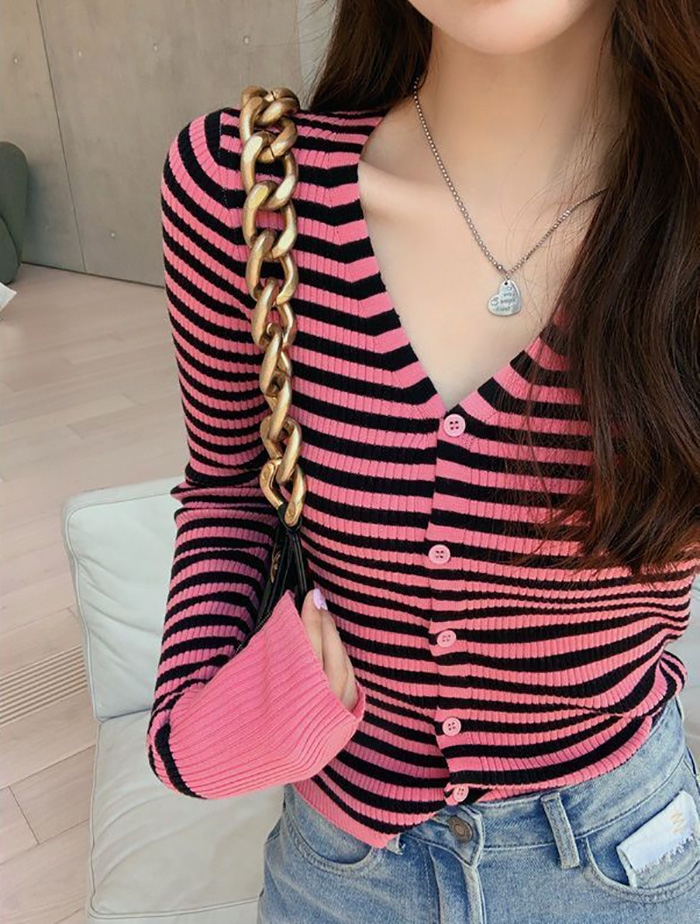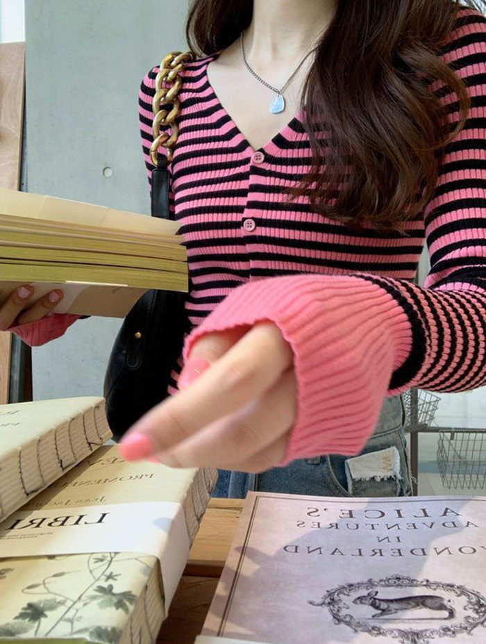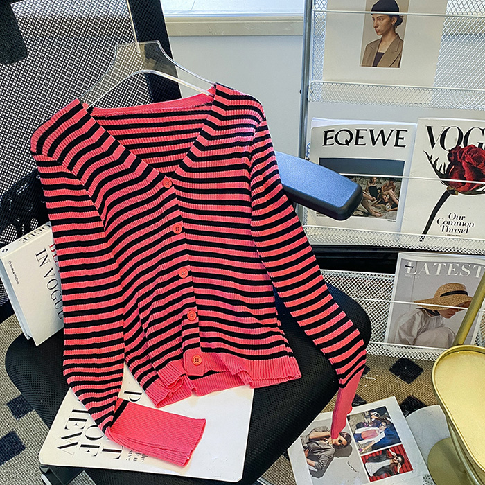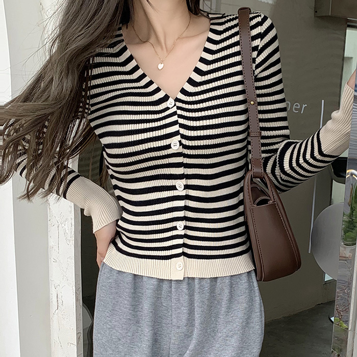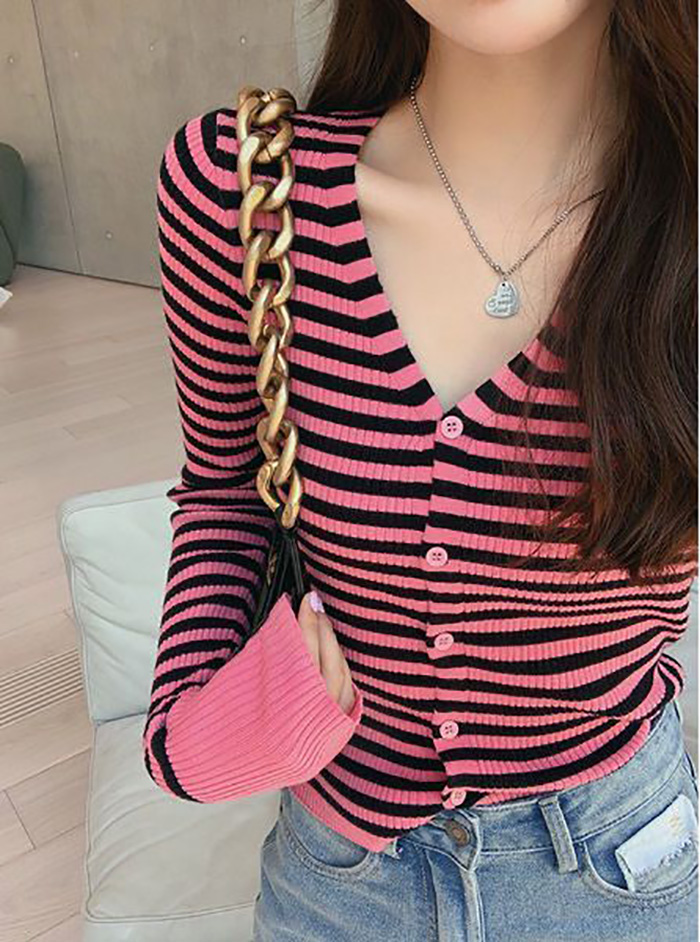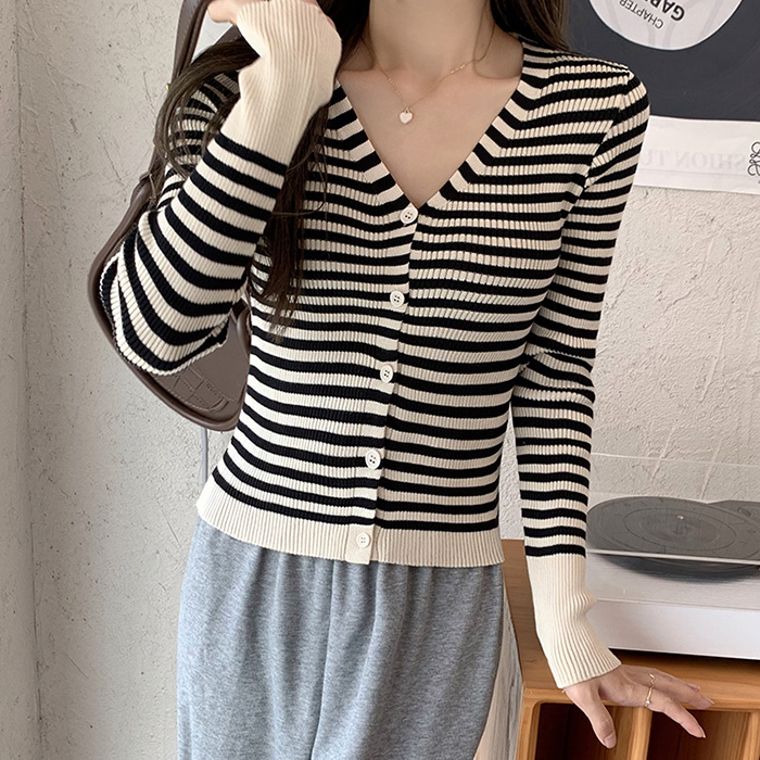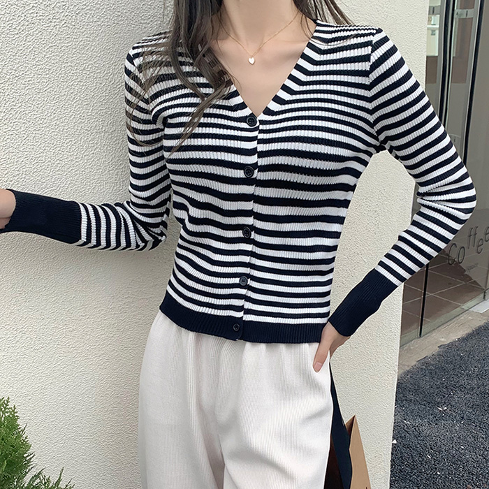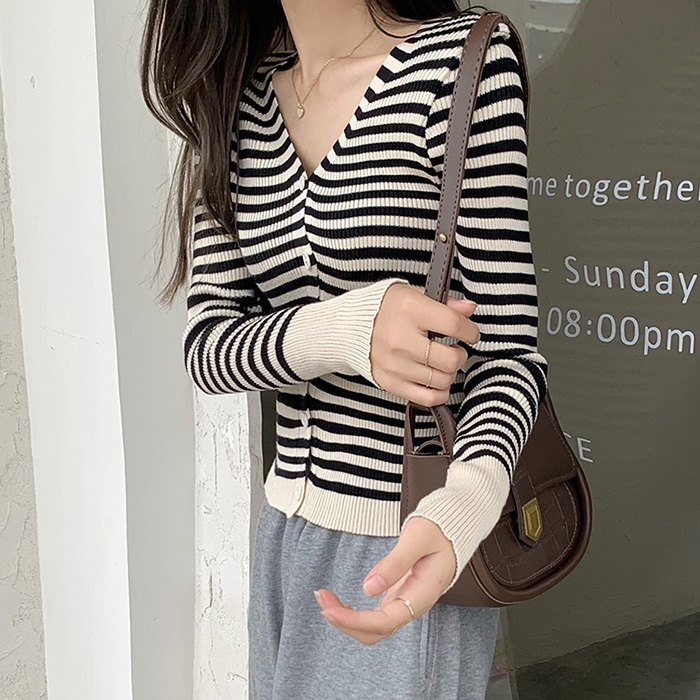 소앤 스트라이프 골지 쫀쫀 가디건 니트탑 - 4컬러
