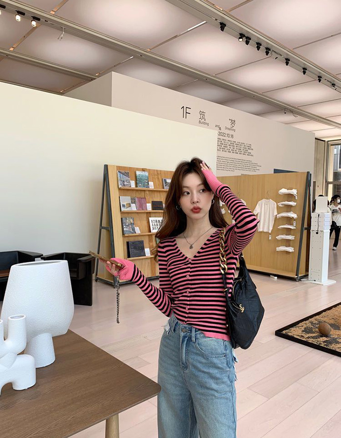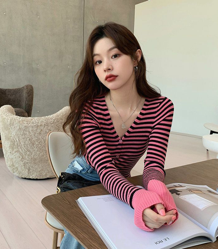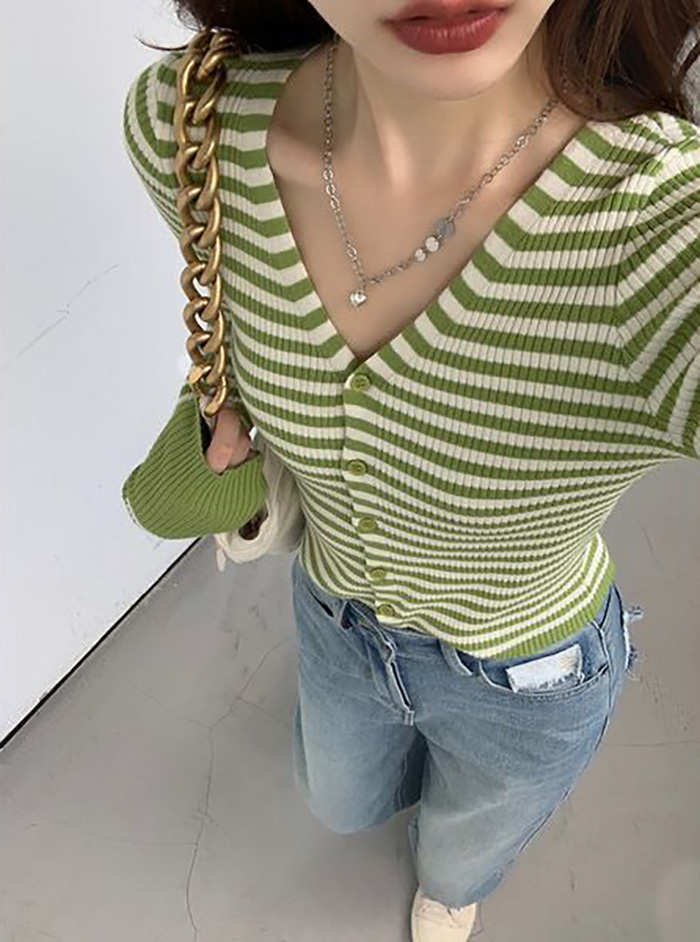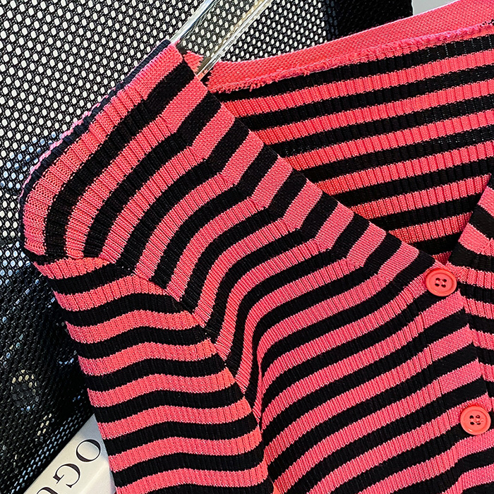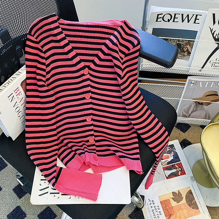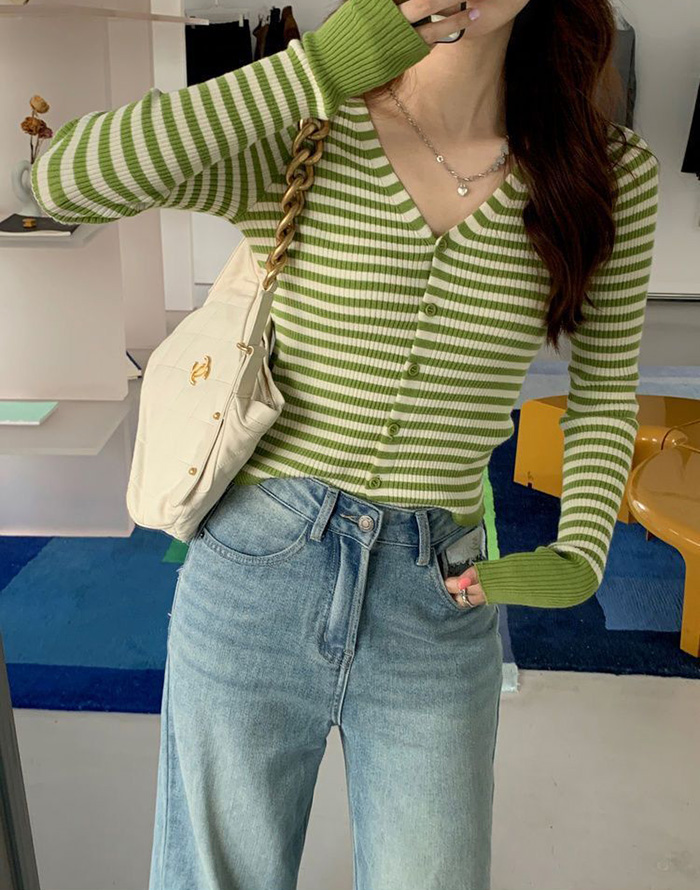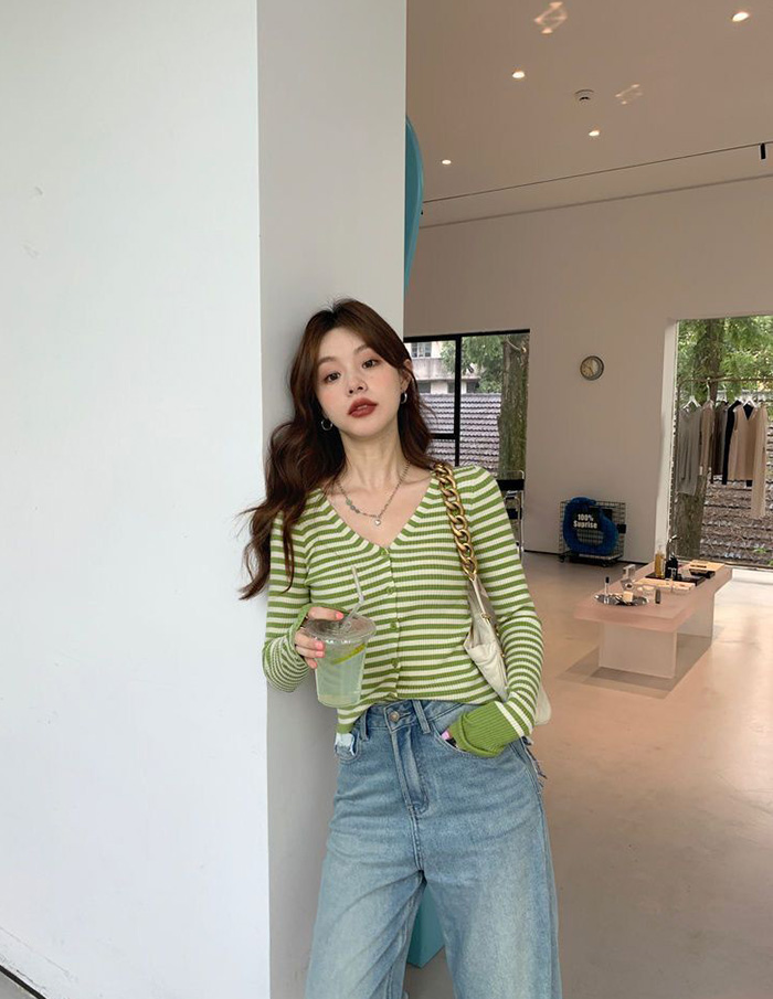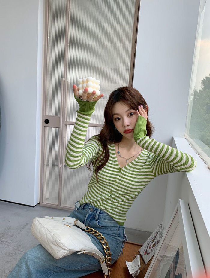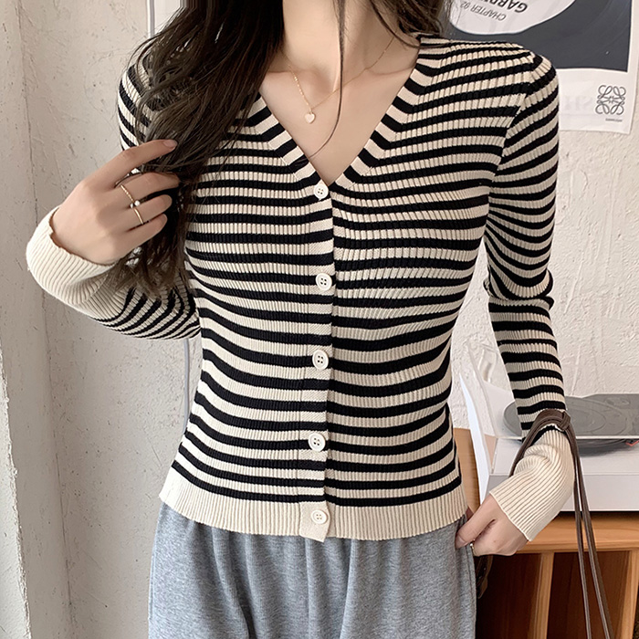 소앤 스트라이프 골지 쫀쫀 가디건 니트탑 - 4컬러