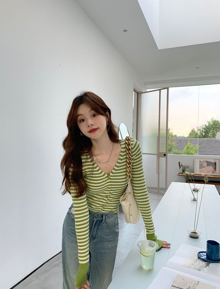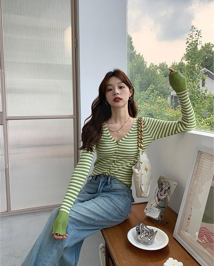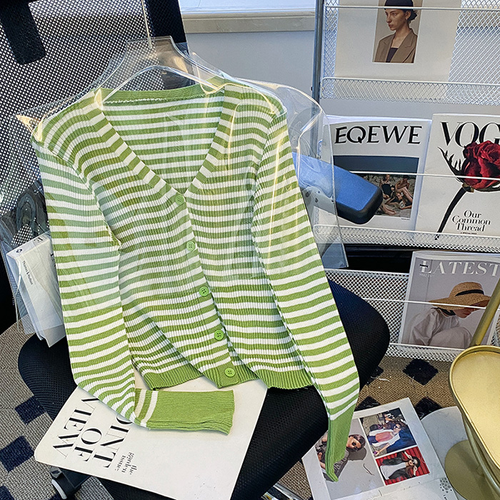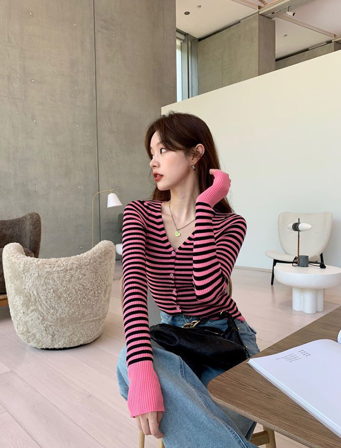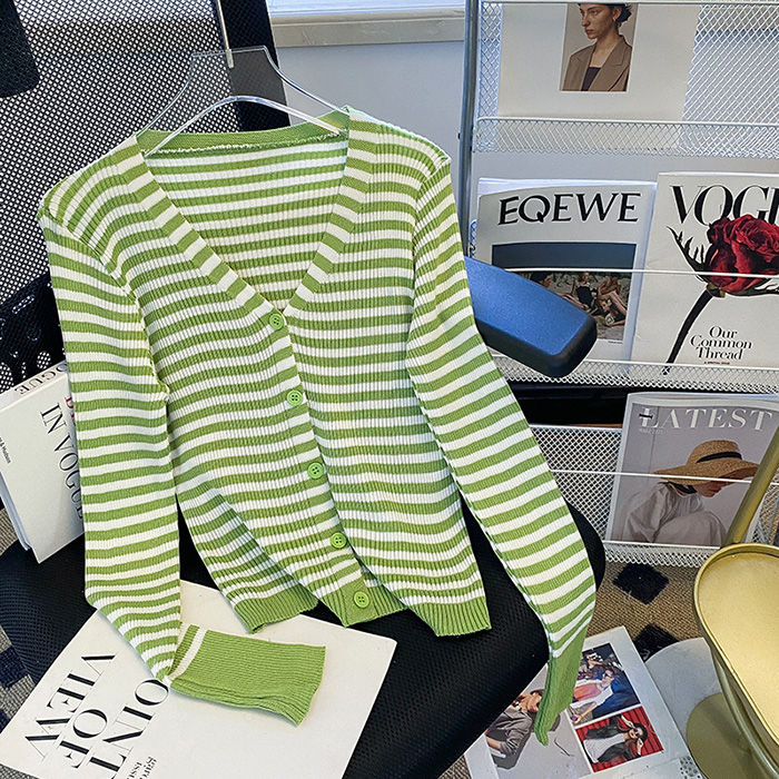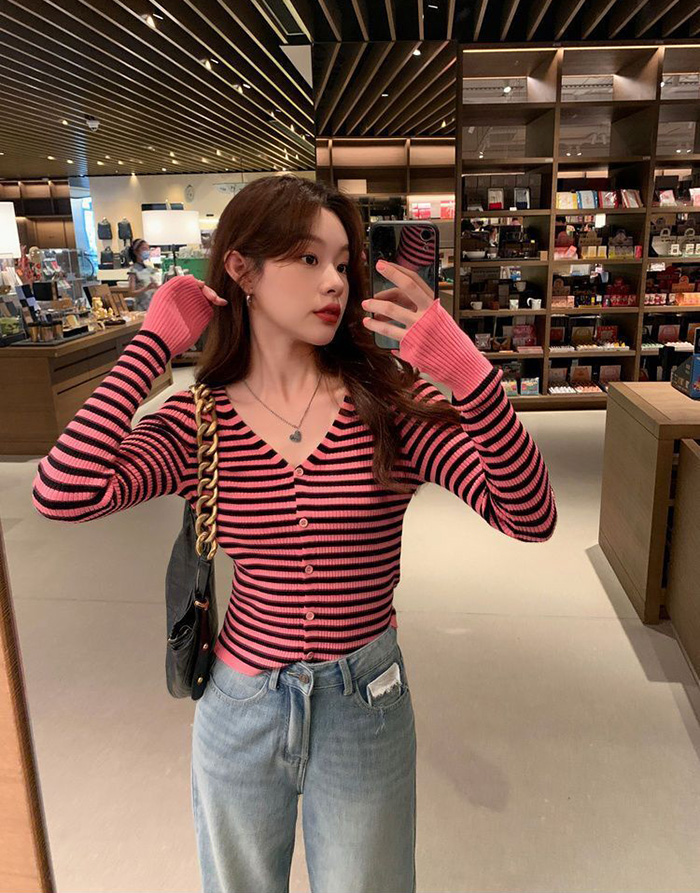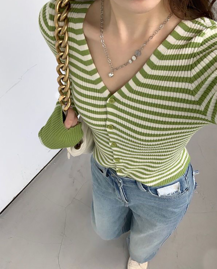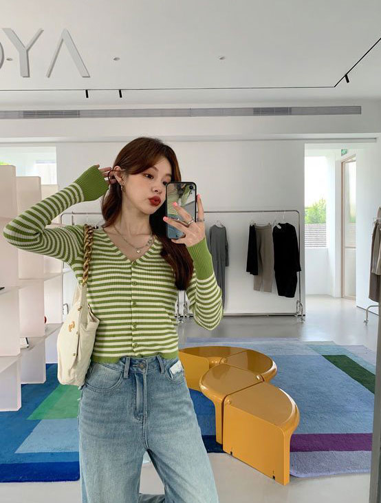소앤 스트라이프 골지 쫀쫀 가디건 니트탑 - 4컬러