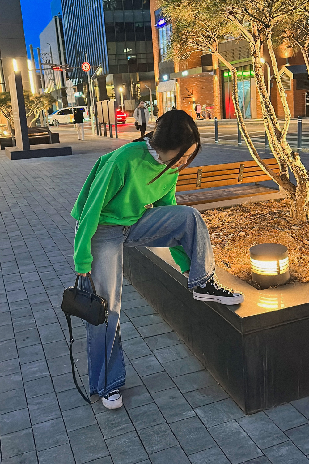 심심한 스타일에 여성스러운 포인트를