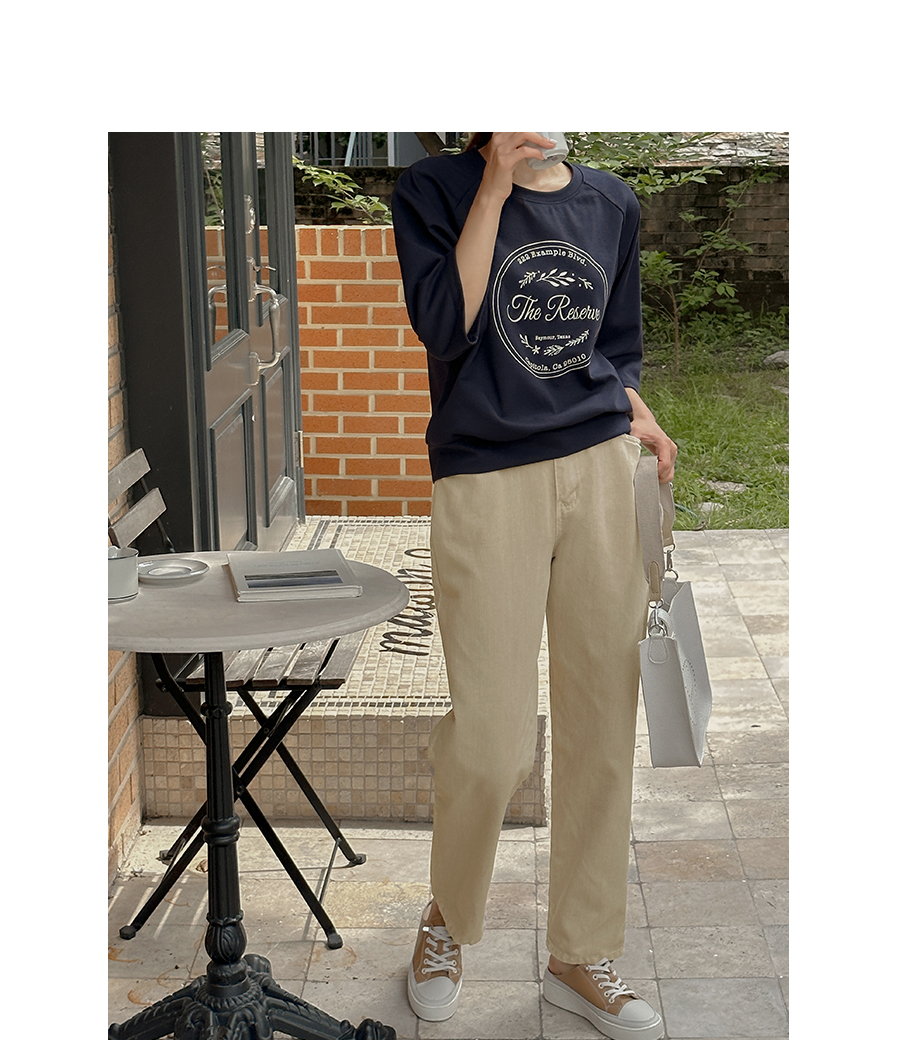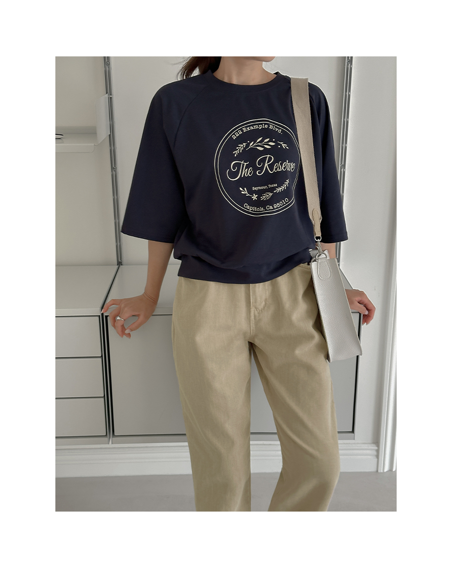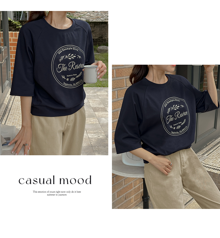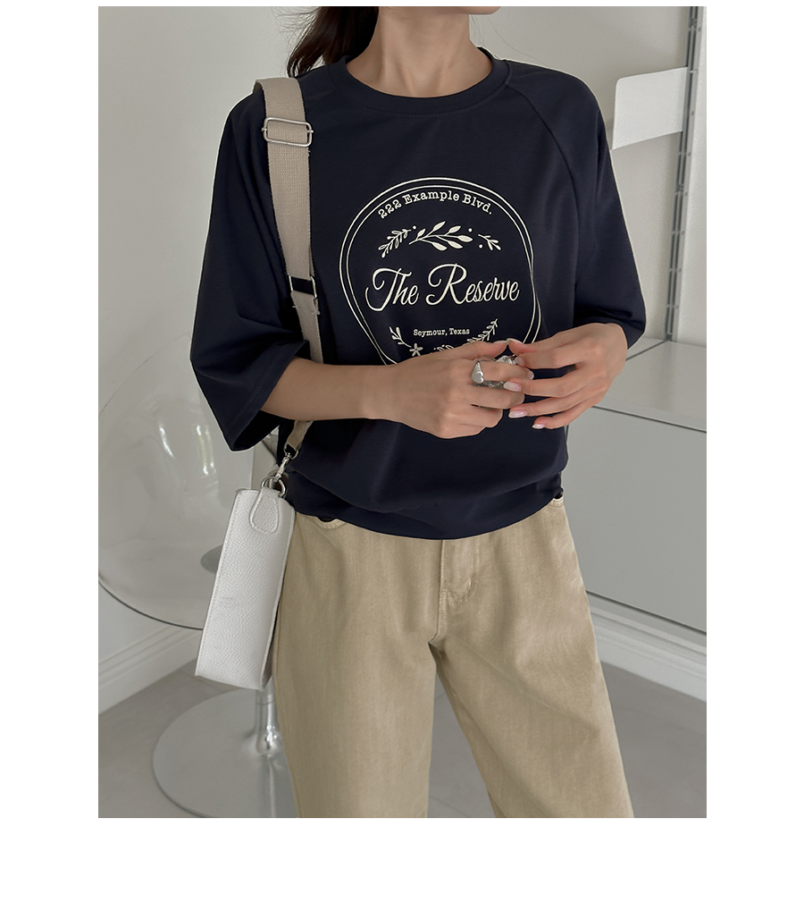 7부 소매 길이감의 티셔츠 아이템인데요.