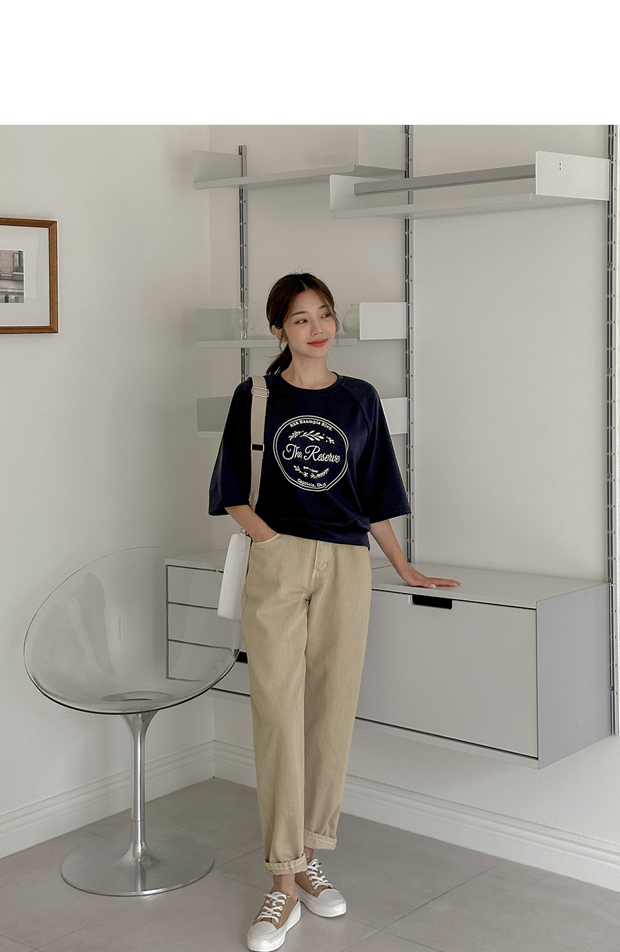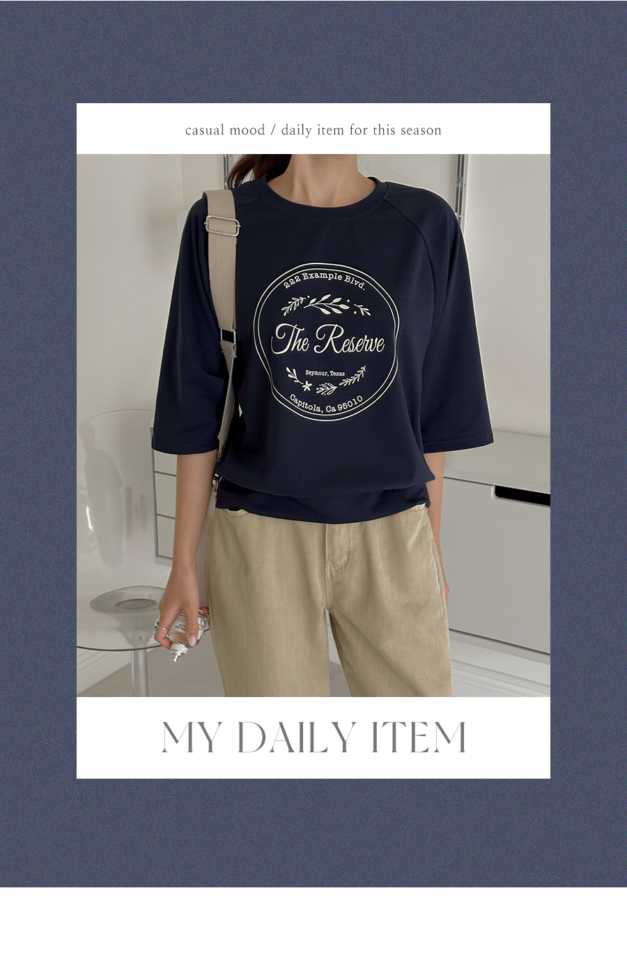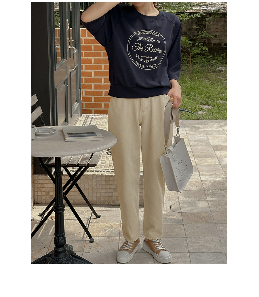7부 소매 길이감의 티셔츠 아이템인데요.