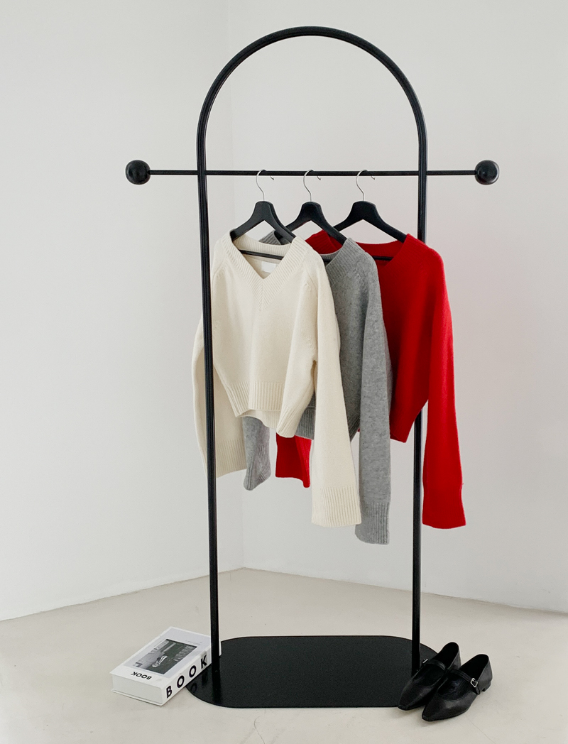 클램 브이넥 니트