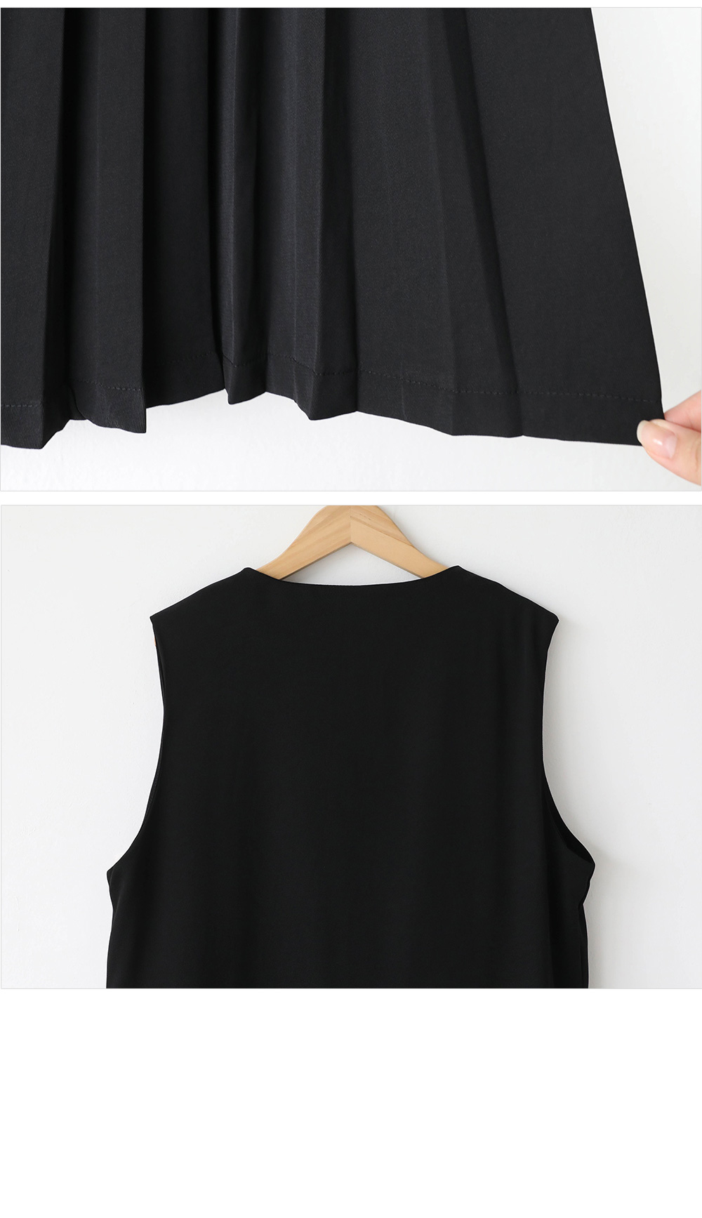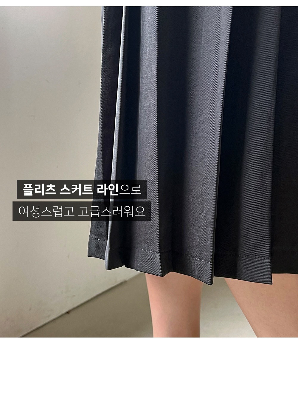 허리 아래의 플리츠 스커트 라인이
