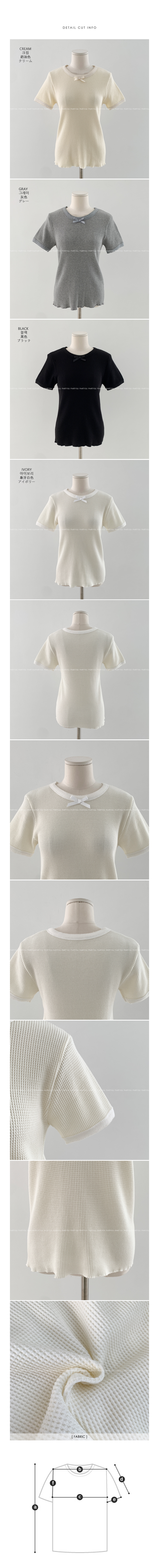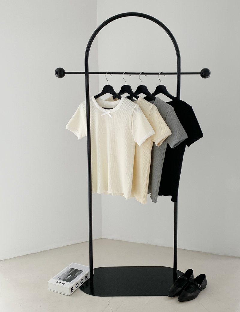 귀여운 리본 디테일로 발랄한 느낌을 주는 티셔츠입니다.