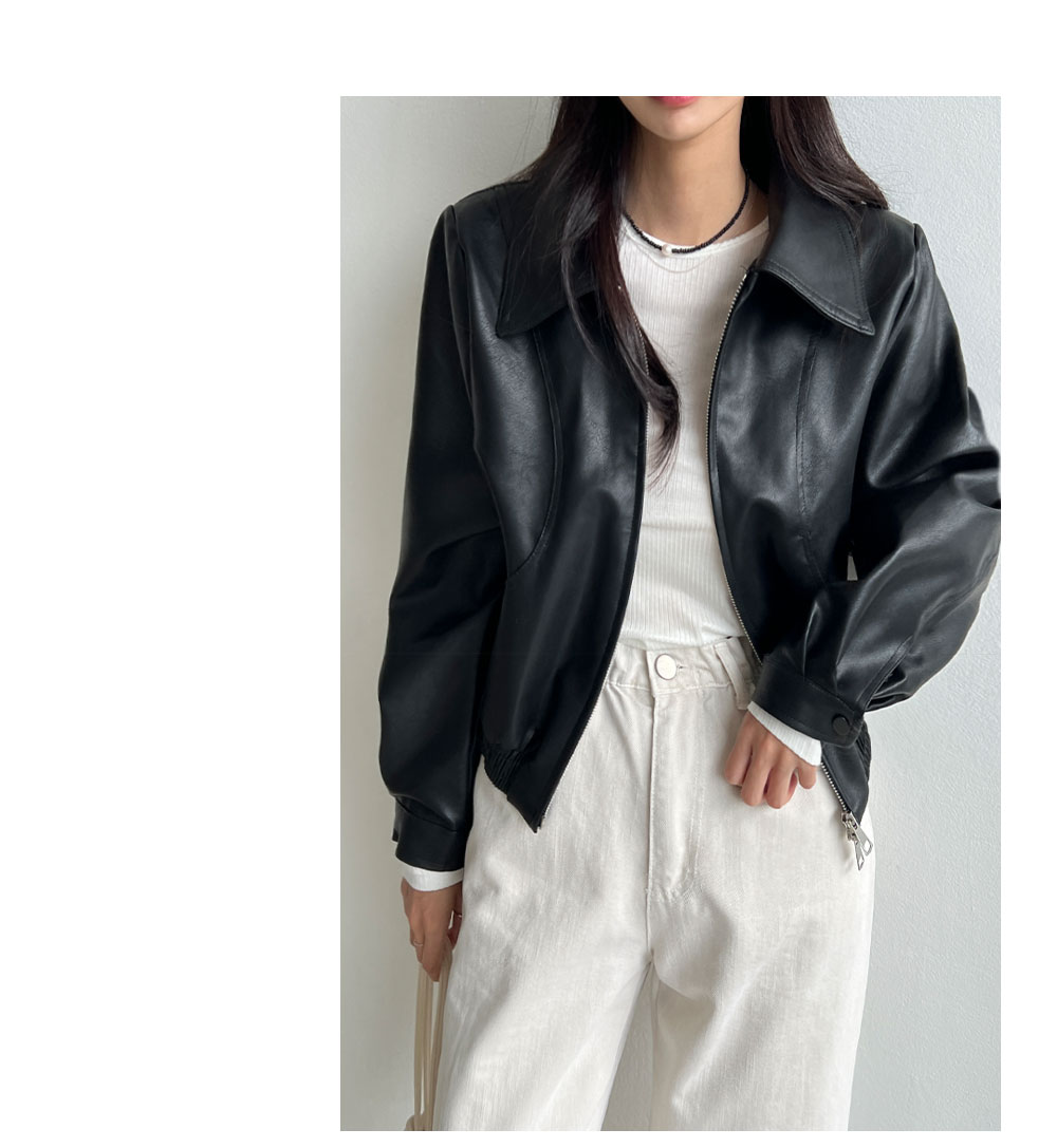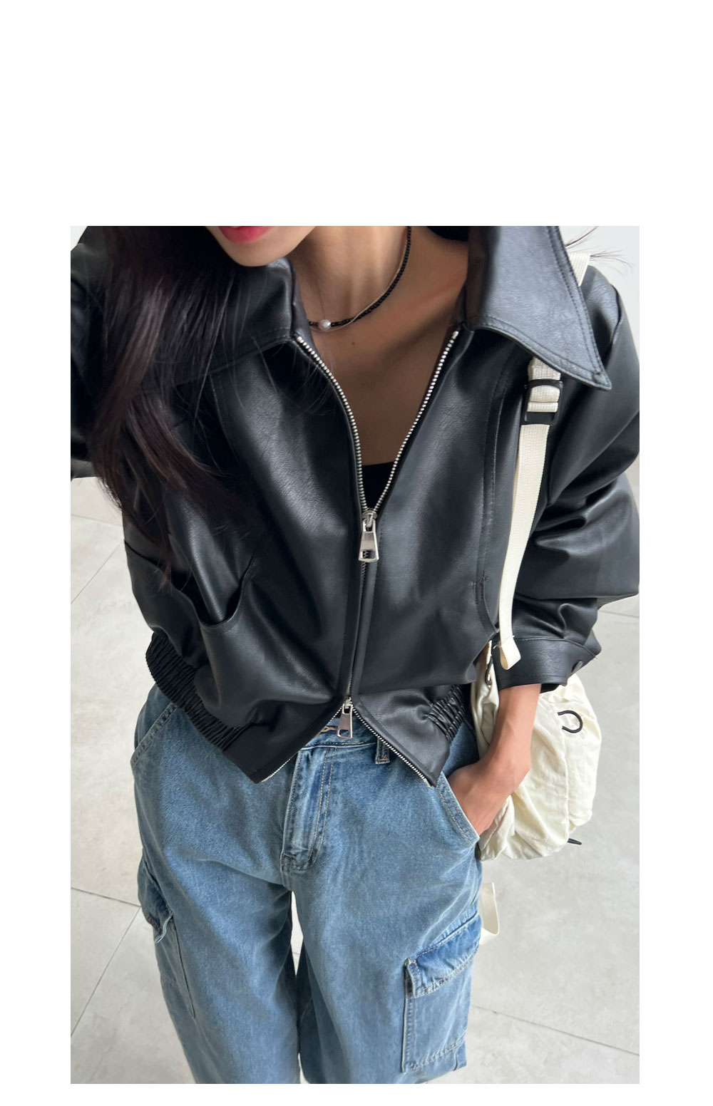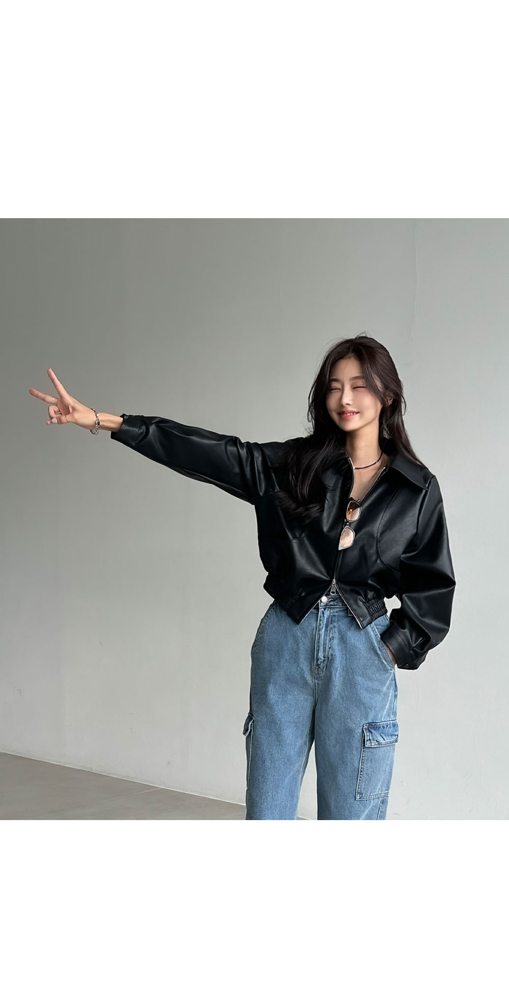 포인트가 되어주어 세련된 레더자켓! 추천드려요~