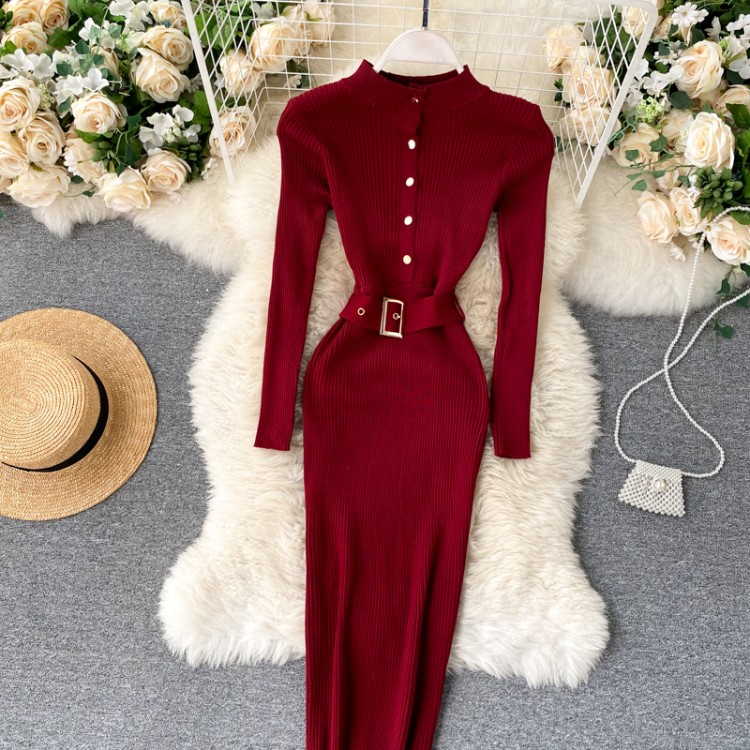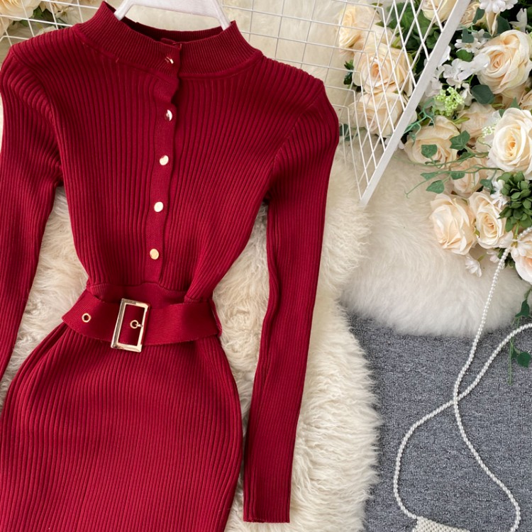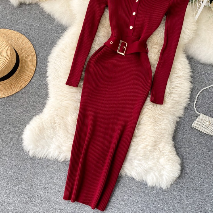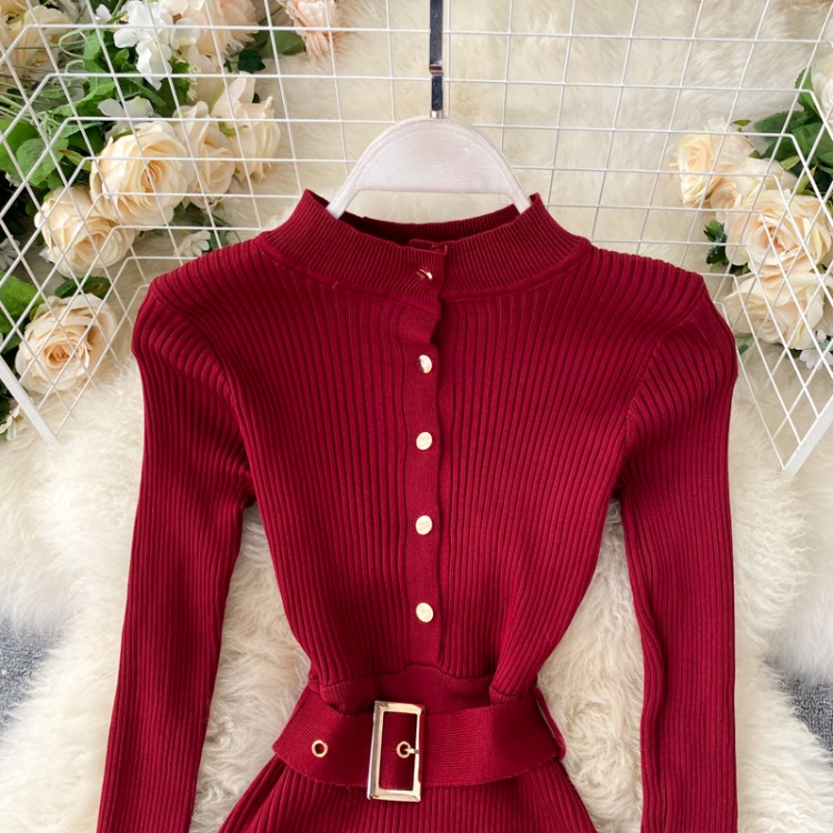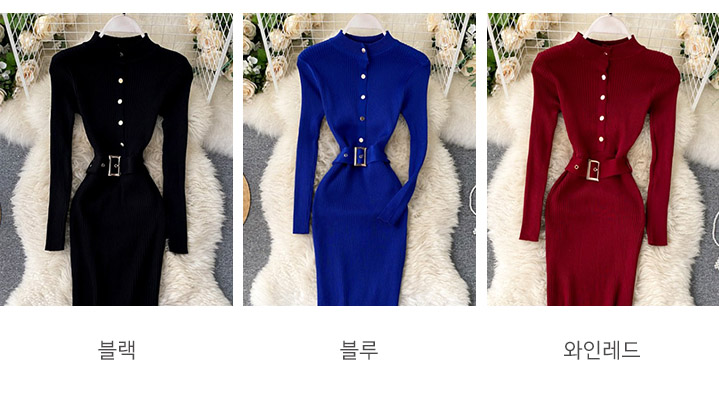 브리엘 벨트 골지 오피스 니트 원피스 - 5컬러