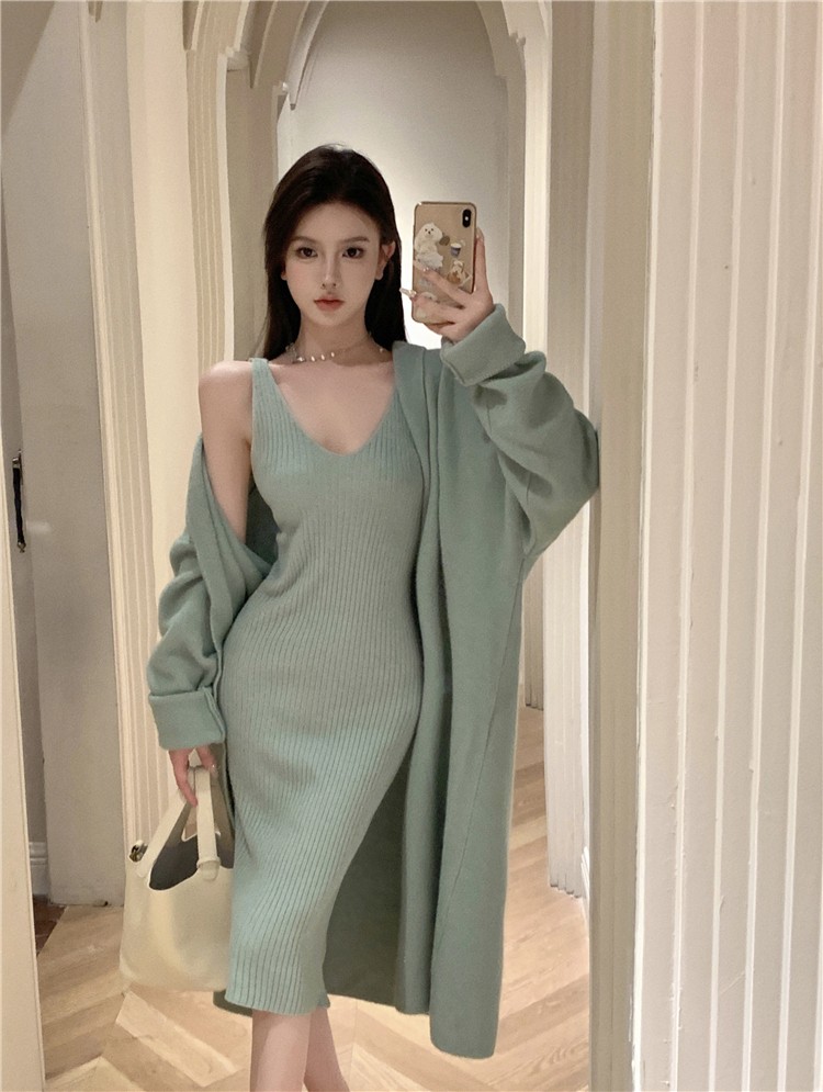 Set - Daniel cut knit dress long cardigan set
