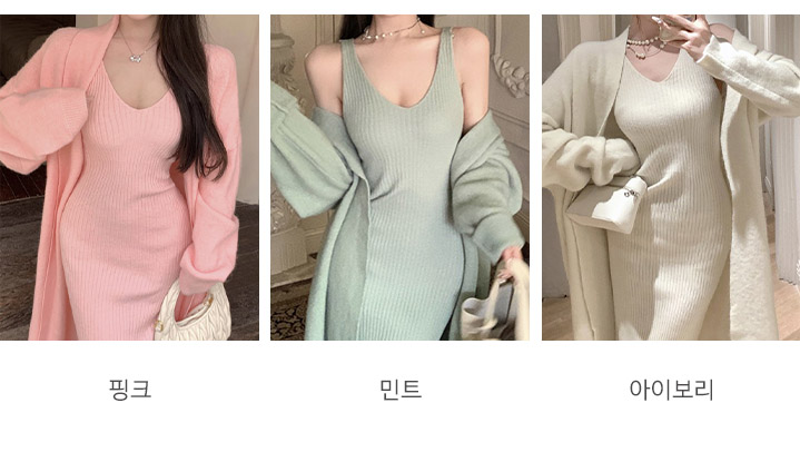 Set - 대니얼 절편 니트 원피스 롱가디건 세트