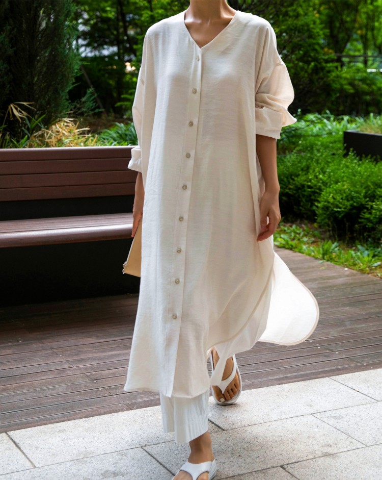 브리스 오버핏 롱 블라우스 원피스 - 2컬러