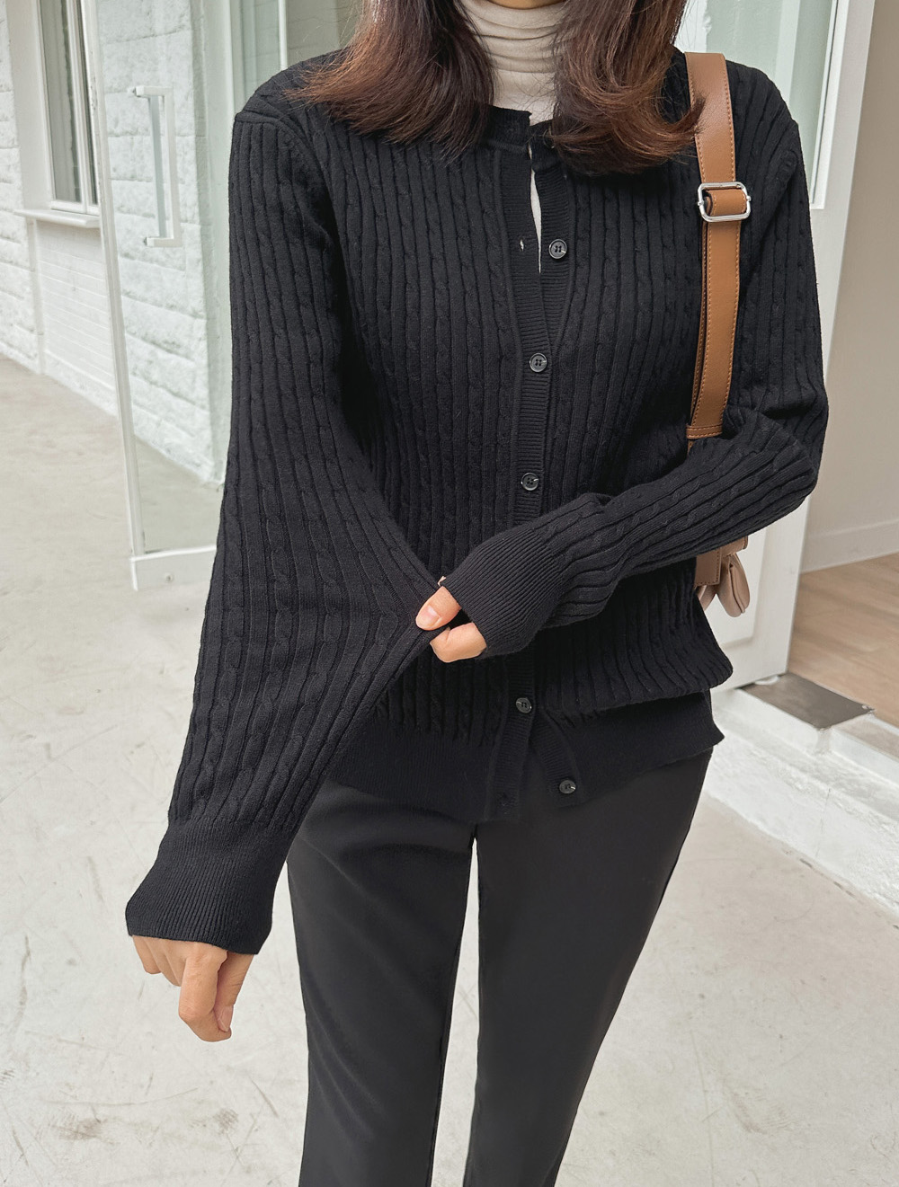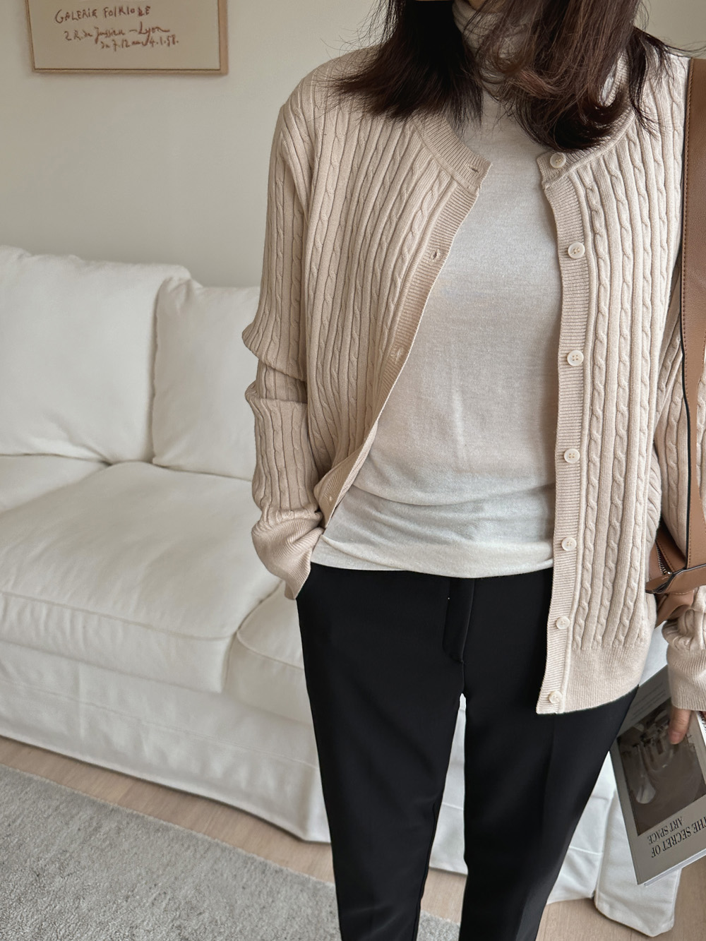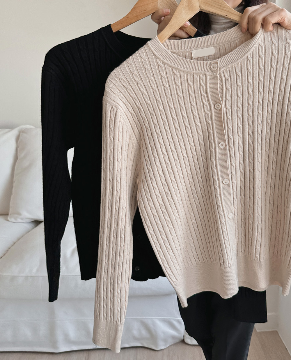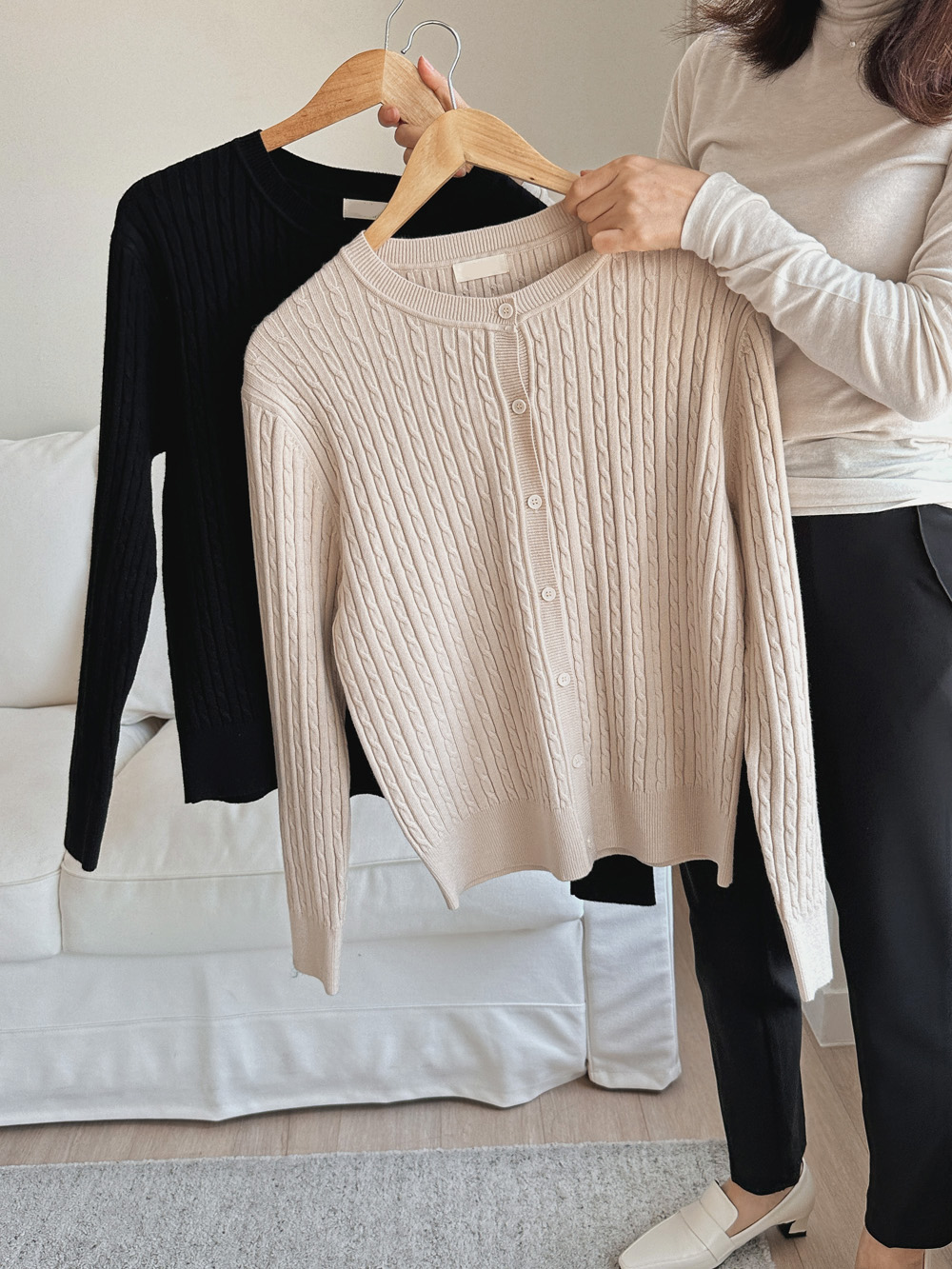 마크 케이블 라운드니트가디건-5color,부드럽고 포근한 촉감-베이직한 케이블패턴의 가디건 - 스타일티바