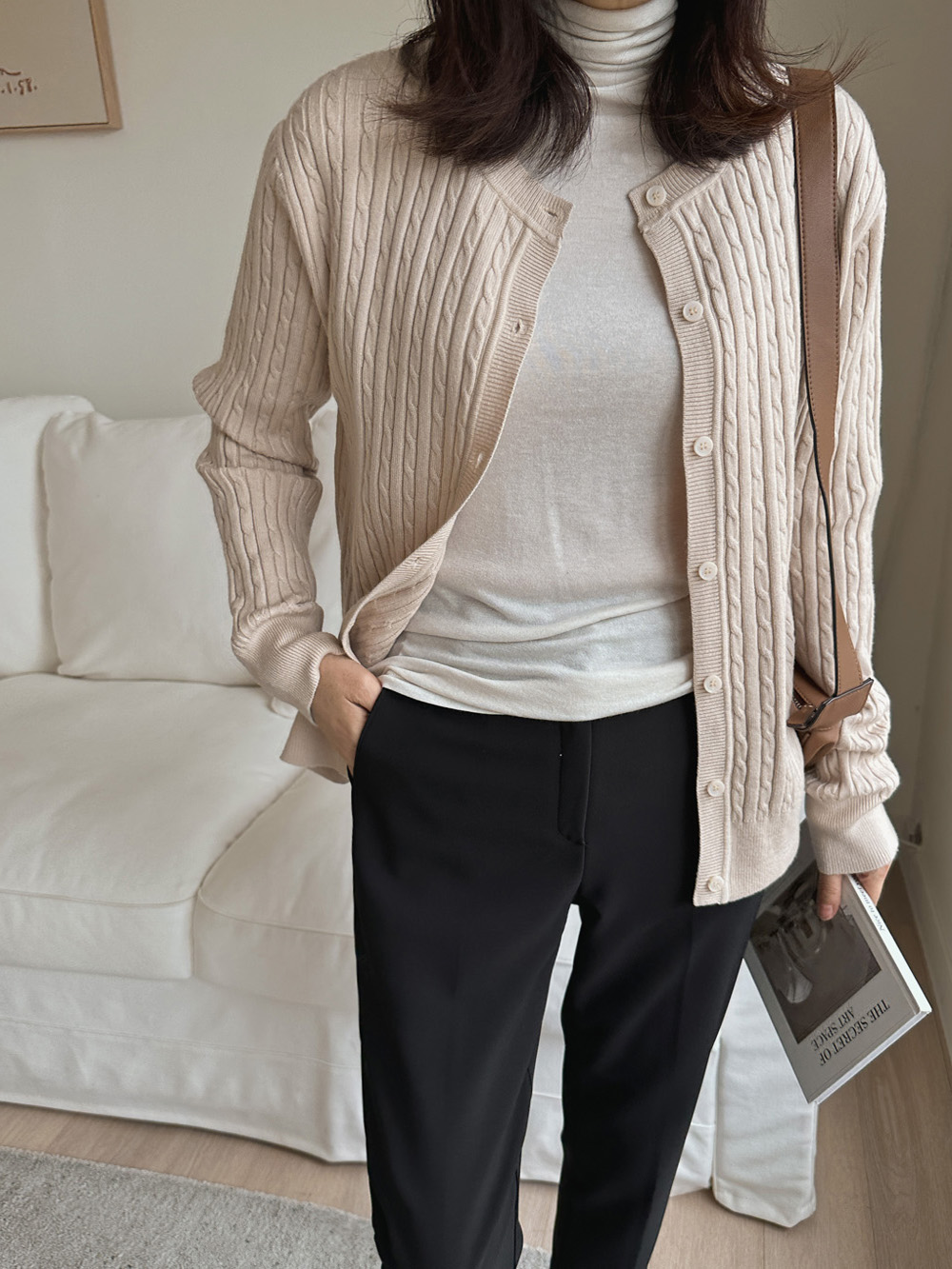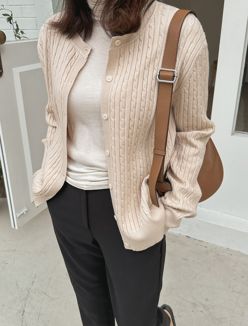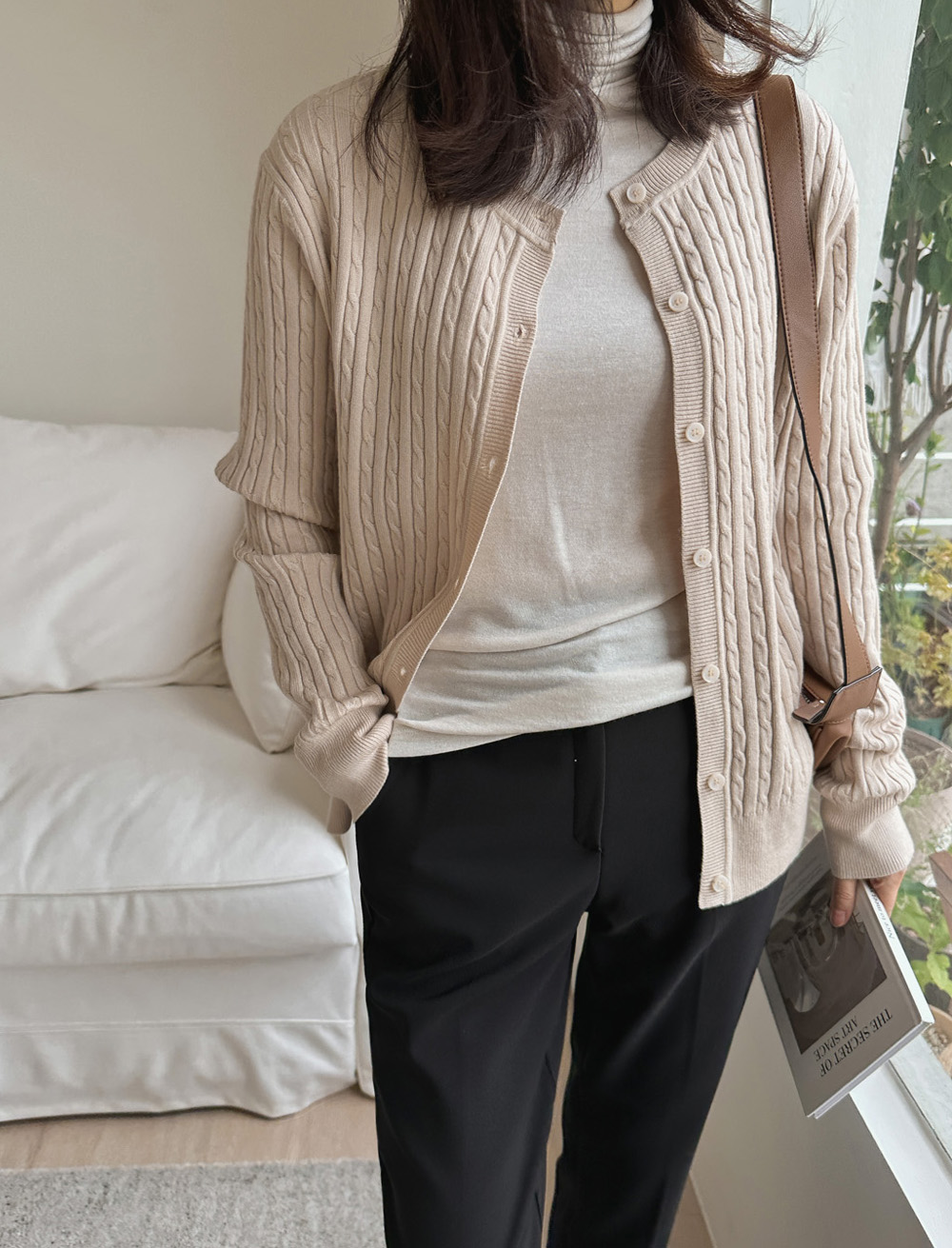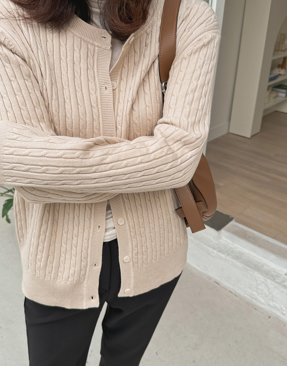 Mark Cable Round Knit Cardigan - 5color, Soft and Cozy Touch - Basic Cable Pattern Cardigan - Style Tiva