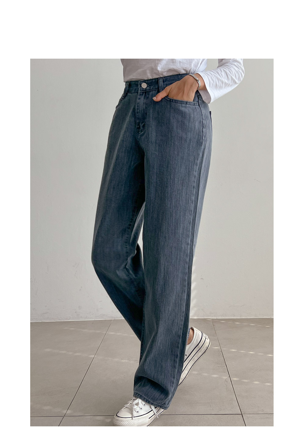 딱 떨어지는 깔끔한 일자 와이드핏으로