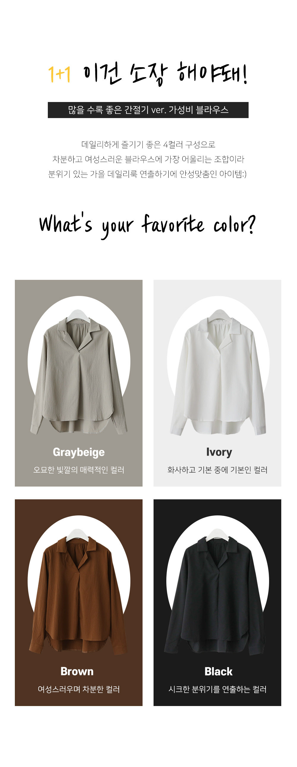 탄탄한 소재감으로 간절기에 입기 딱 좋은 블라우스 추천드려요~