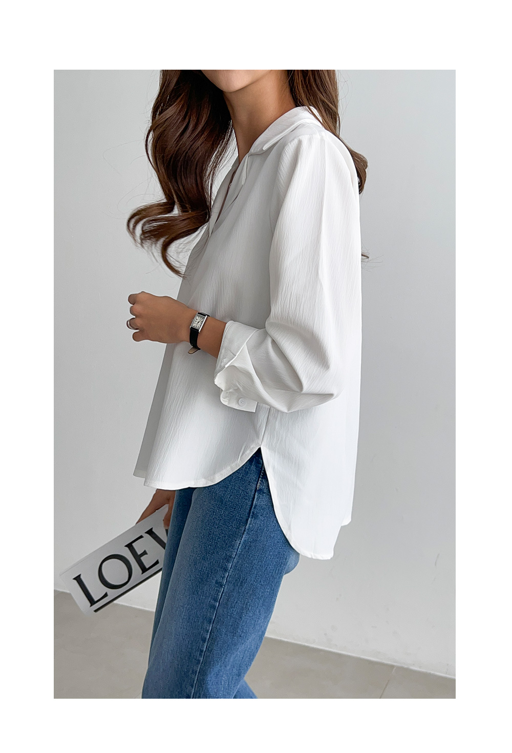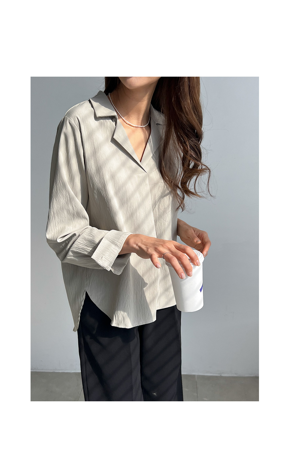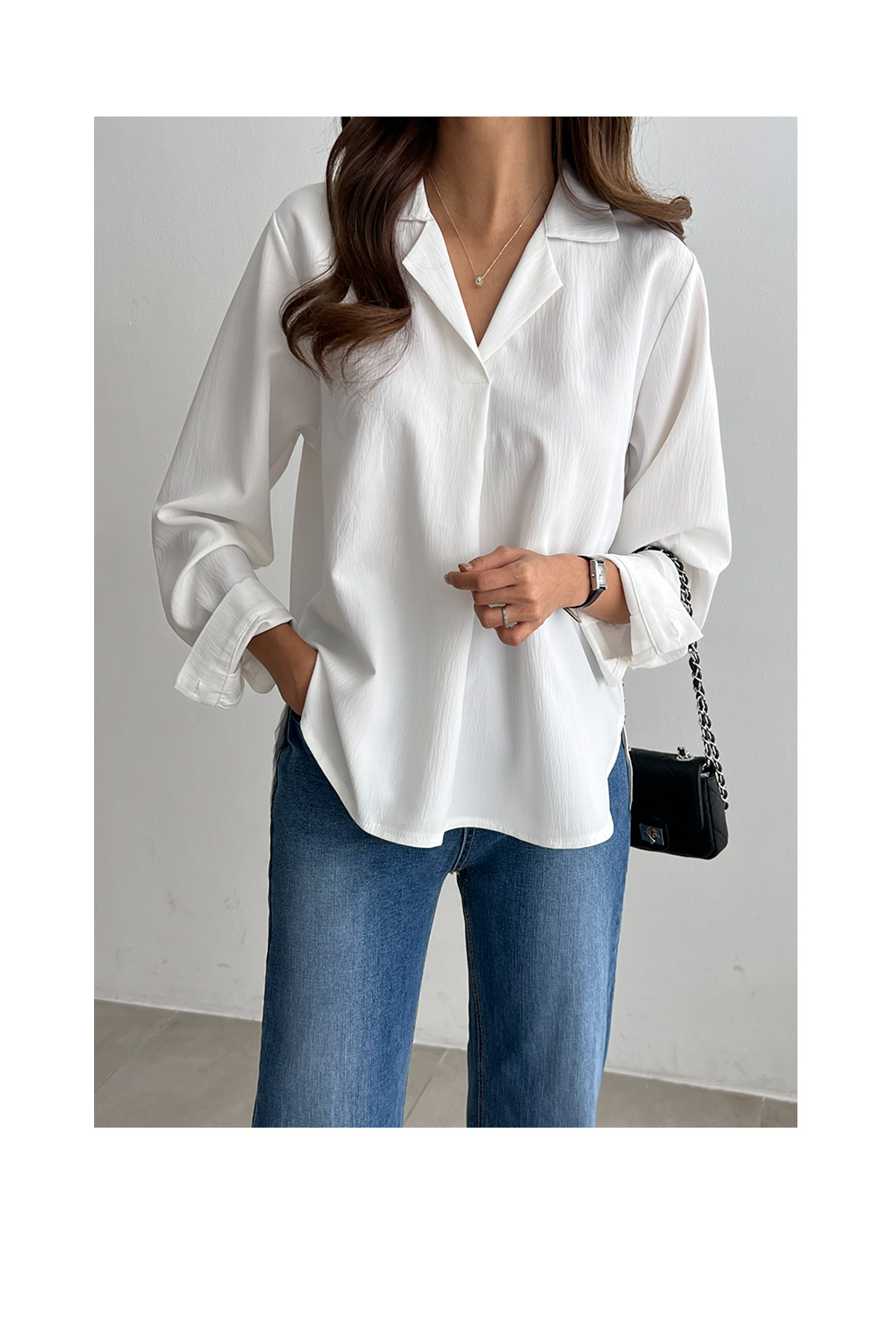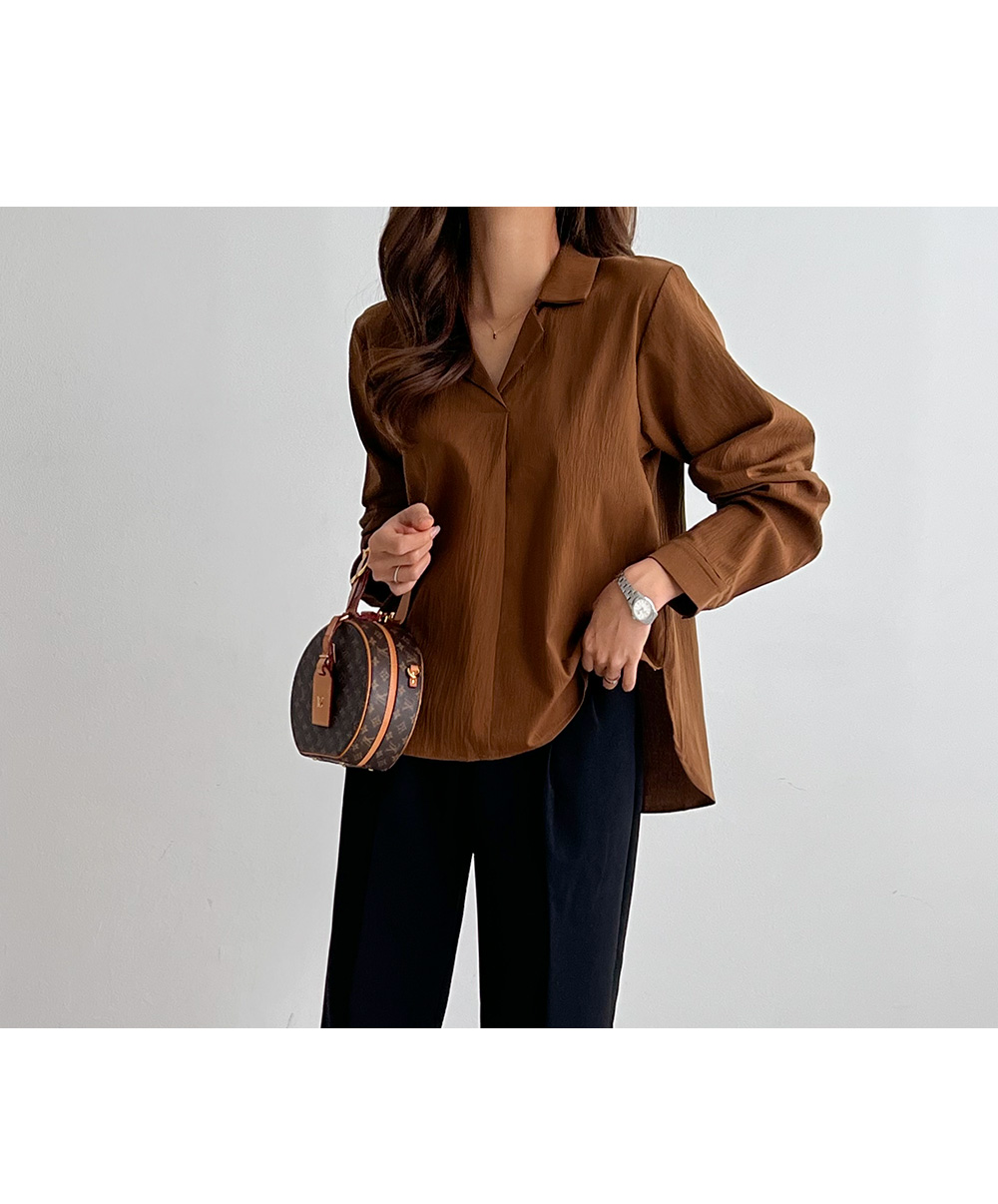 살랑 페미닌 트임 긴팔 블라우스 #49404