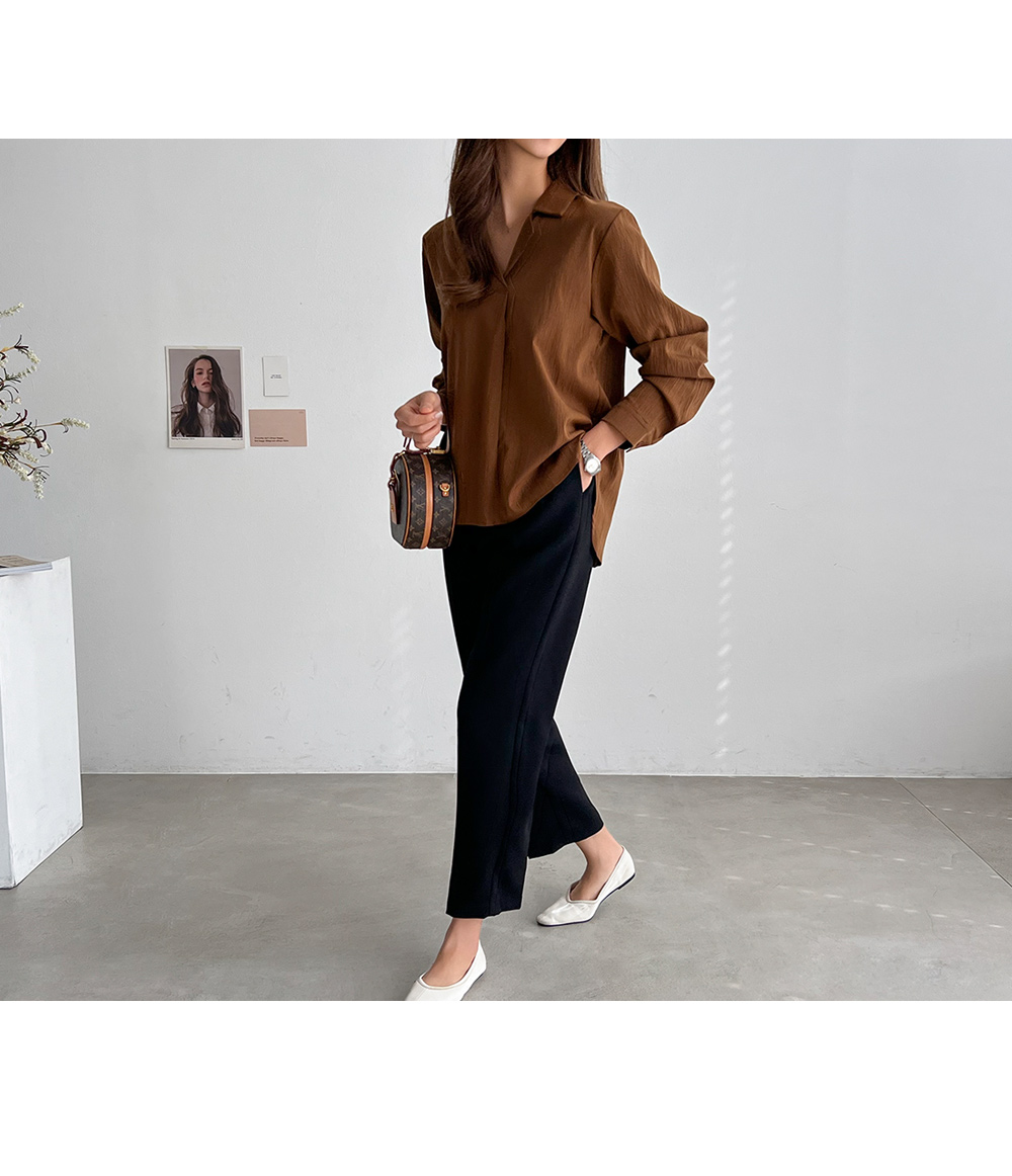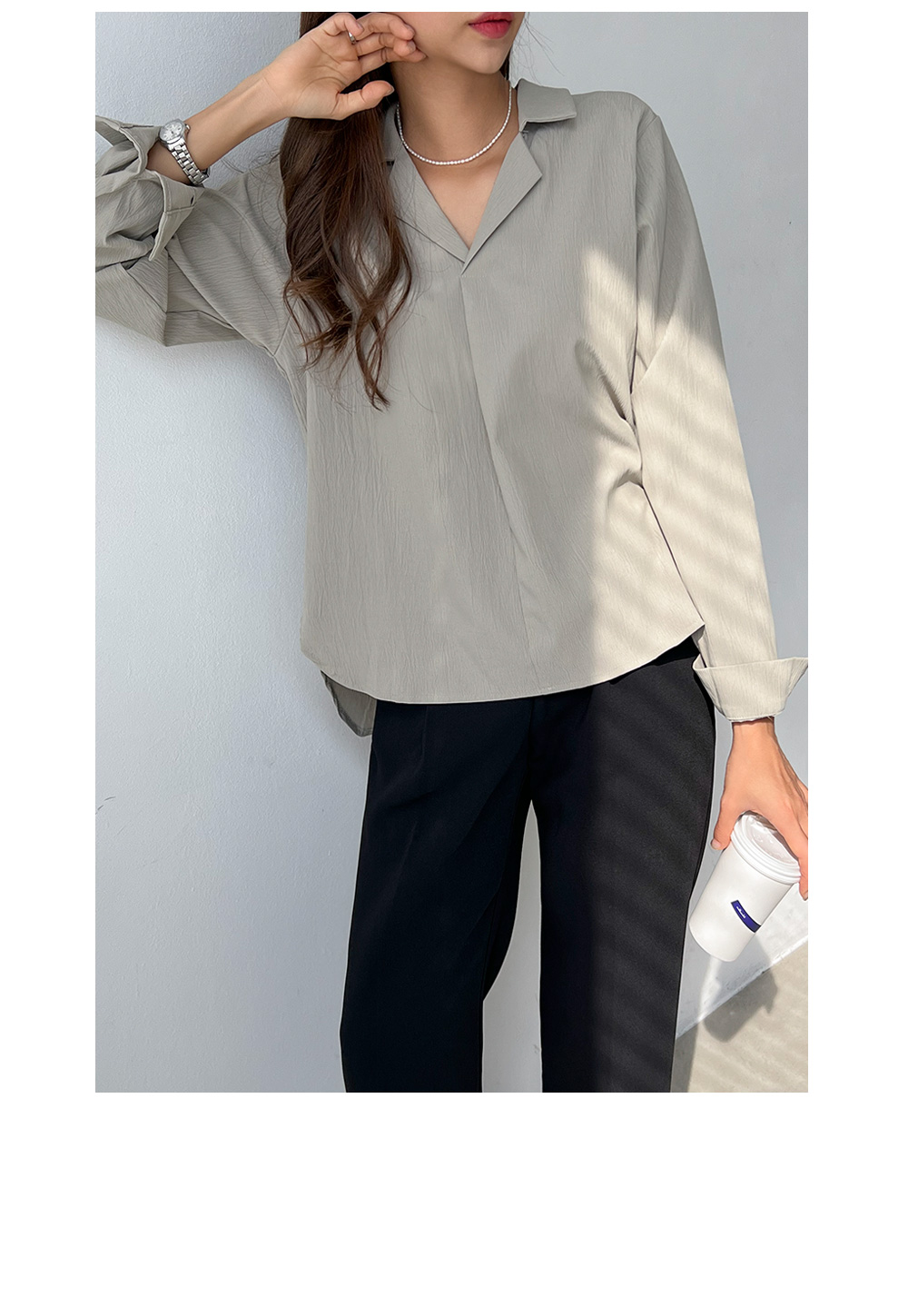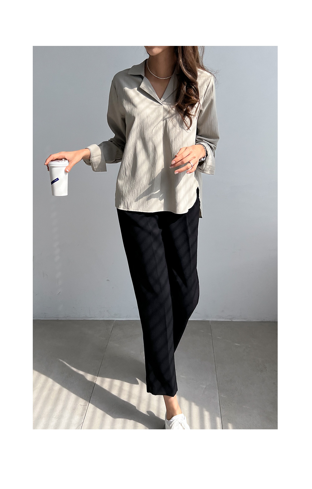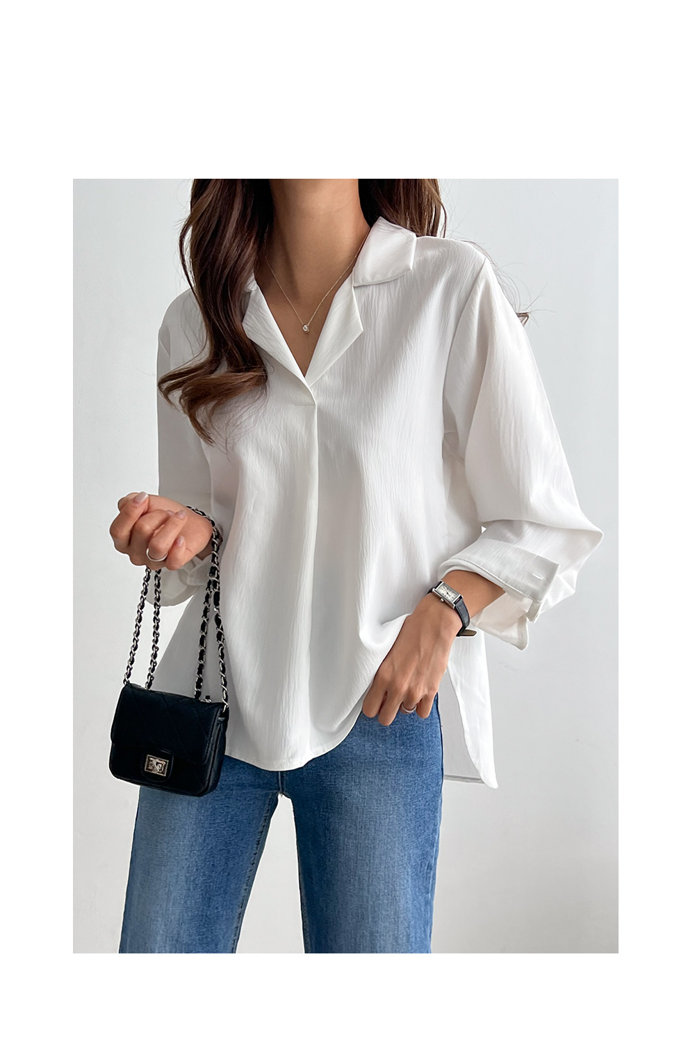 살랑 페미닌 트임 긴팔 블라우스 #49404