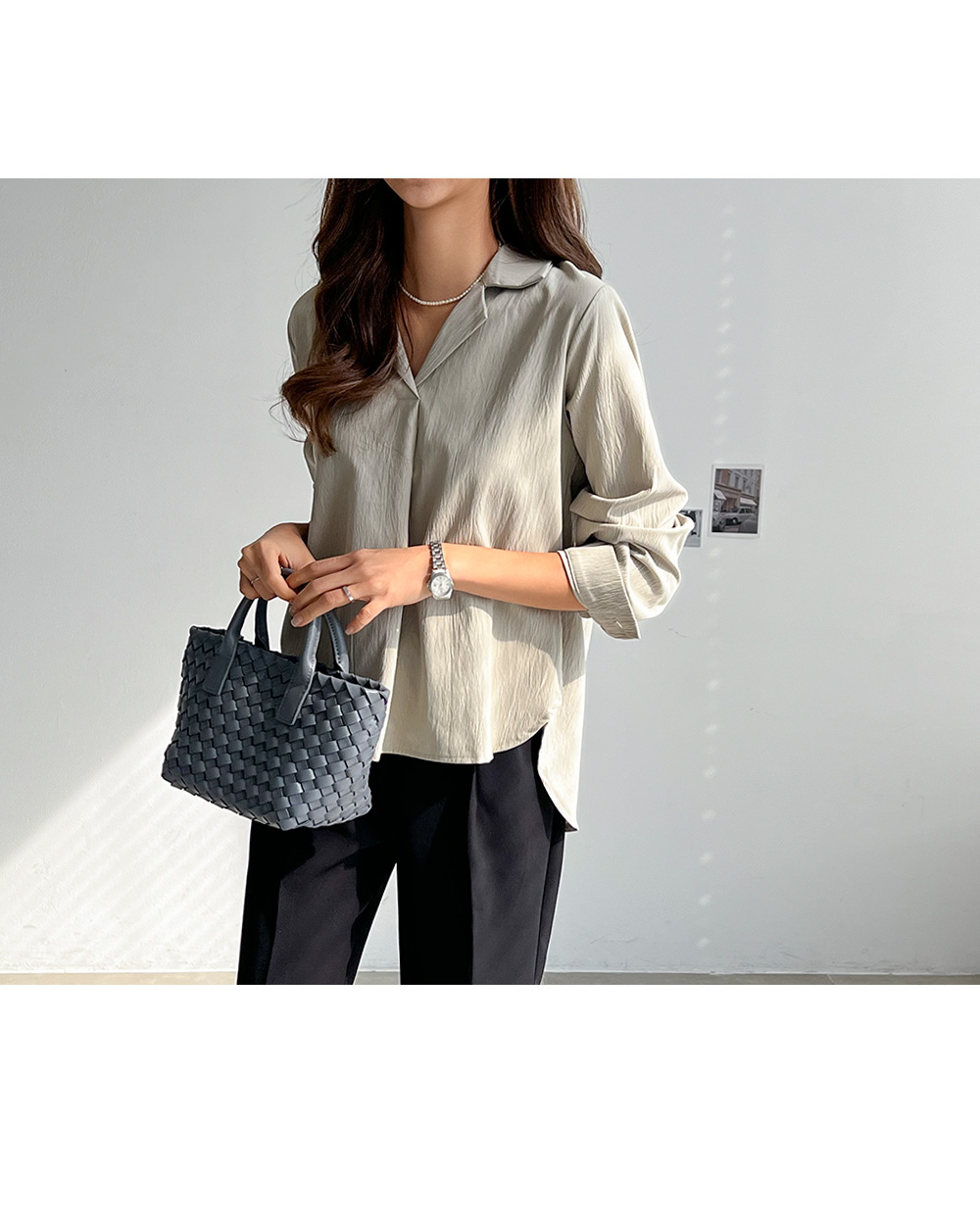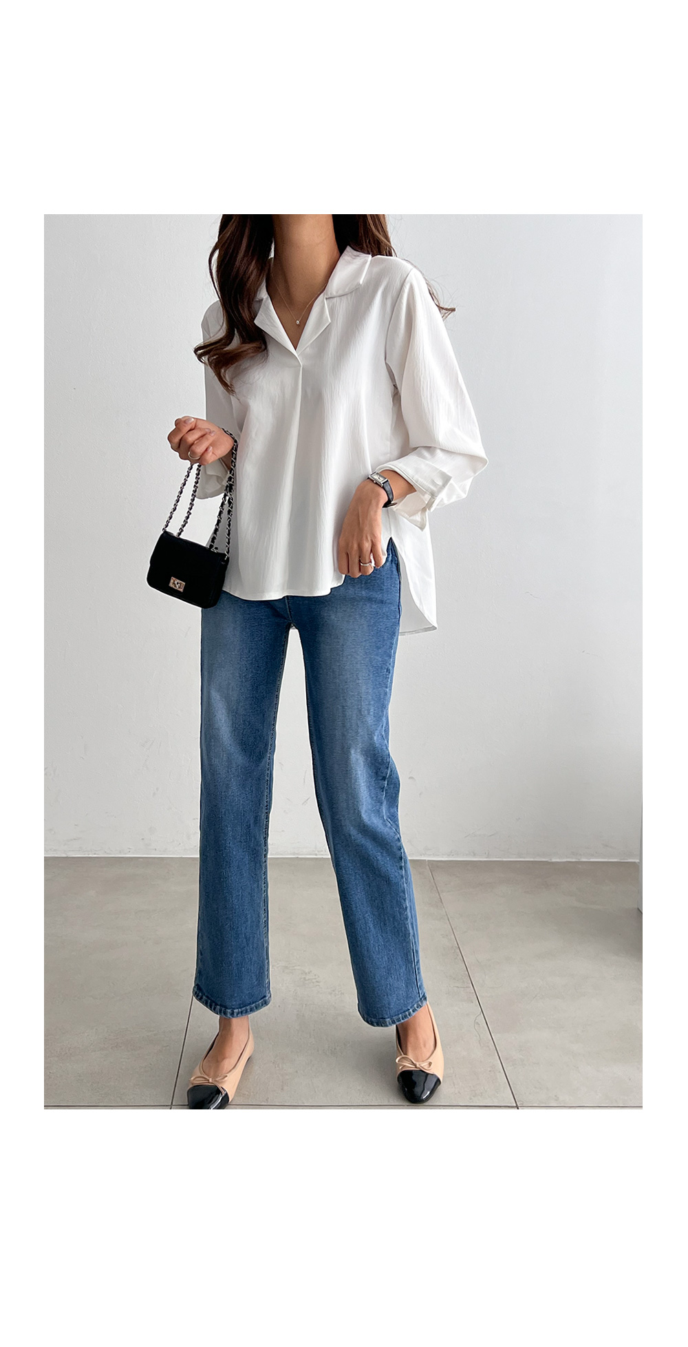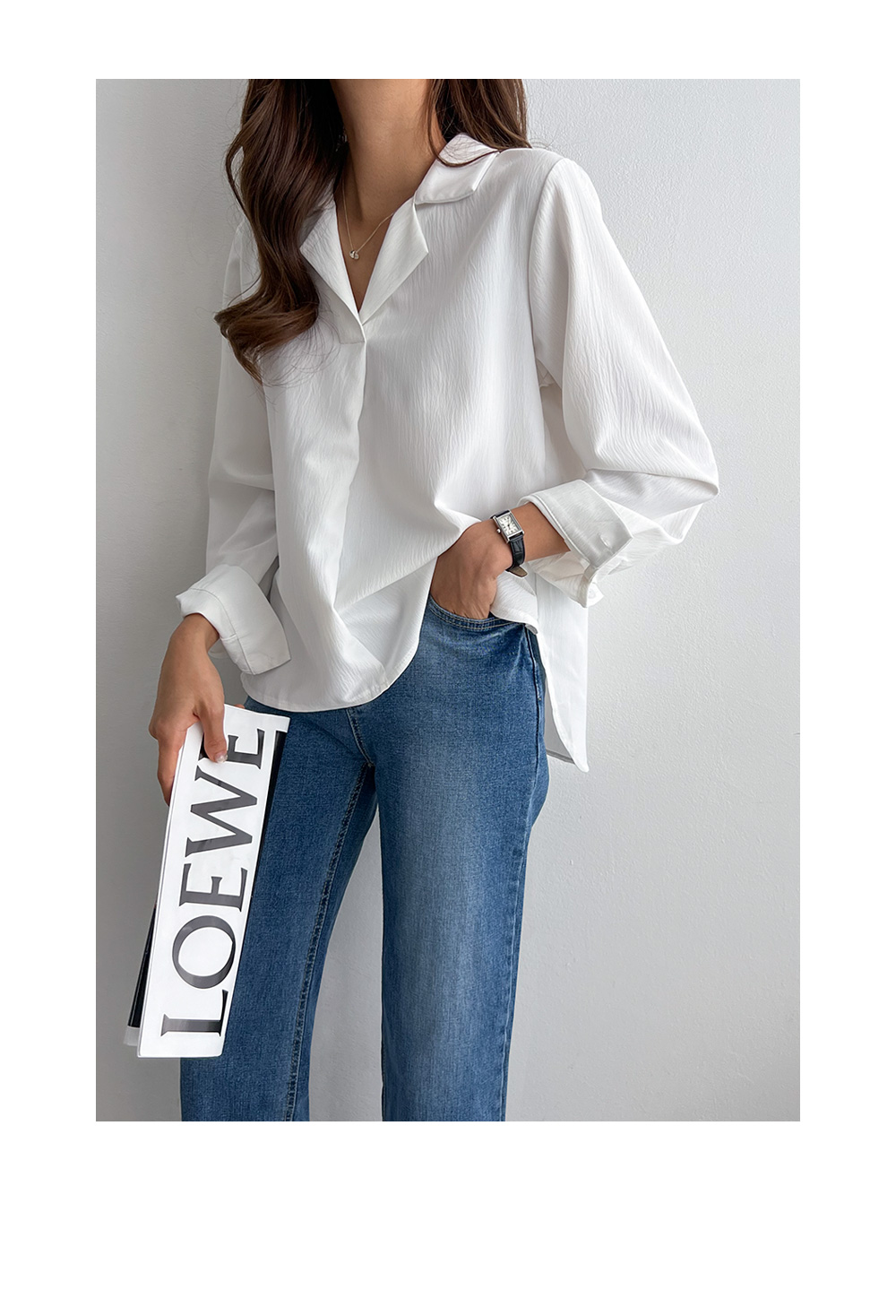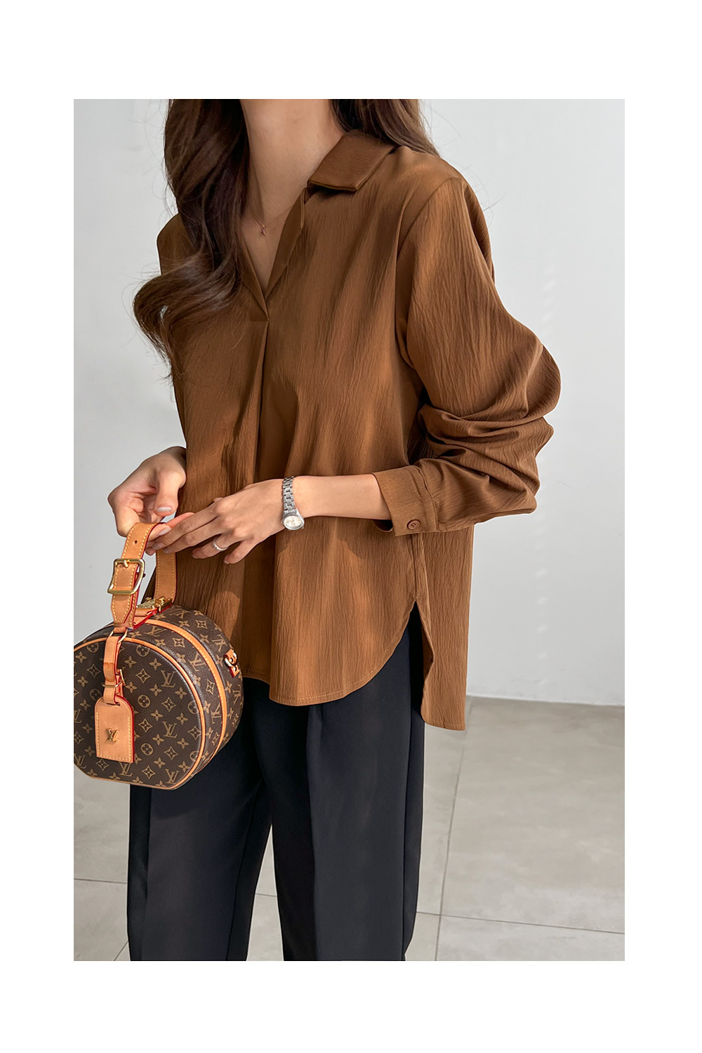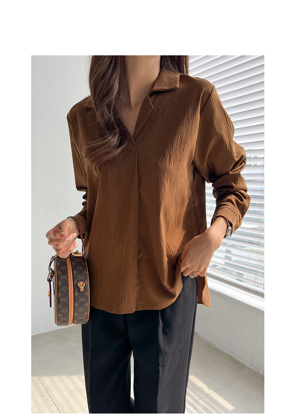살랑 페미닌 트임 긴팔 블라우스 #49404