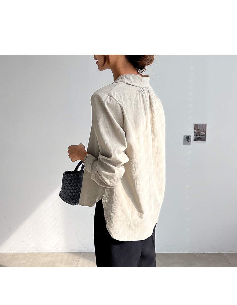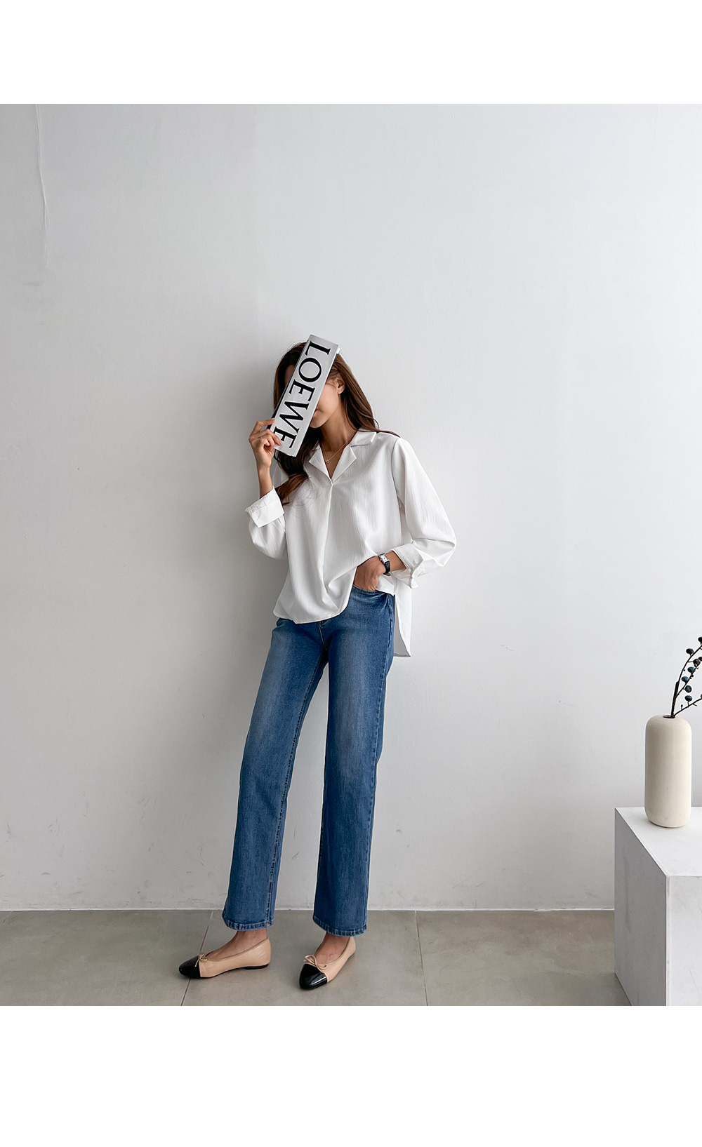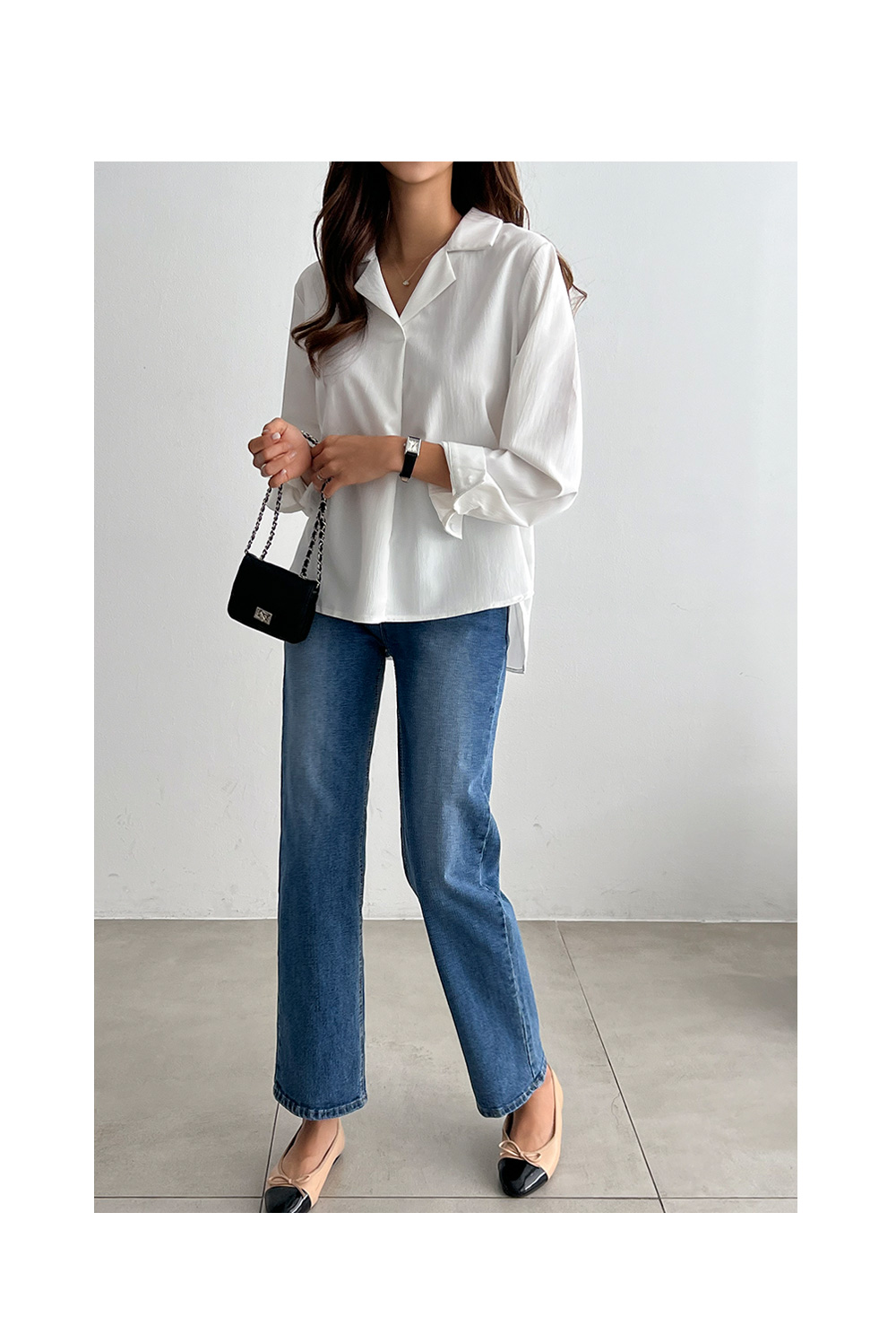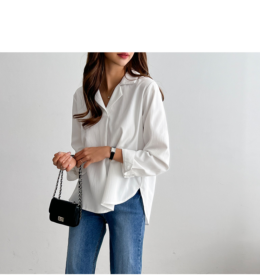 살랑 페미닌 트임 긴팔 블라우스 #49404