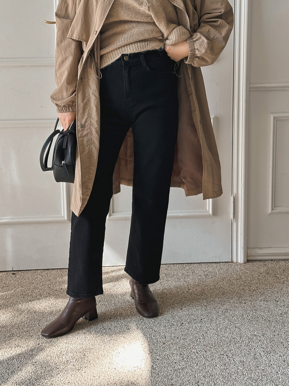 크롭 블랙 데님팬츠 - 스타일티바
