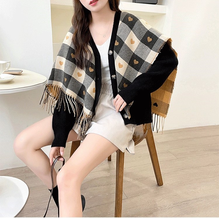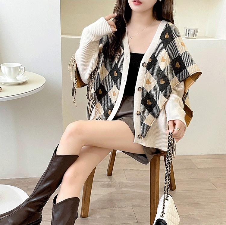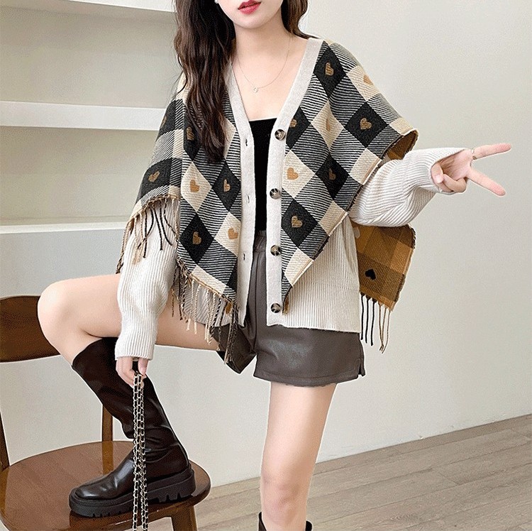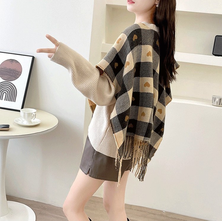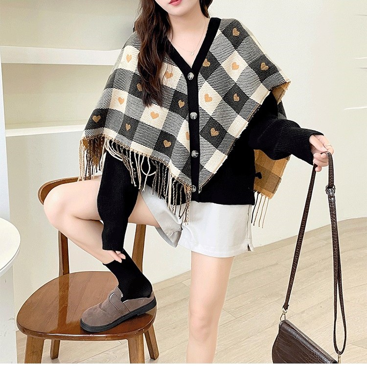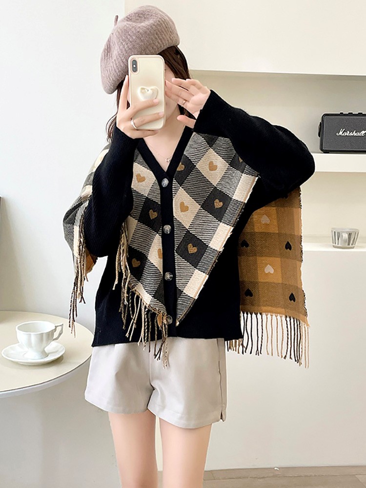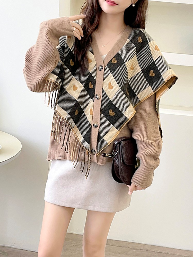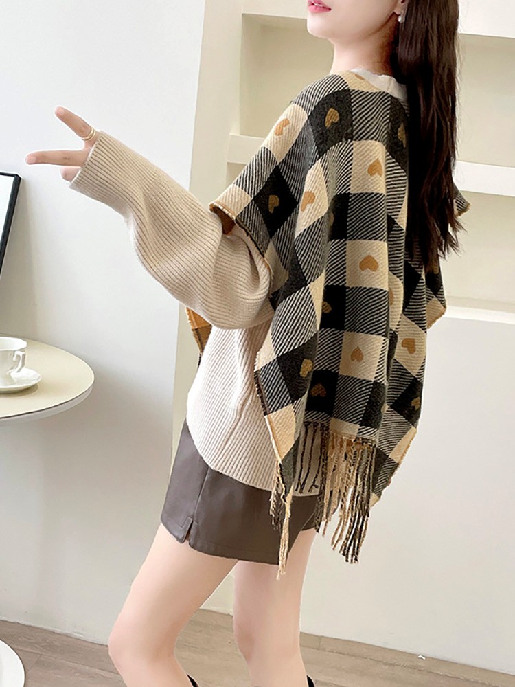 Rosena Check Cape Manteau Cardigan Jacket