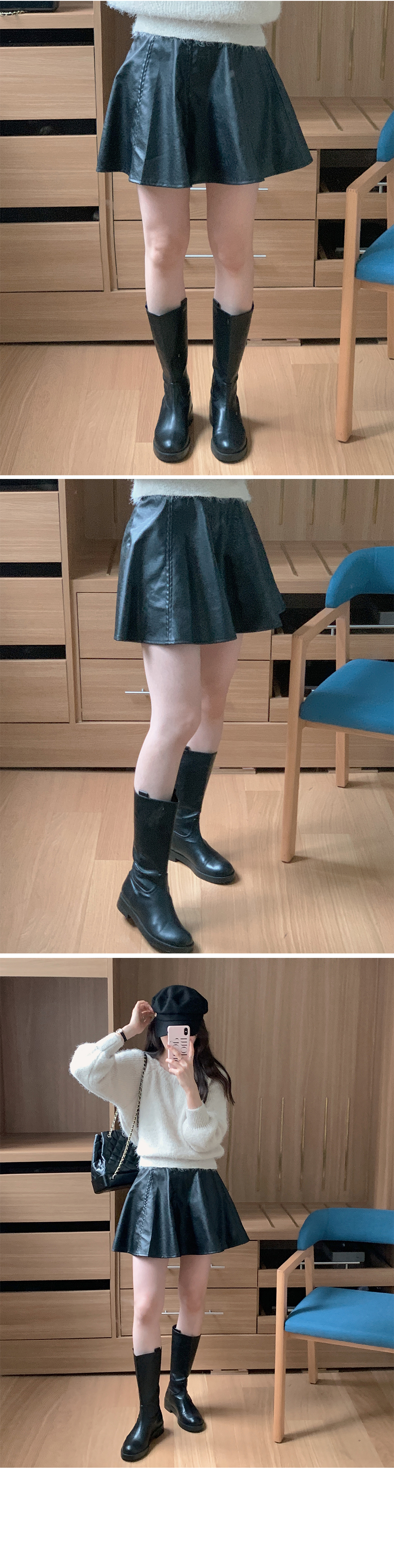 시크한 레더와 걸리시한 플레어 라인이 만나