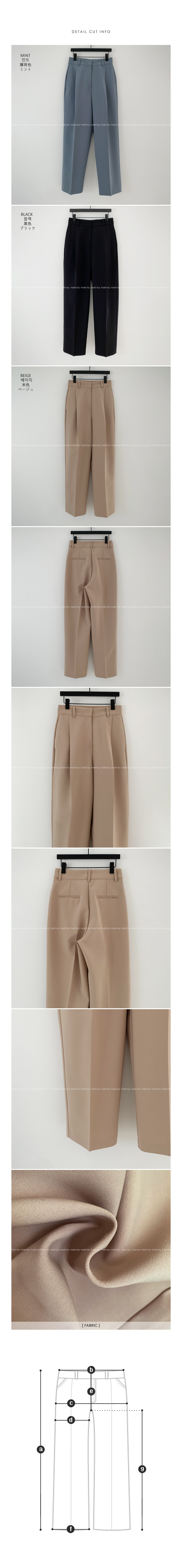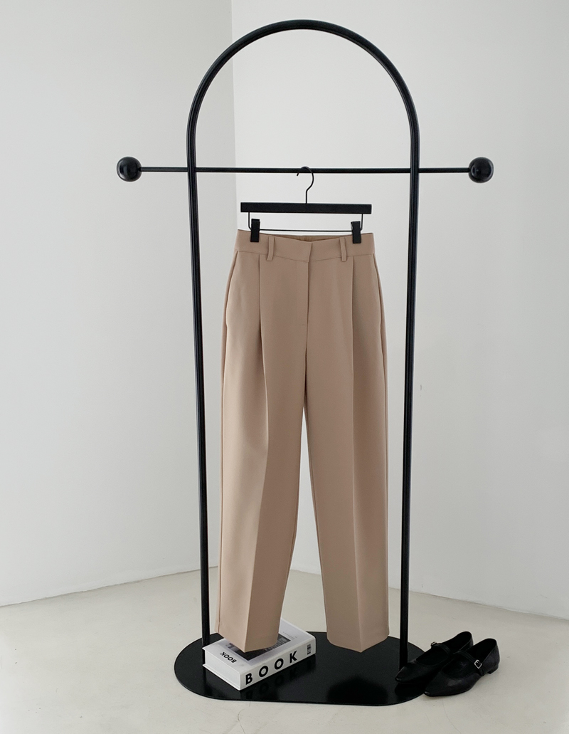 길어 보이는 레그 라인을 만들며 정면의 핀턱 디테일로